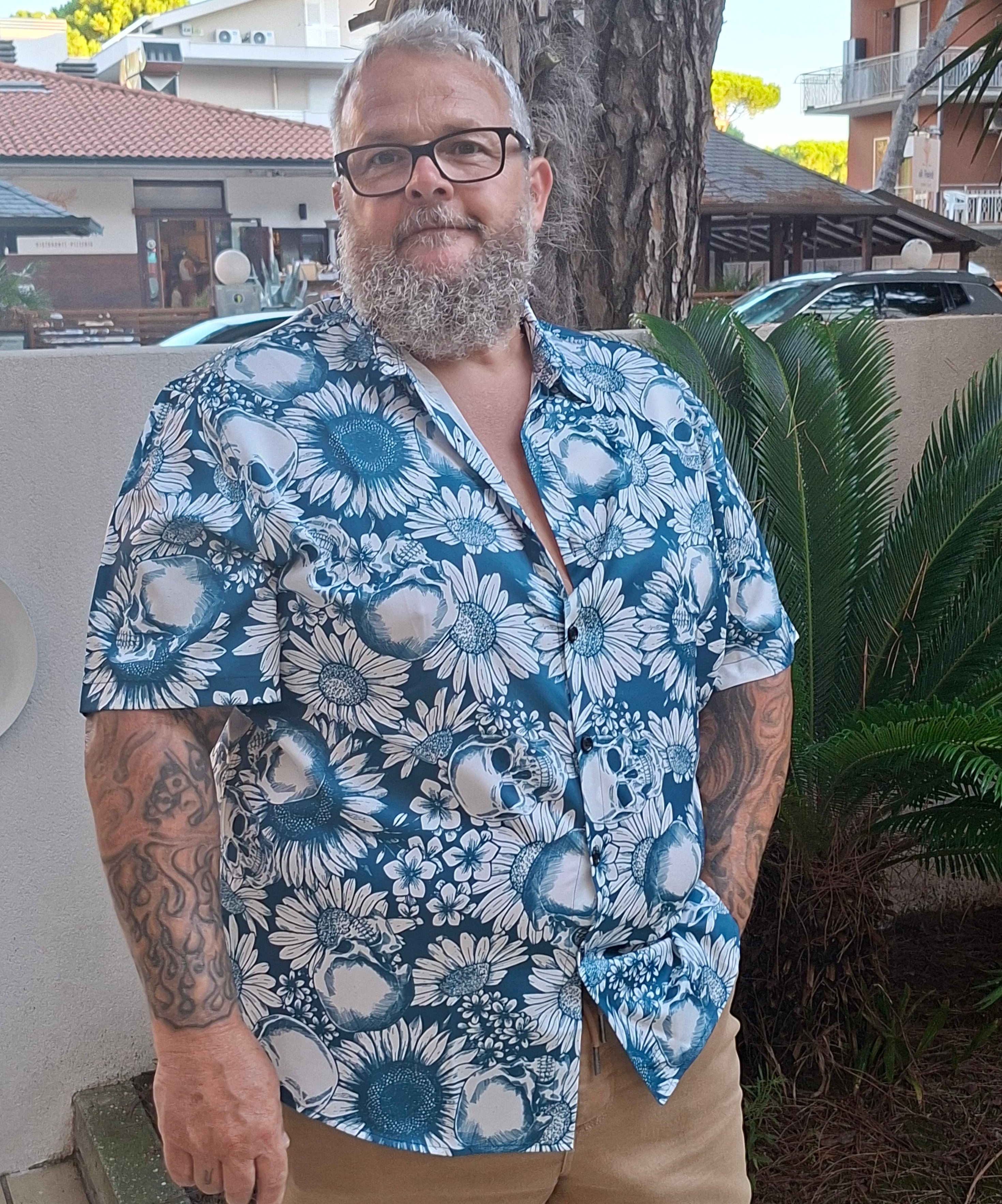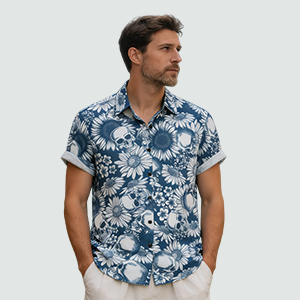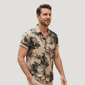 Herren Blumendruck Kurzarmhemd