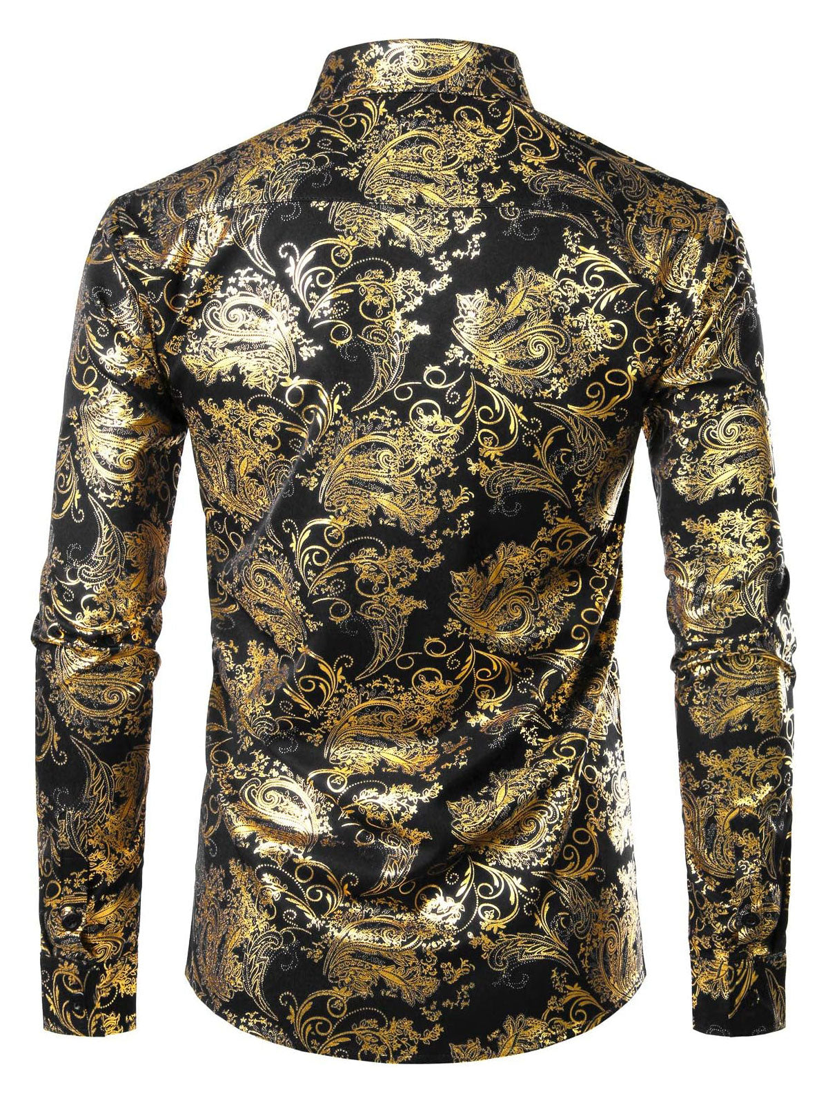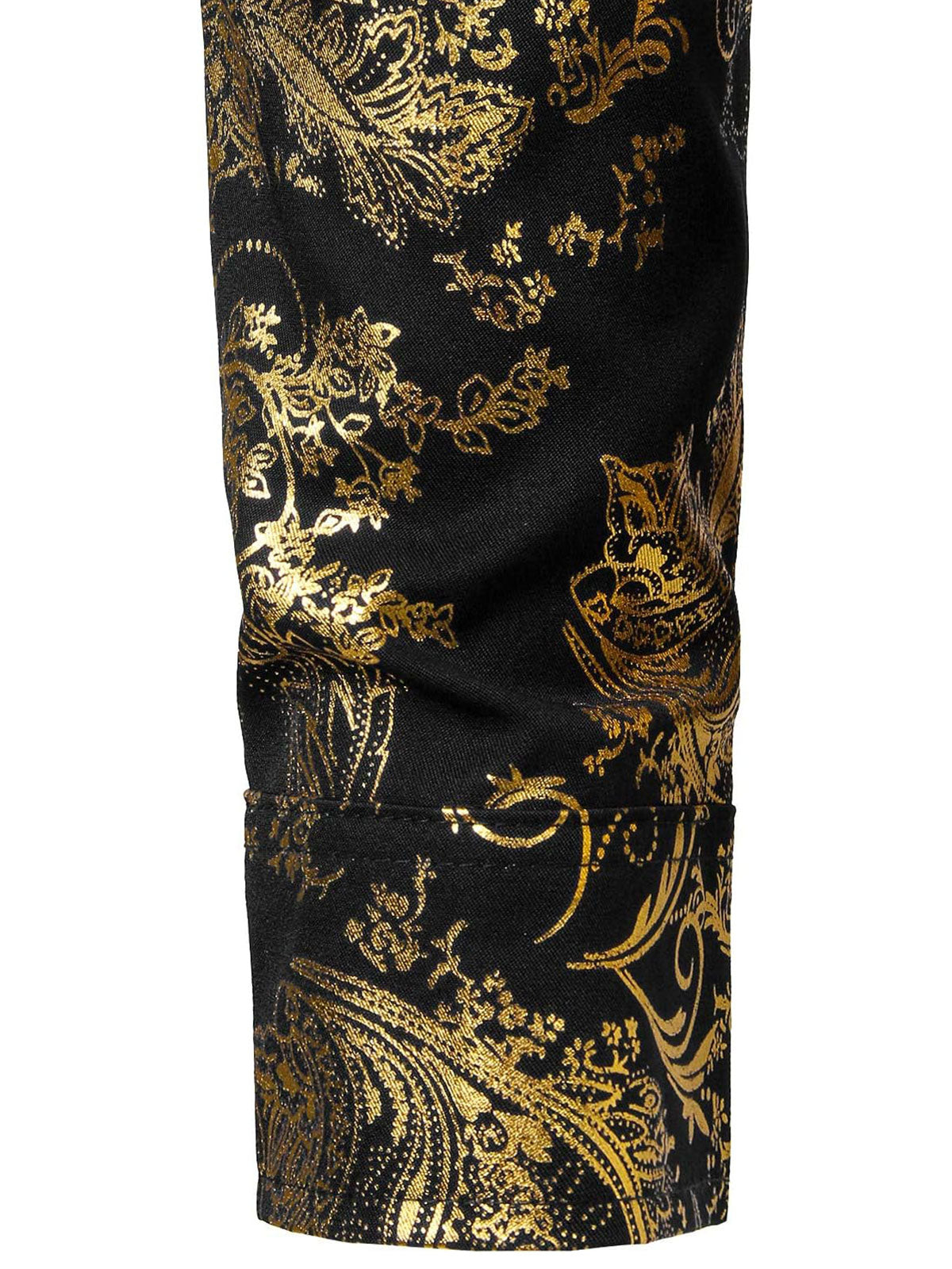 Herren Luxus Paisley Glänzendes Hemd mit floralem Print und Knopfleiste für formelle Anlässe