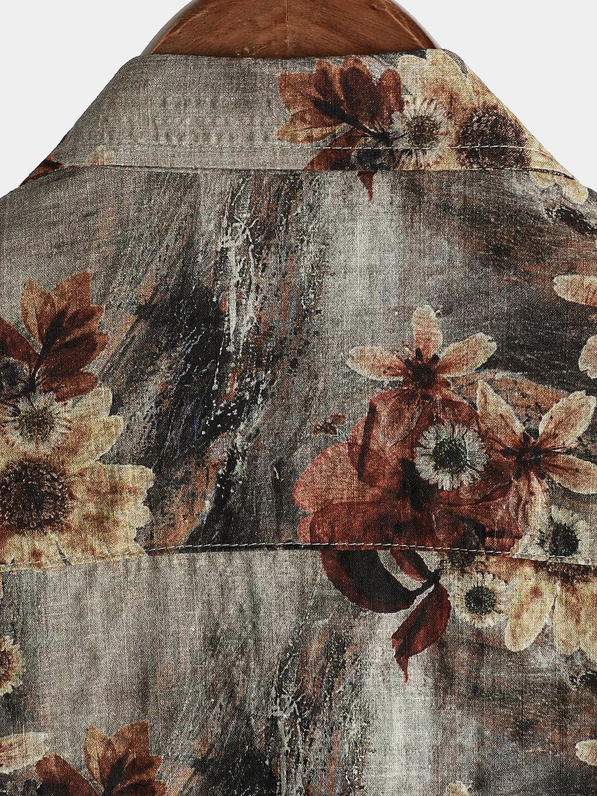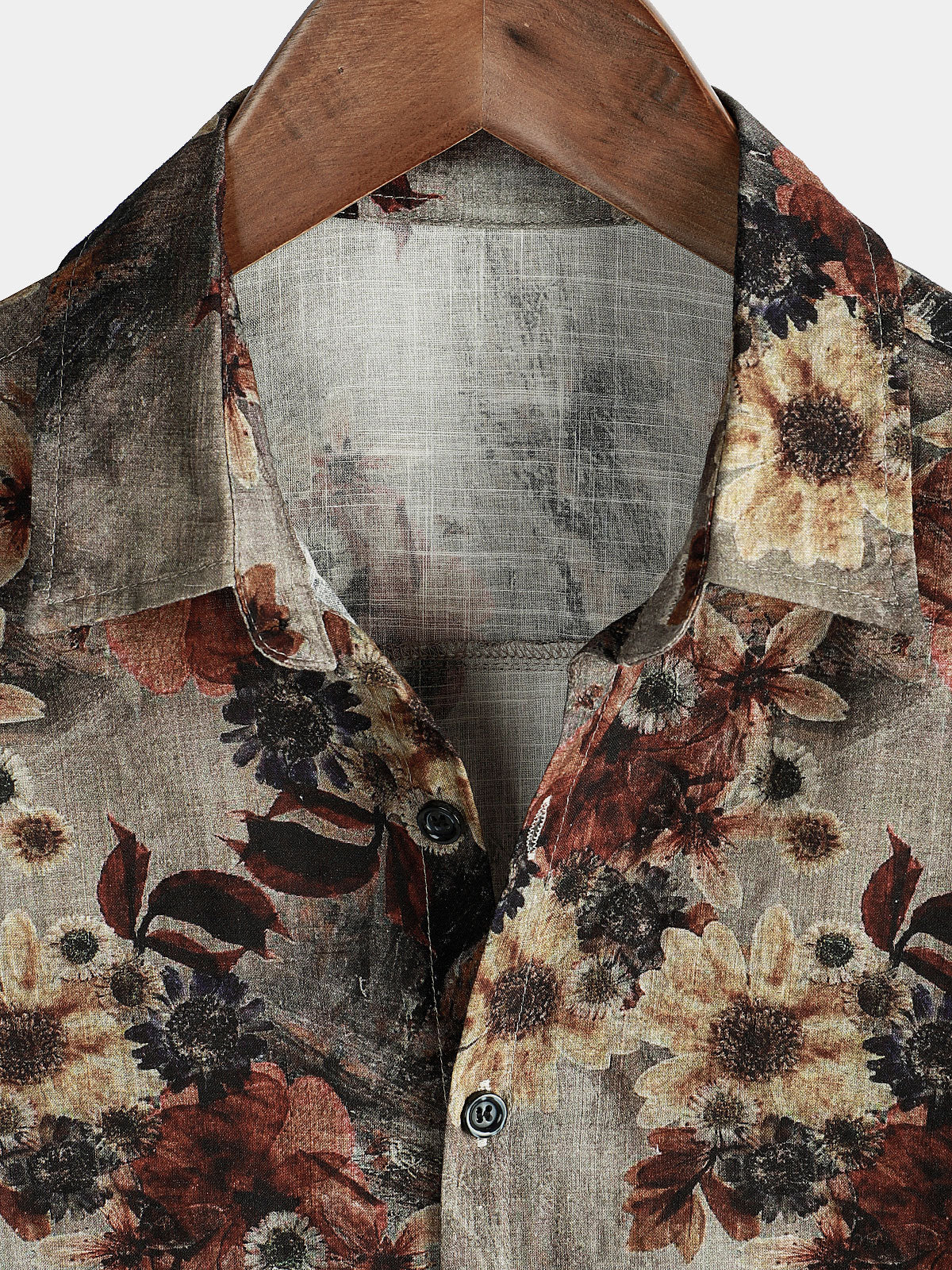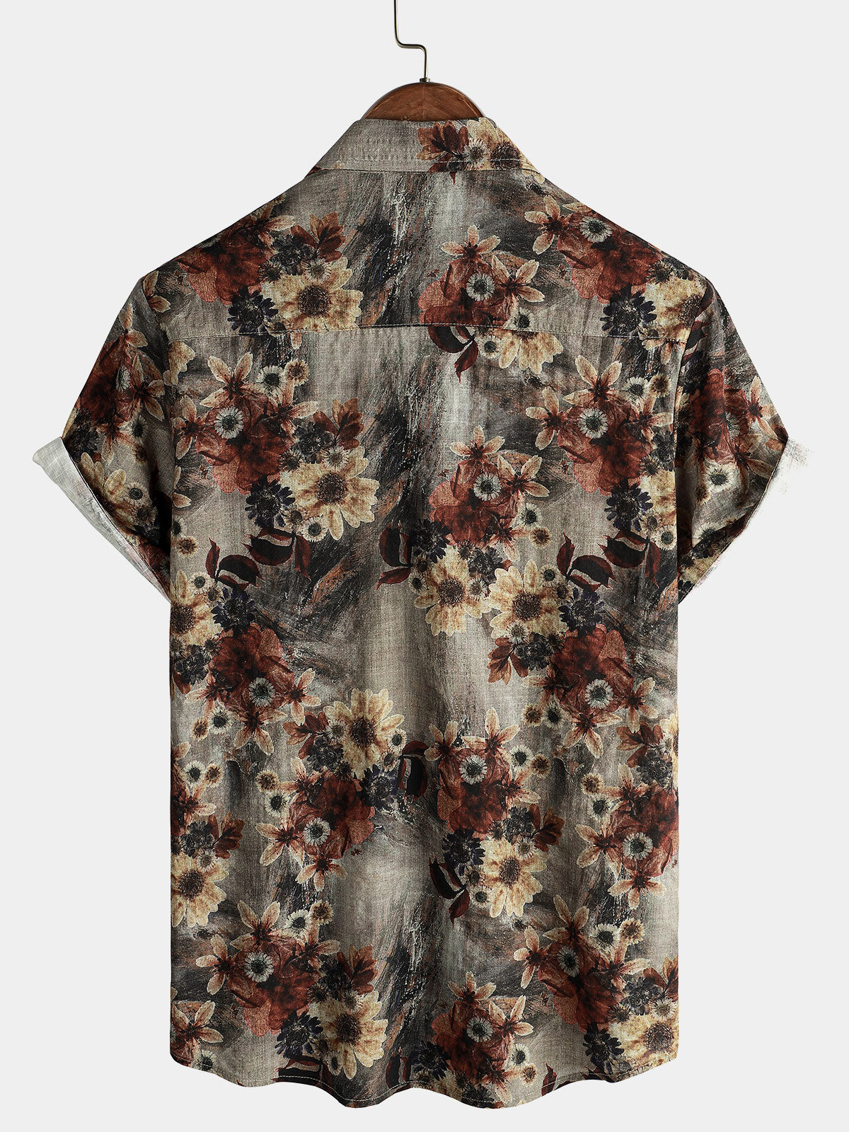 Herren Kurzärmliges Vintage-Hemd mit Blumenmuster