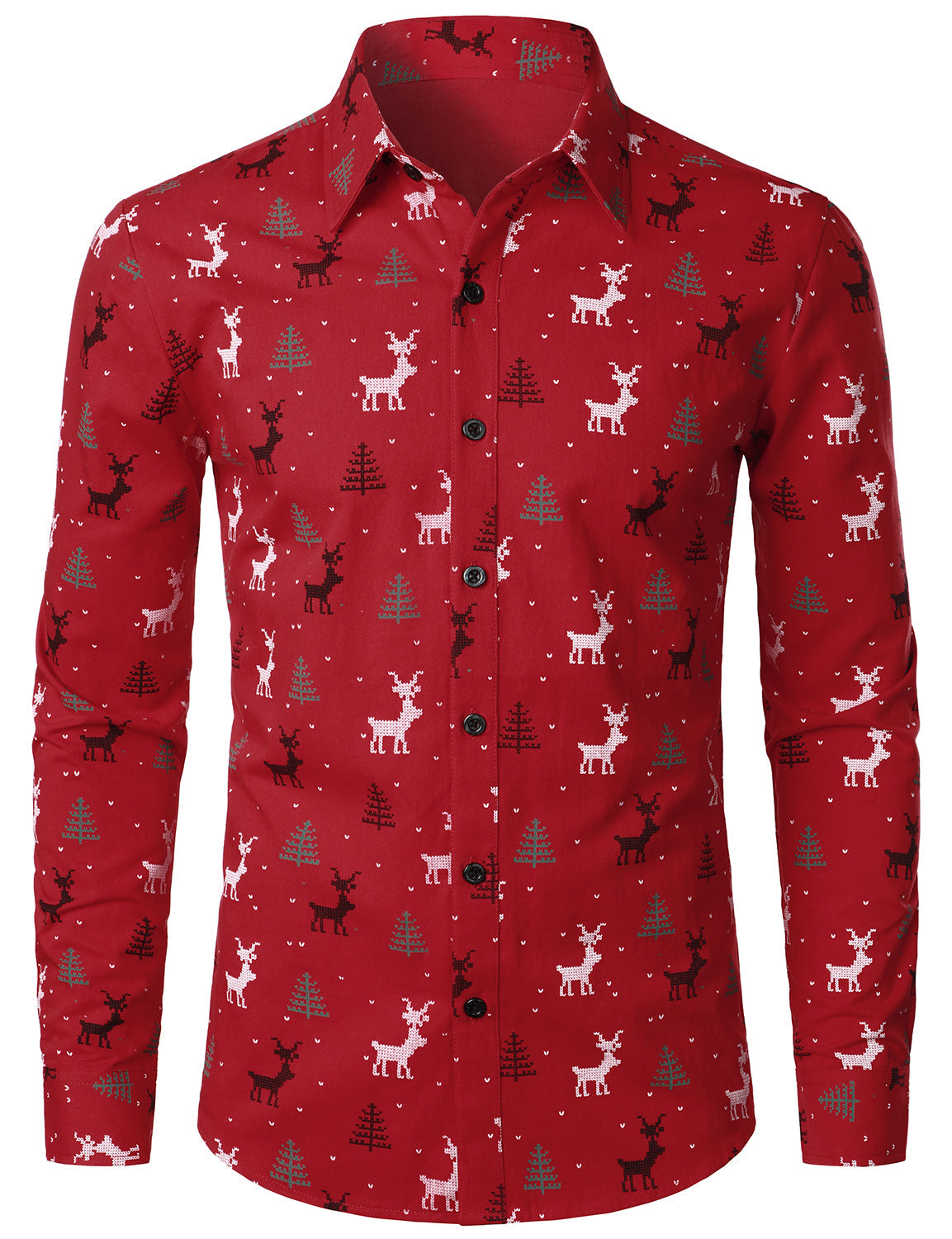 Herren Weihnachts Langarmhemd aus Baumwolle