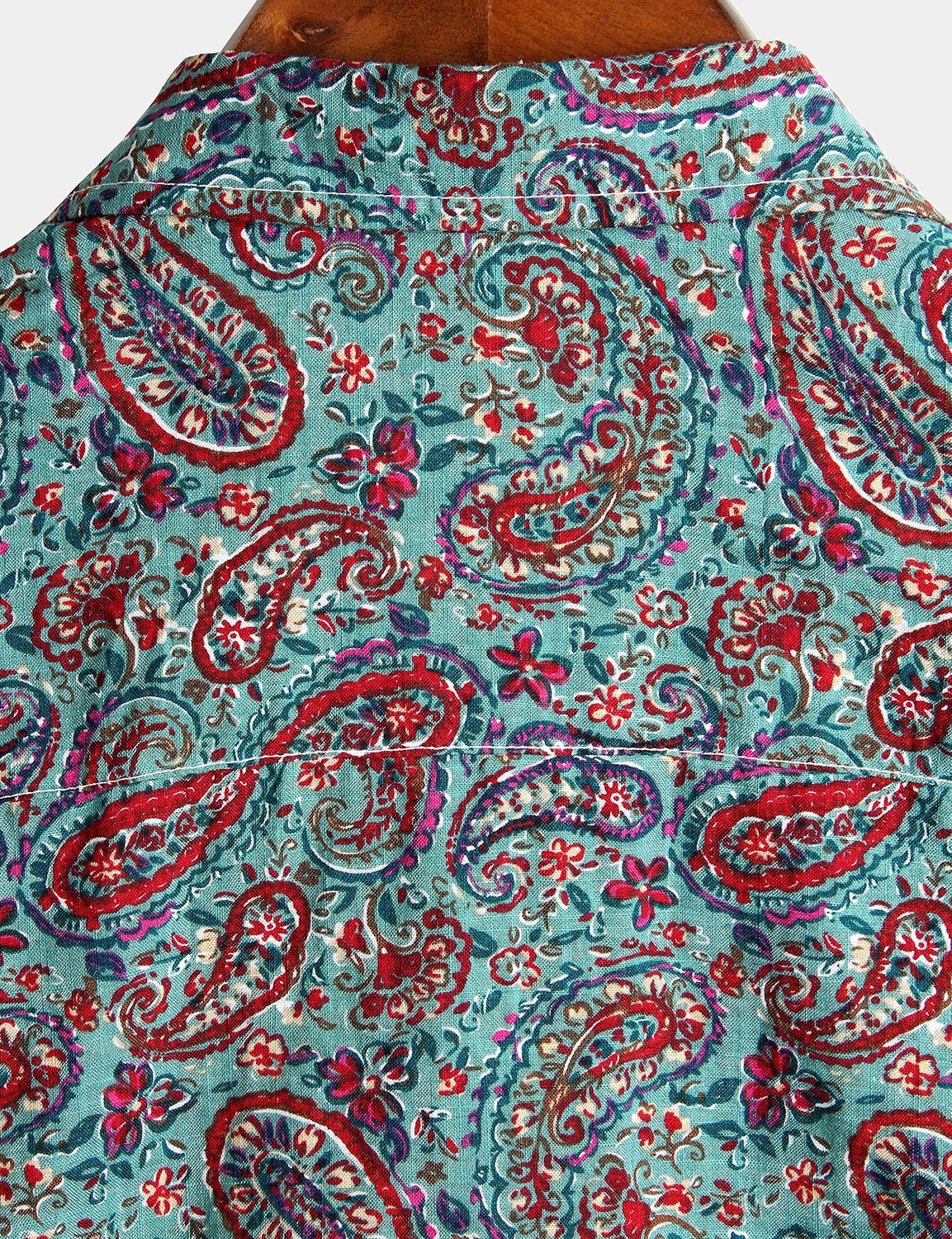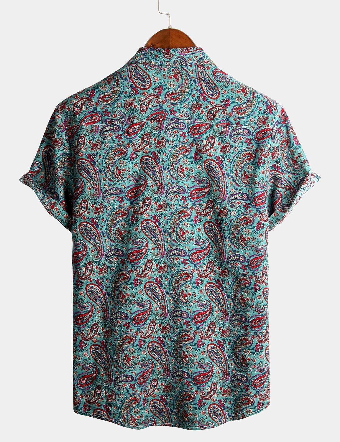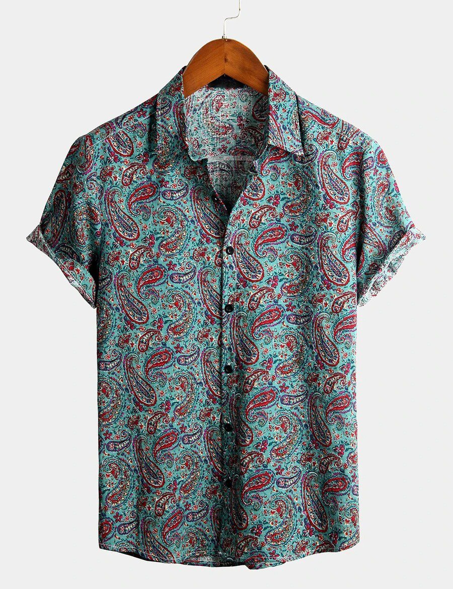 Herren Retro Sommer Paisley Hemd mit kurzen Ärmeln