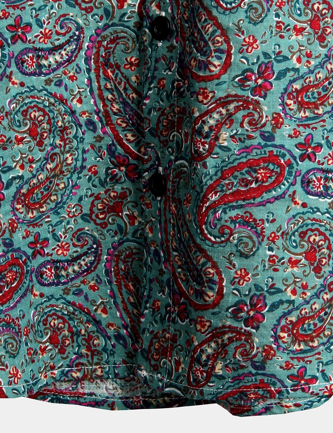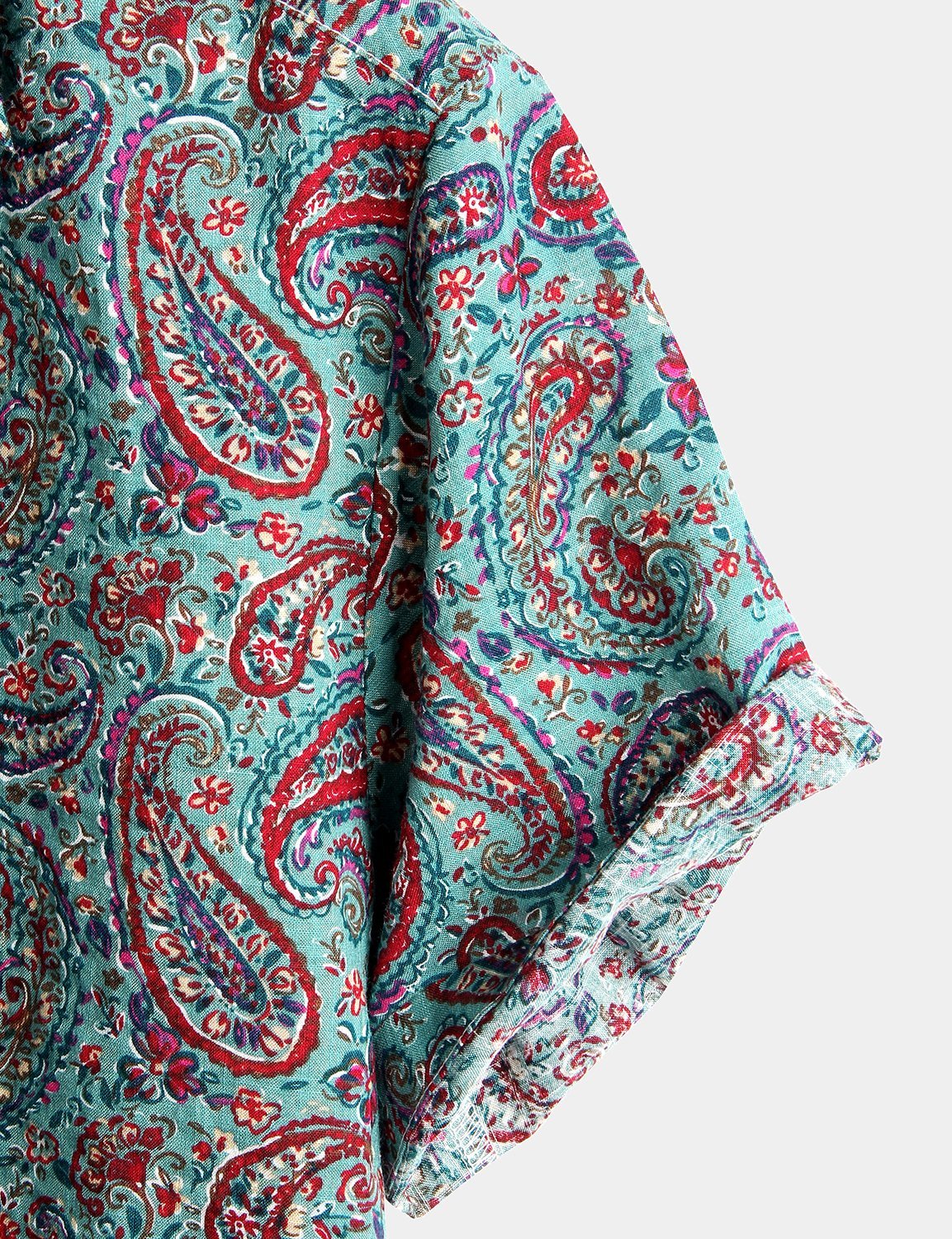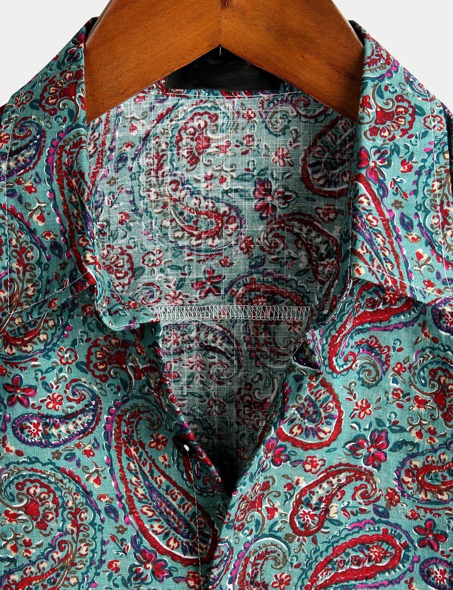 Herren Retro Sommer Paisley Hemd mit kurzen Ärmeln