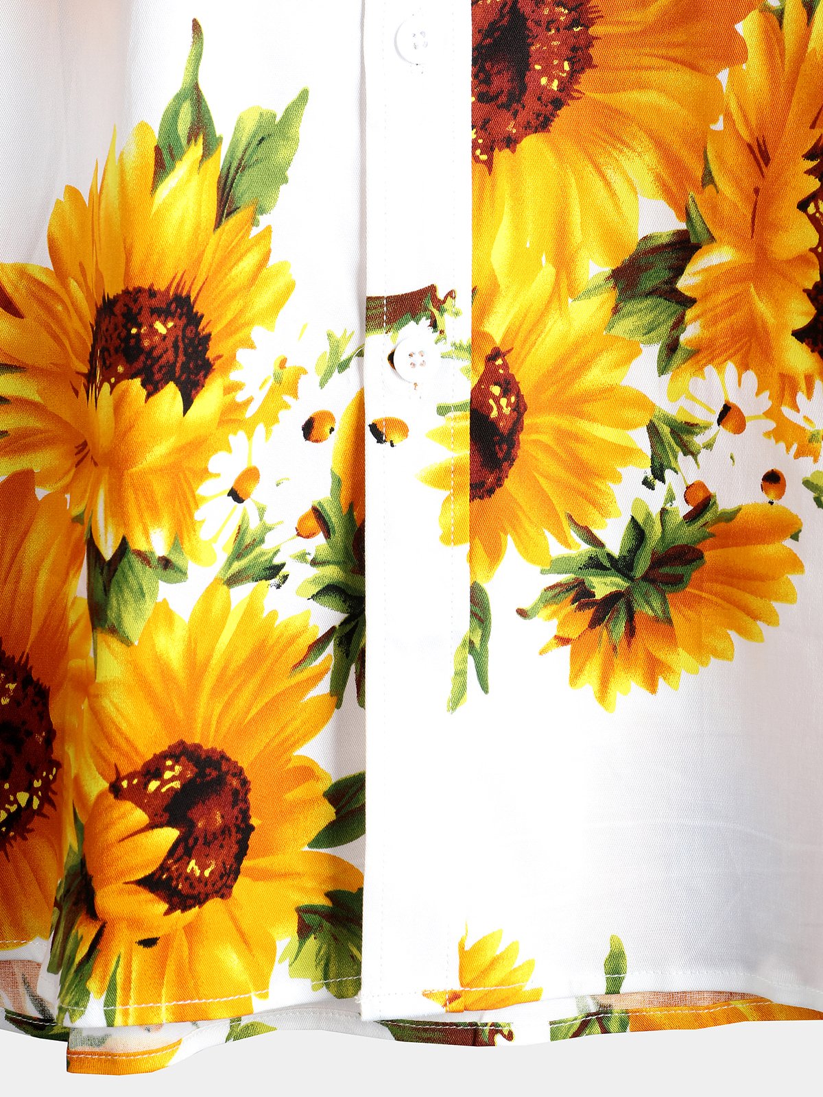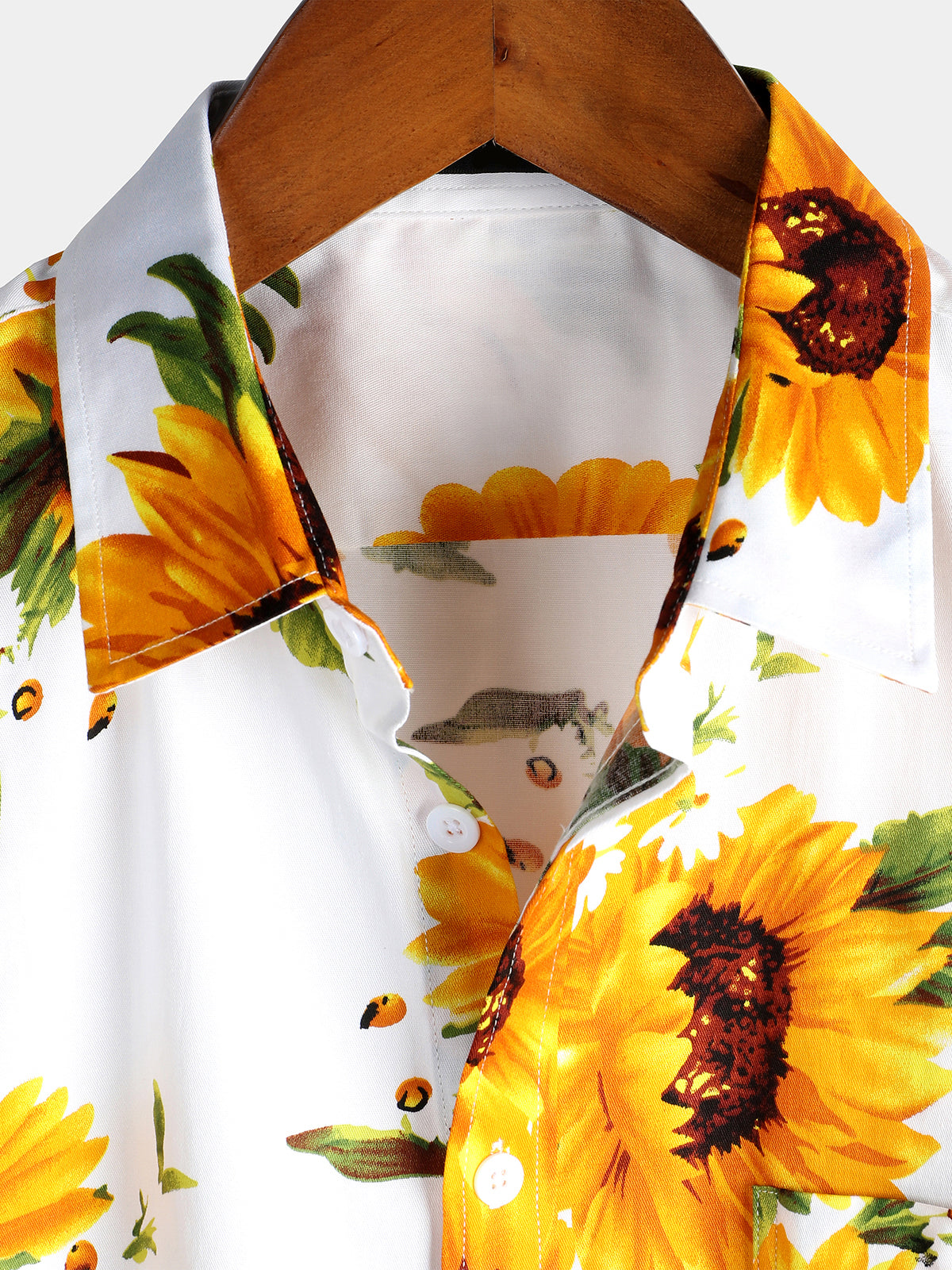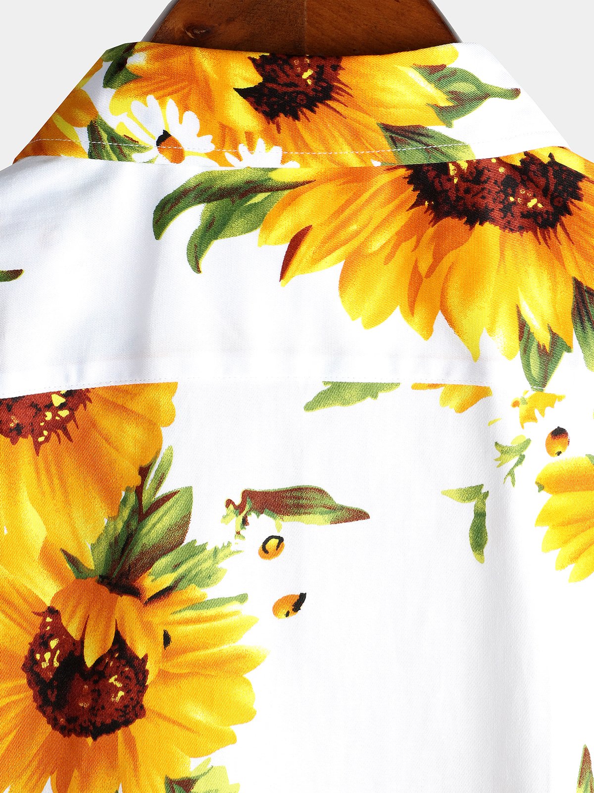 Herren Vintage Sonnenblumen Kurzarmshirt