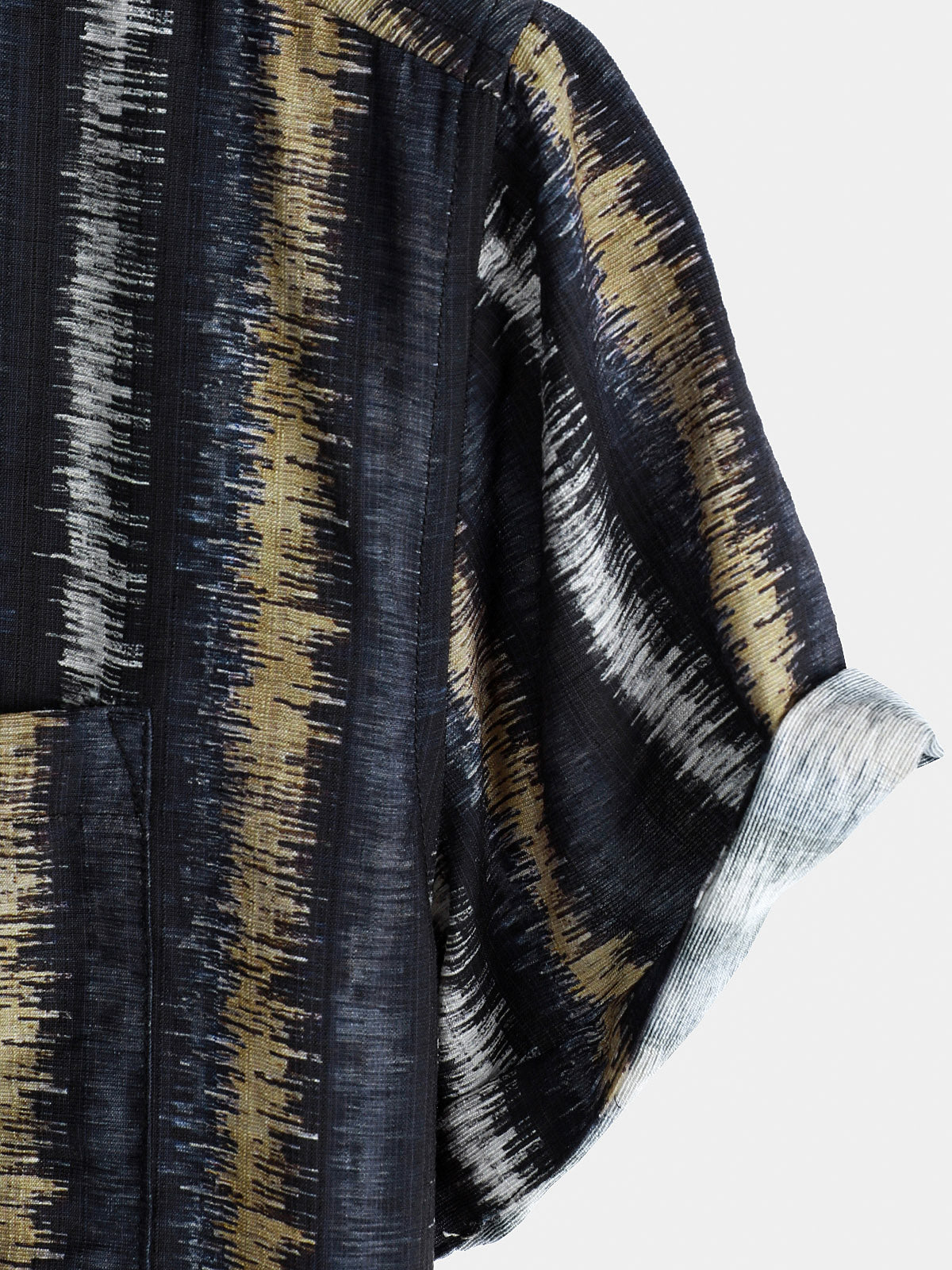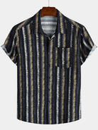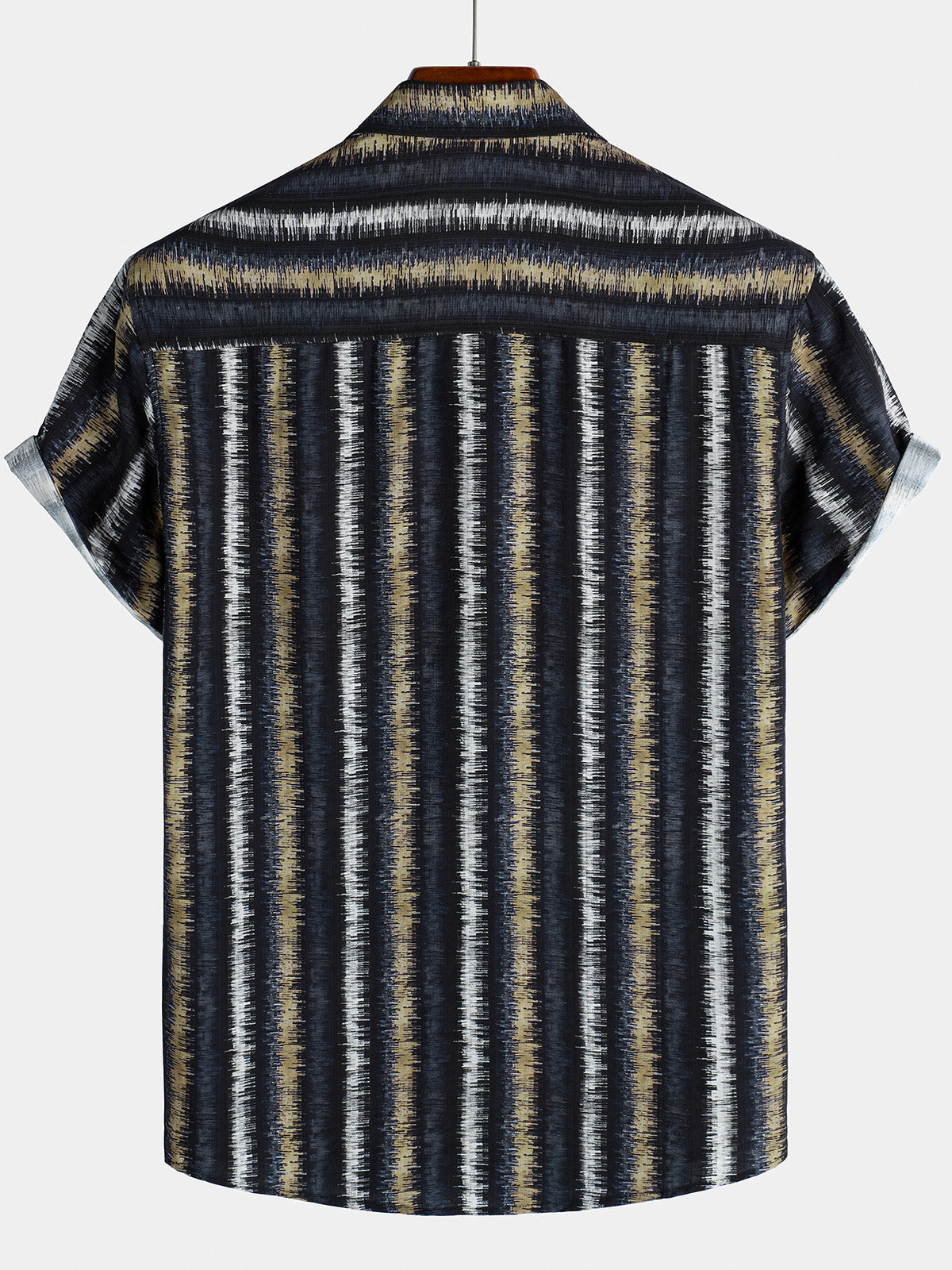 Herren Schwarz gestreiftes Kurzarmhemd aus Baumwolle
