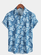 Herren Blaues Hawaii Hemd mit Blumenmuster