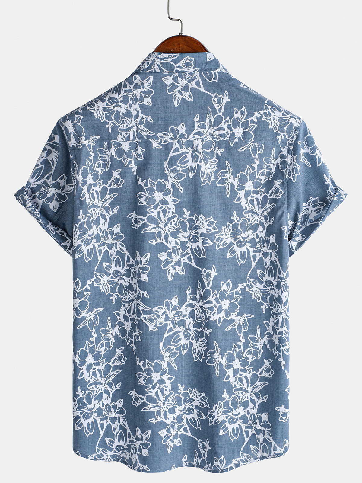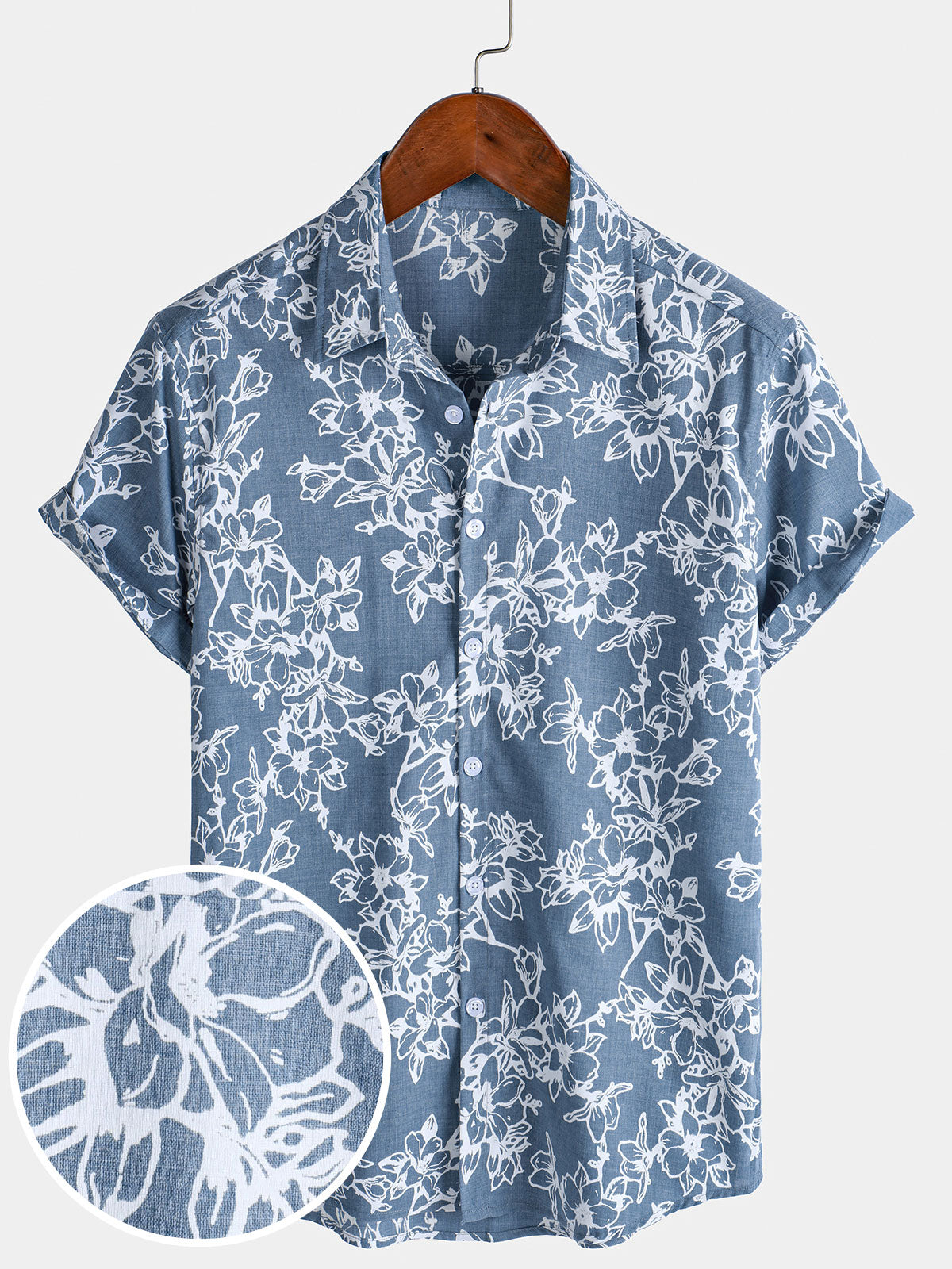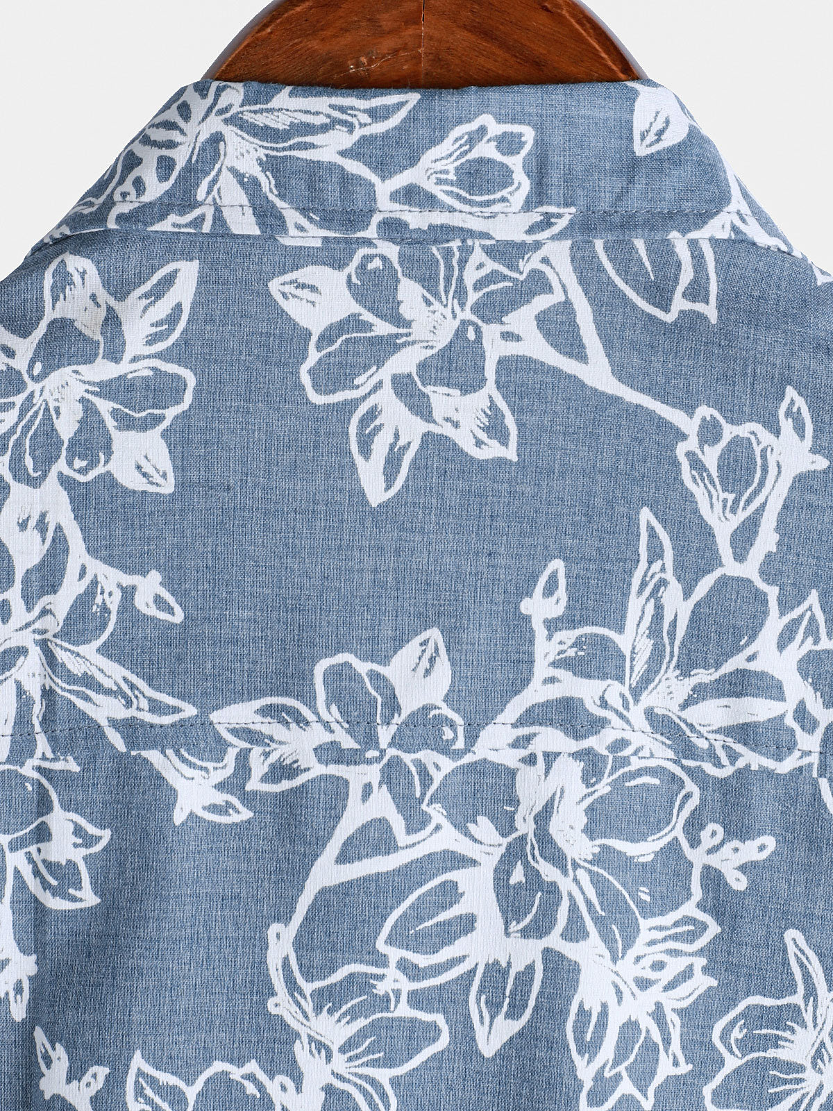 Blaues Sommer-Baumwollhemd mit Hawaii-Blumendruck für Herren