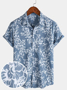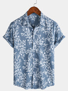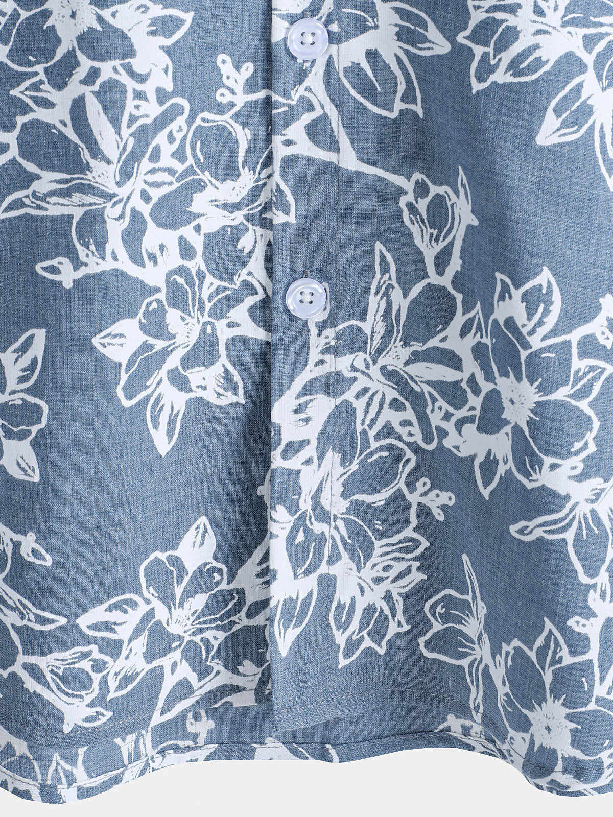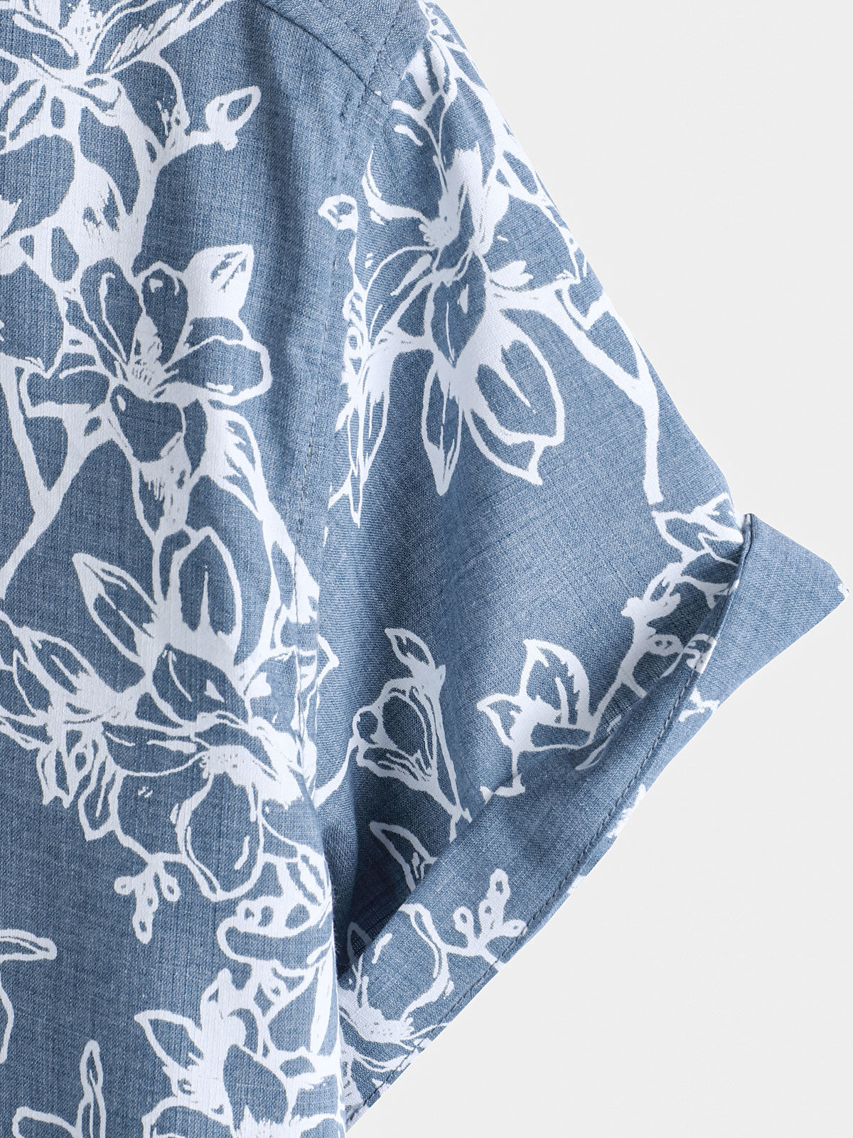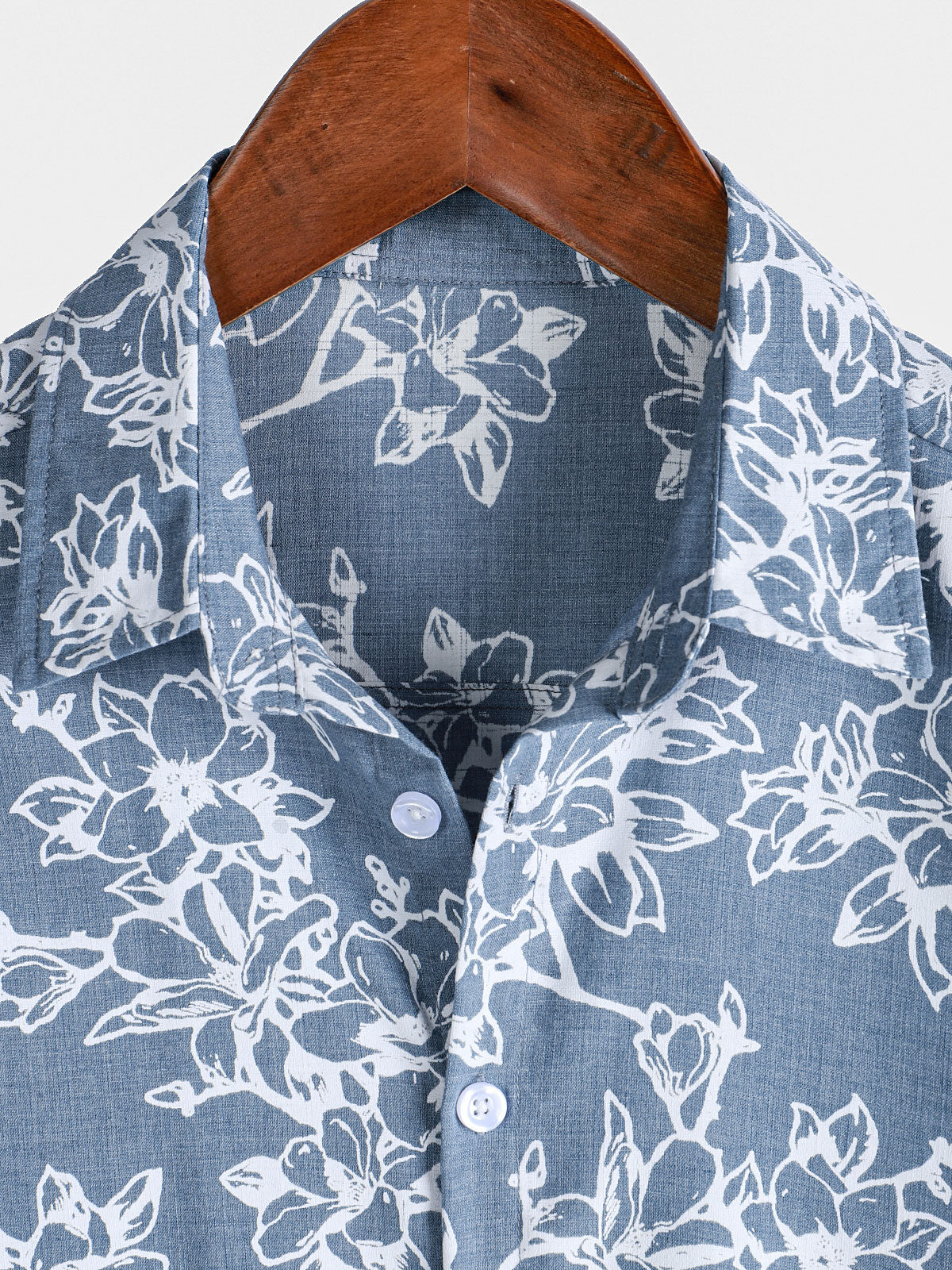 Blaues Sommer-Baumwollhemd mit Hawaii-Blumendruck für Herren