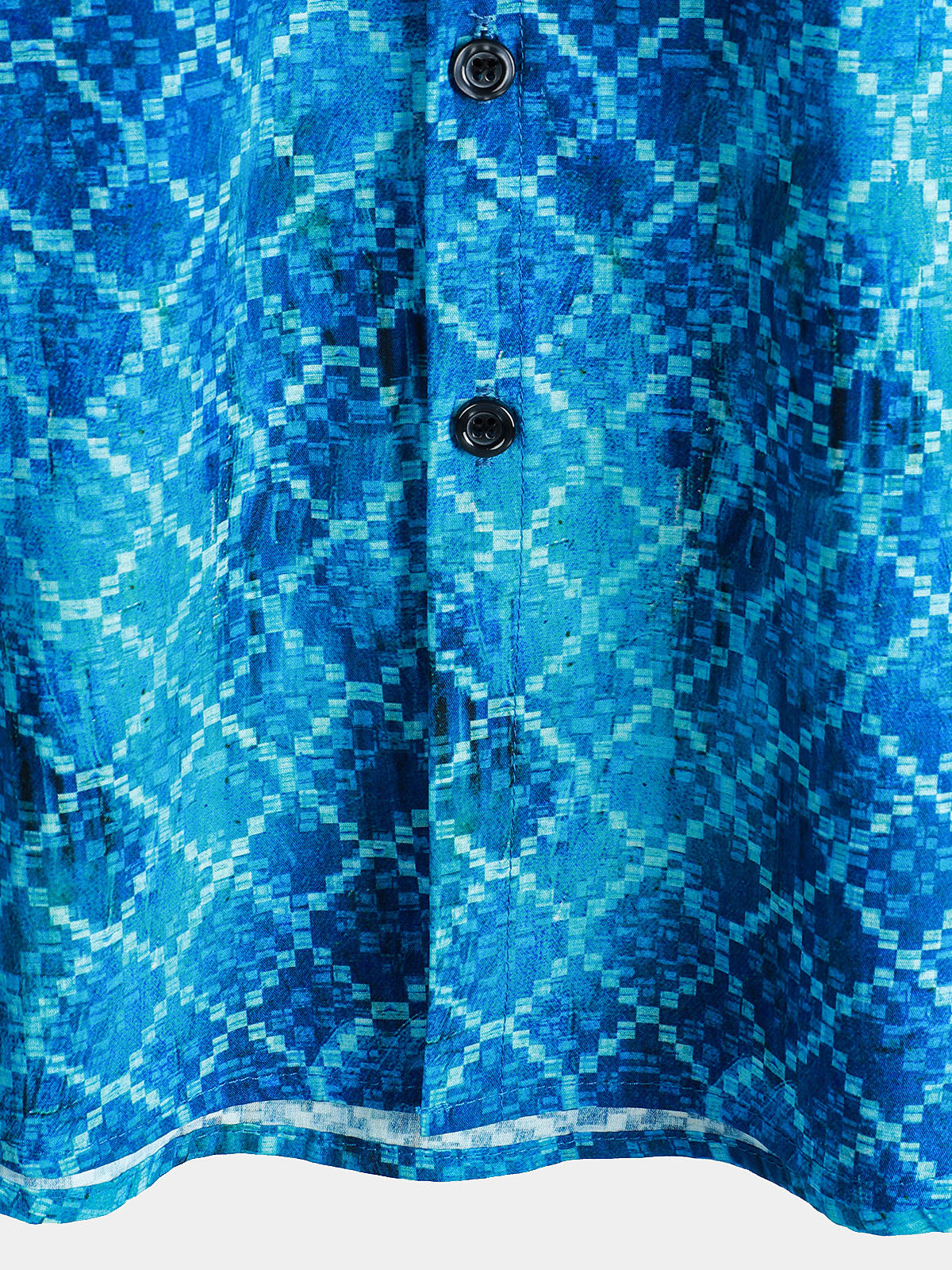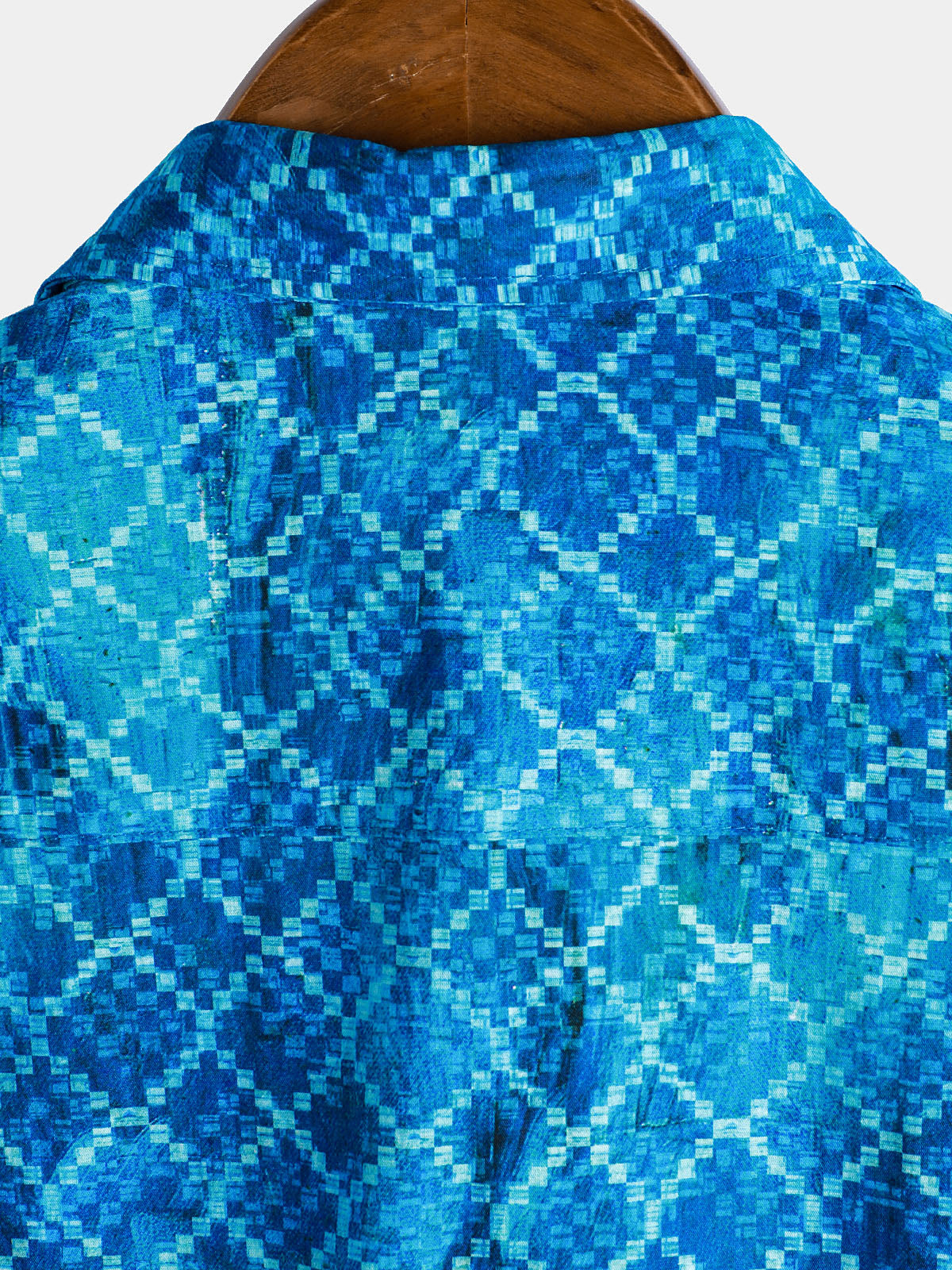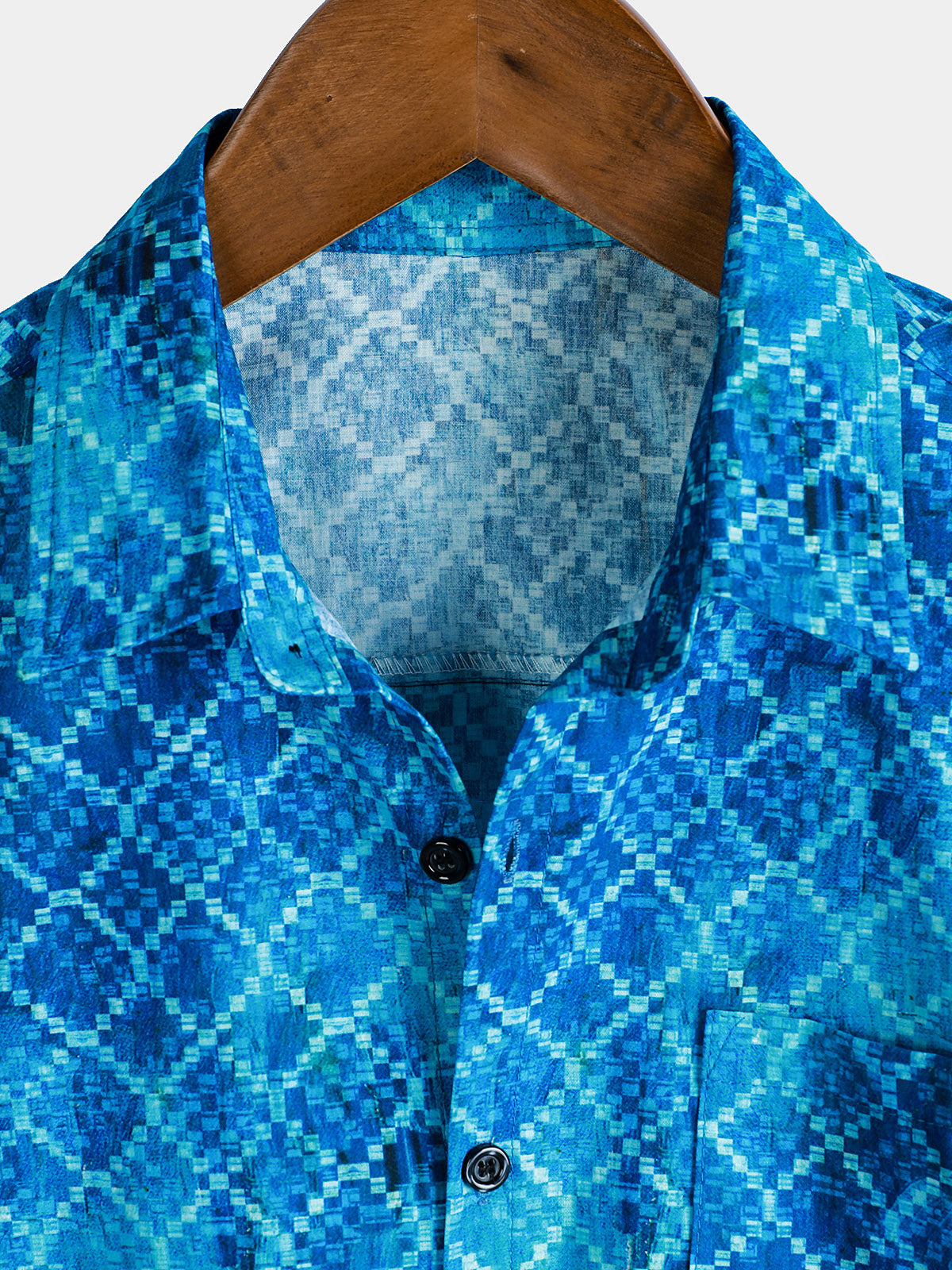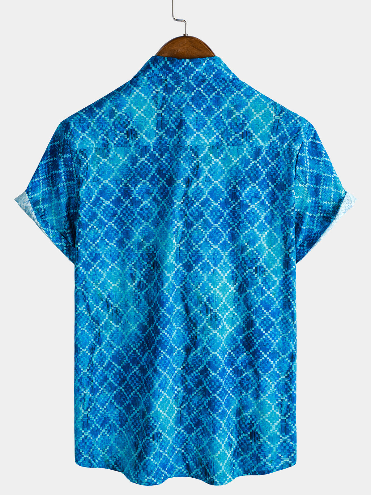 Herren Blaues Hawaii-Kurzarmhemd aus Baumwolle