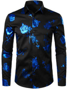 Herren Langärmliges Hemd mit Blumenmuster und blauen Rosen