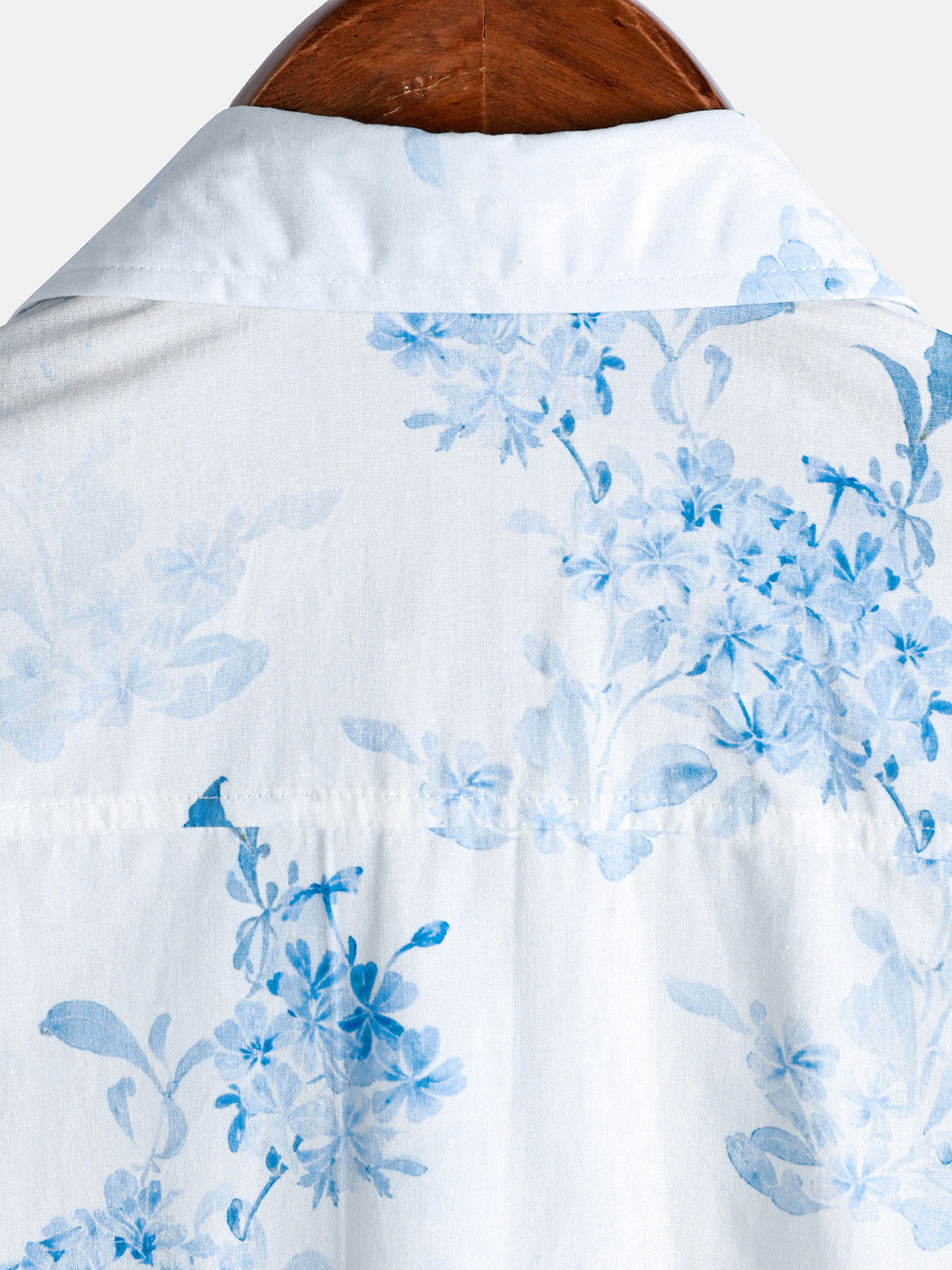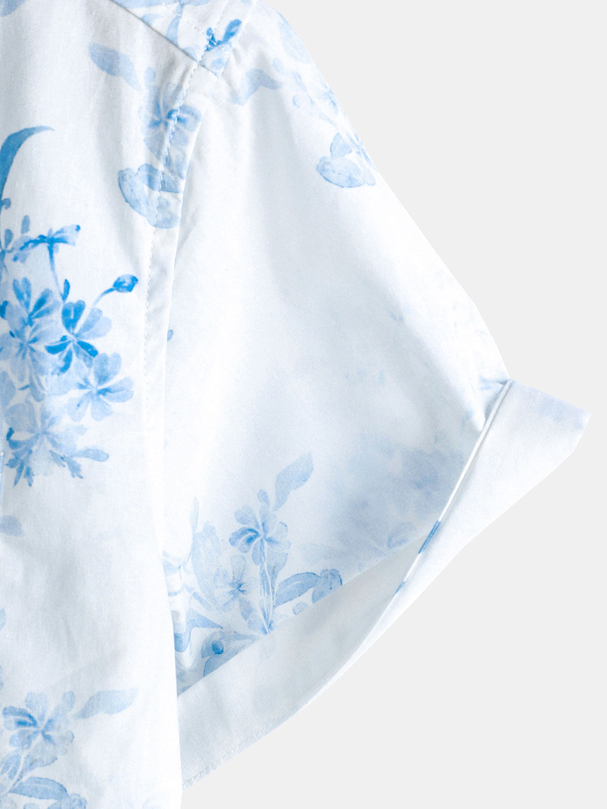 Herren Lässiges Kurzarmhemd aus Baumwolle mit Blumenmuster