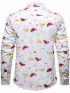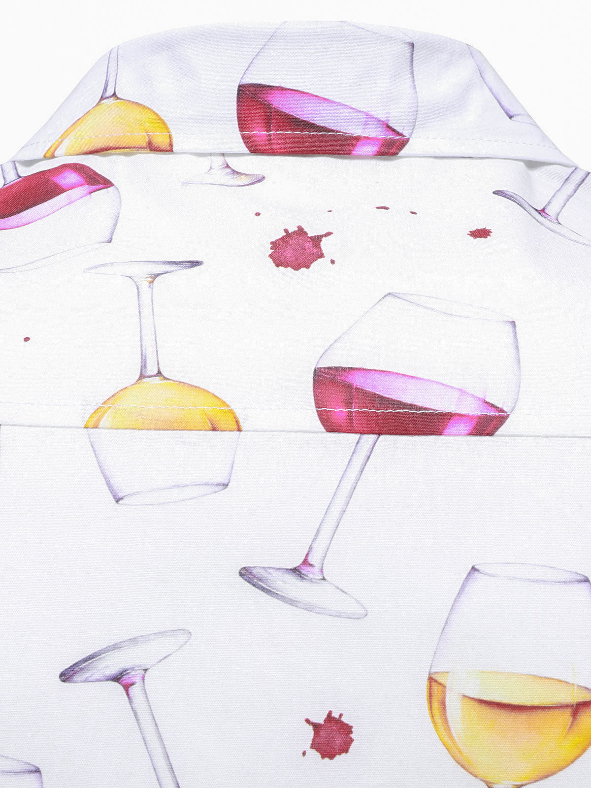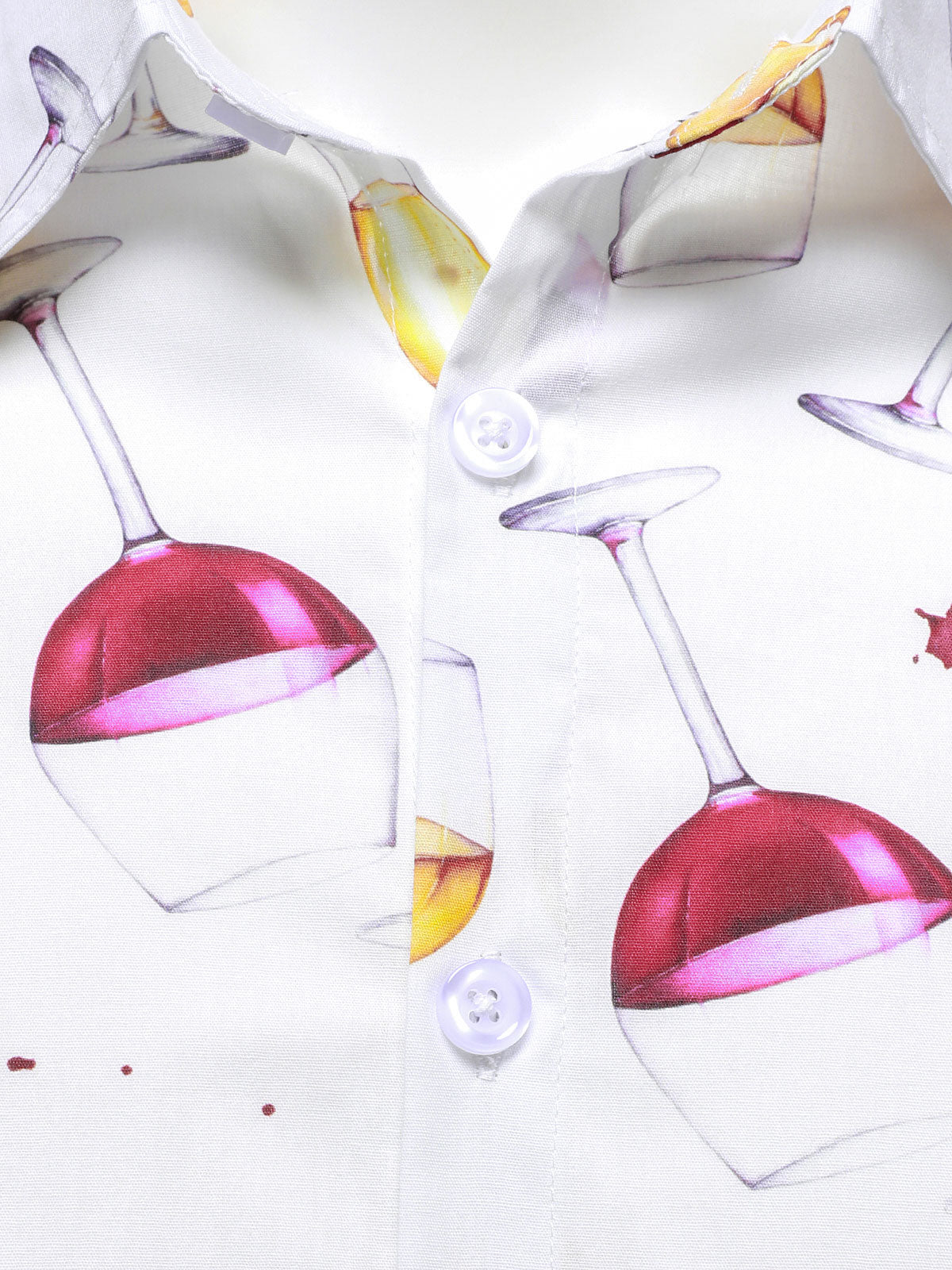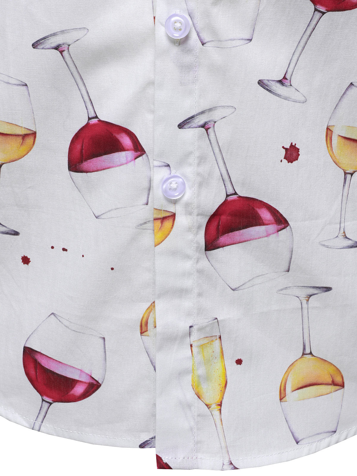 Herren Freizeit Urlaub Weinglas-Print Baumwollhemd Weiß
