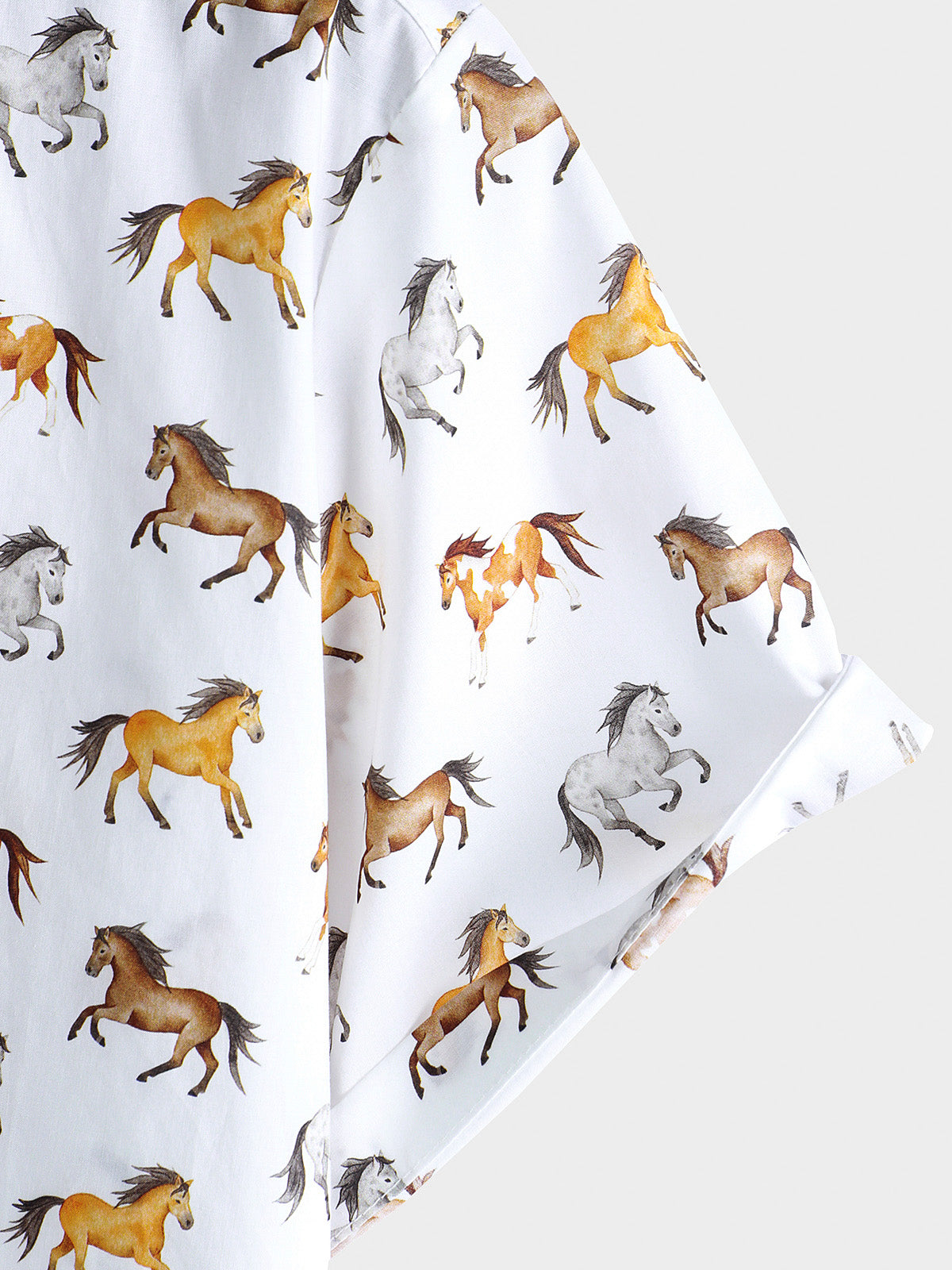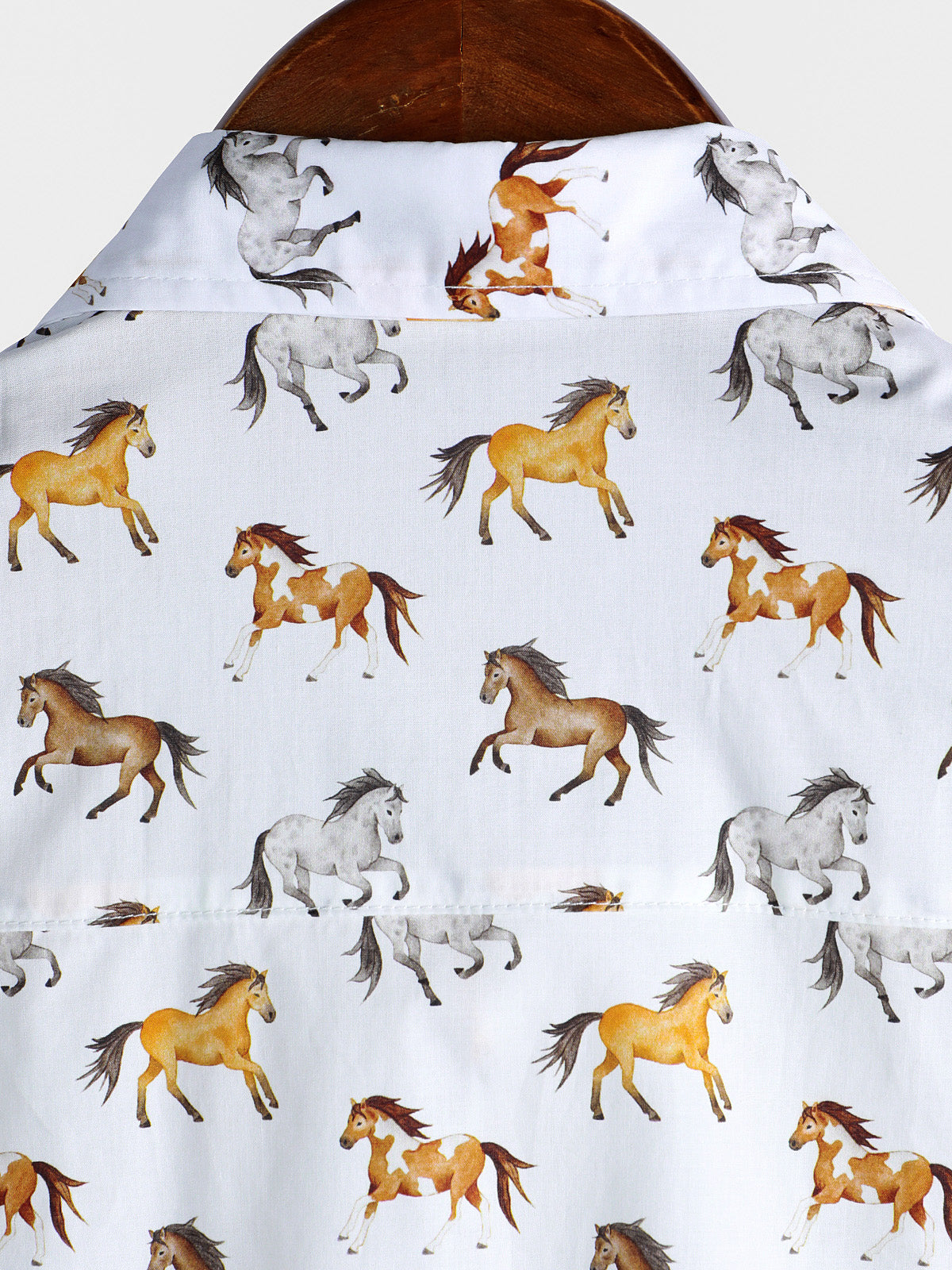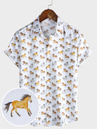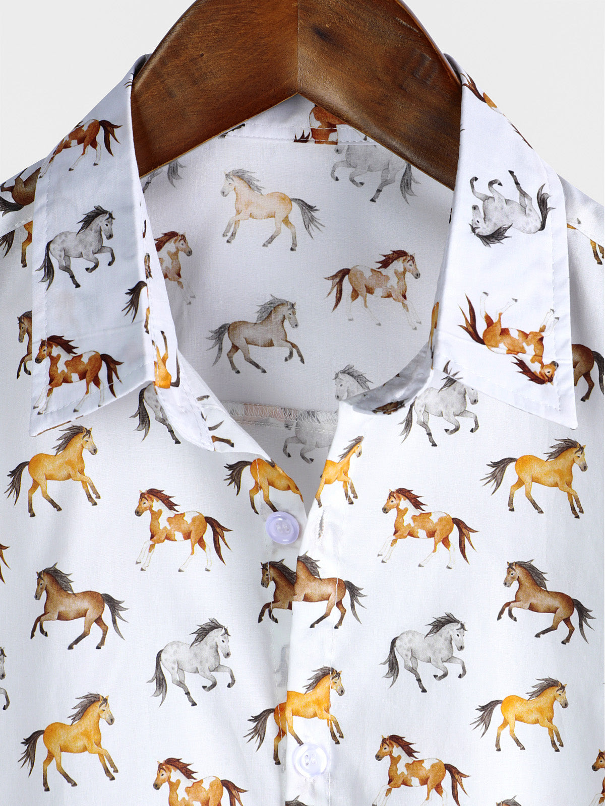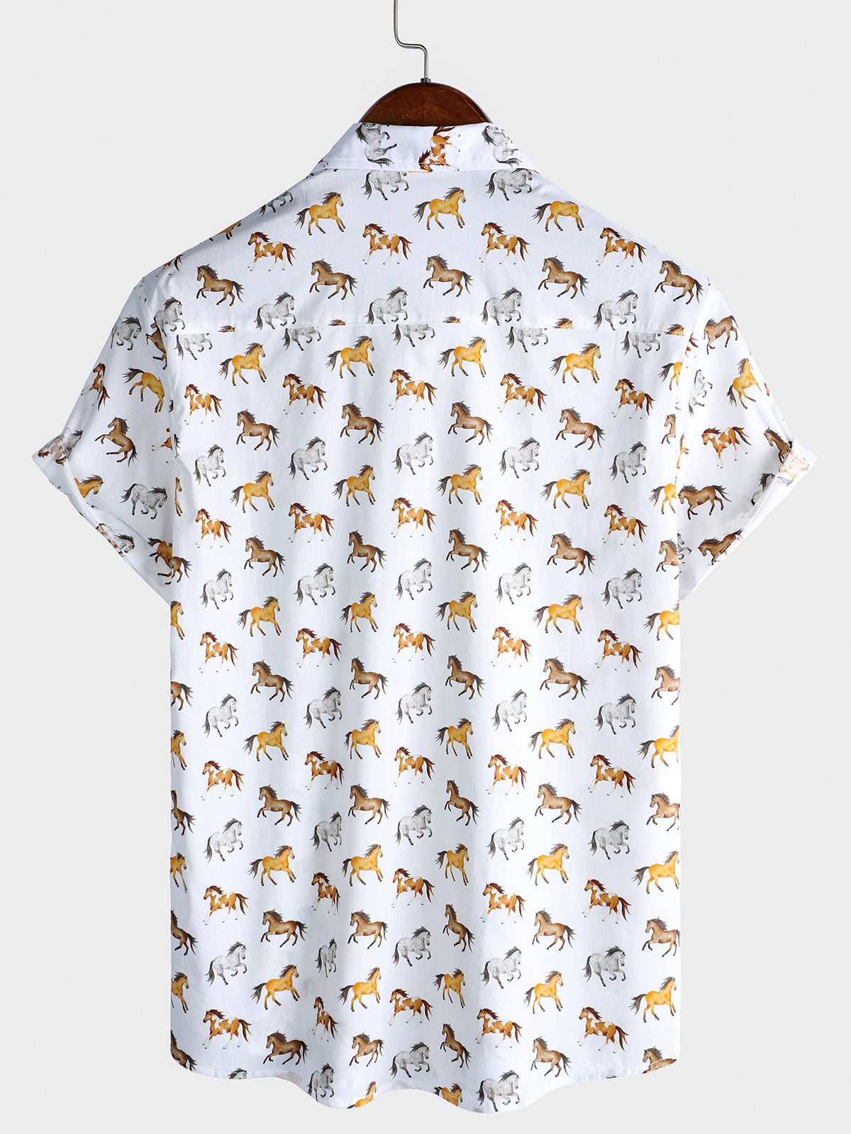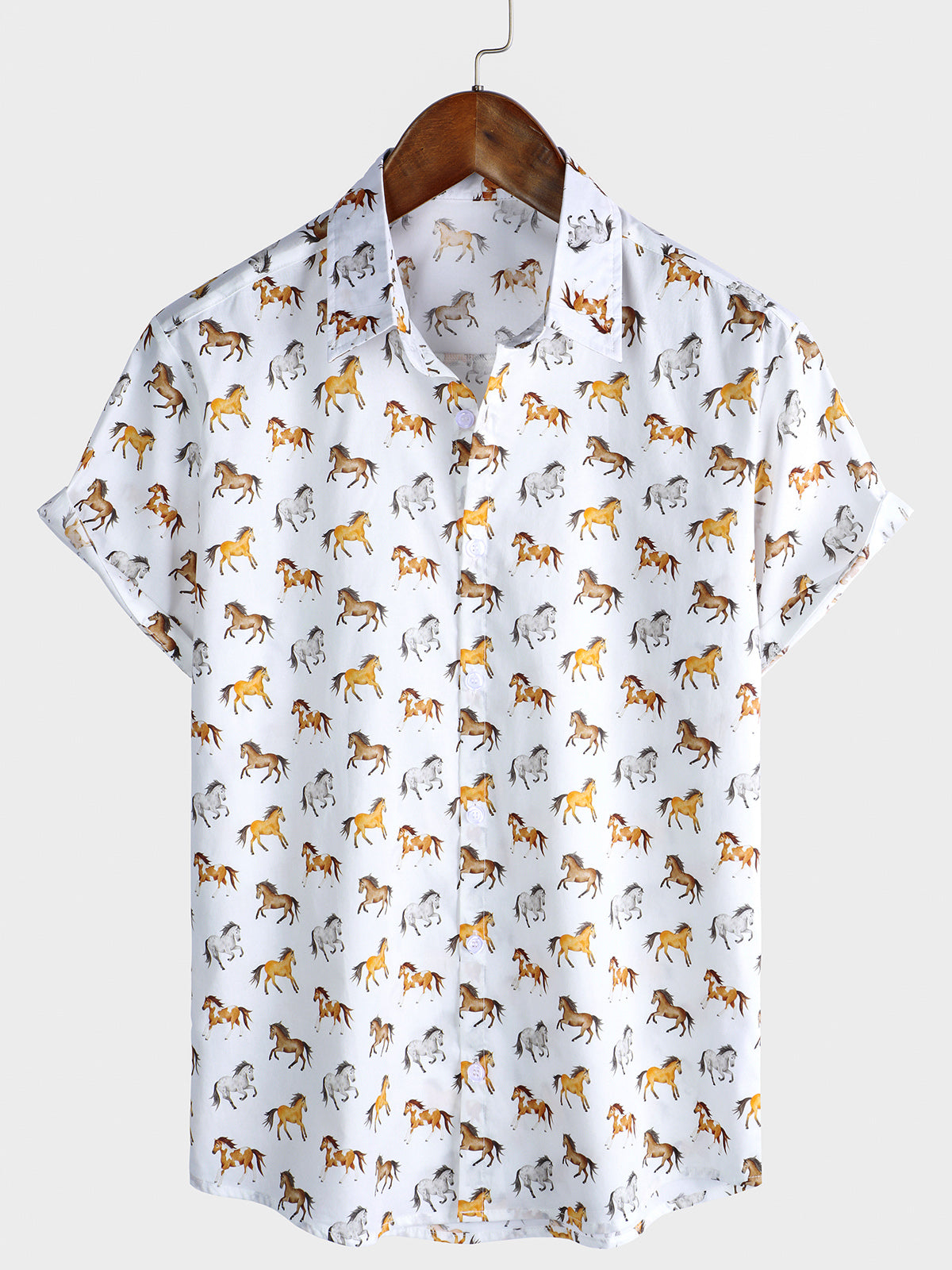 Herren Lässig mit Pferdemuster Urlaubs Kurzarmhemd