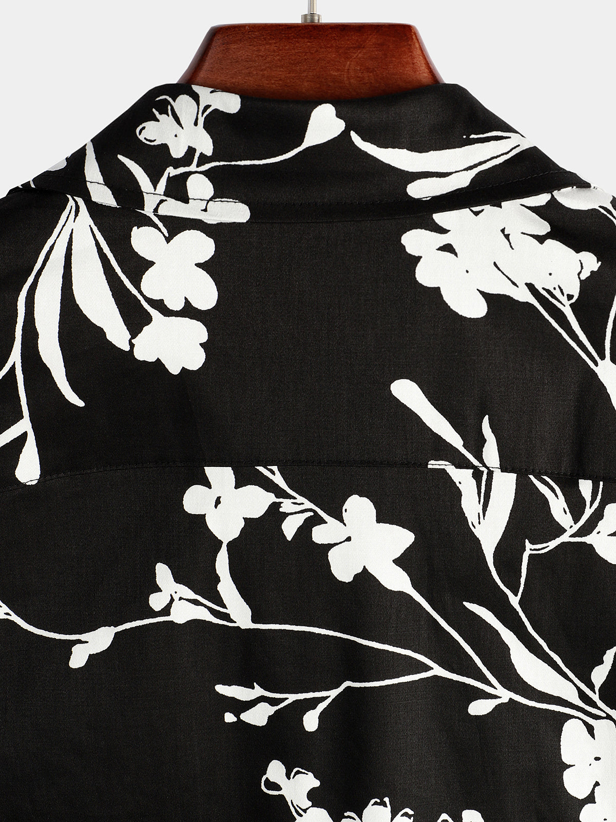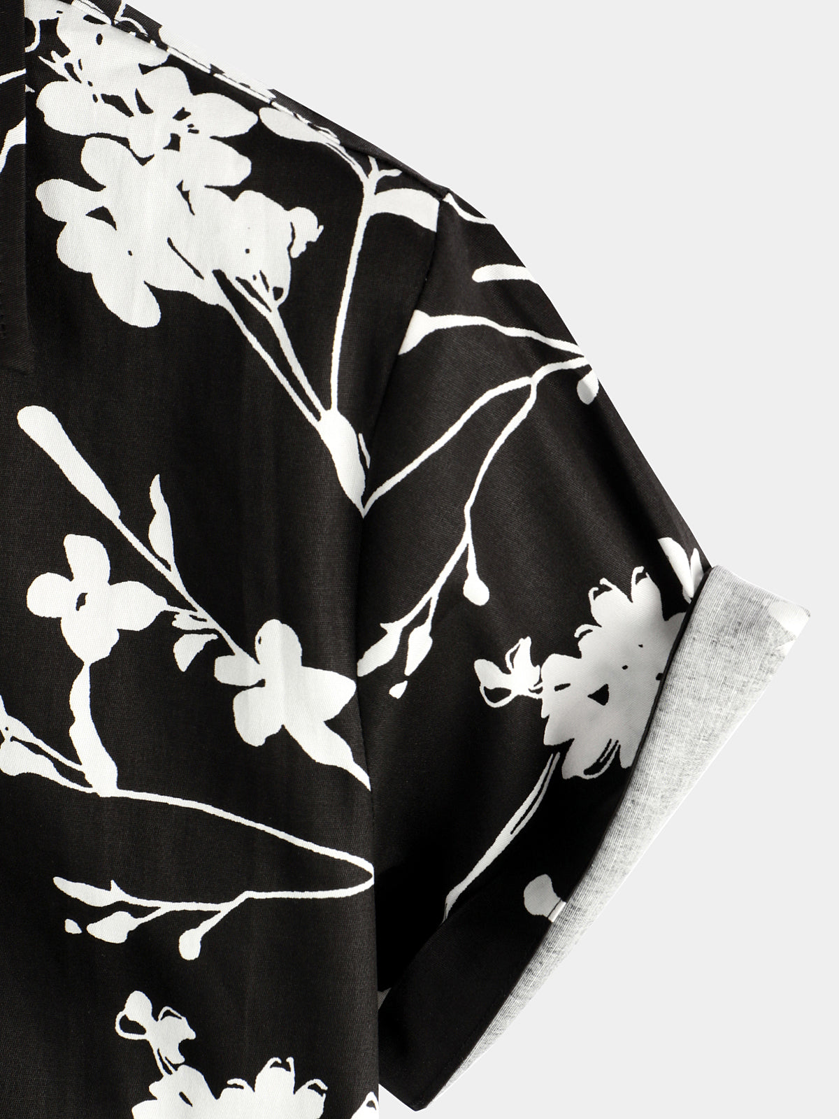 Herren Freizeitknopfleisten Kurzarmhemd Schwarz