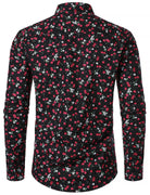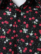 Herren Schwarzes Langarmhemd aus Baumwolle mit Kirschdruck