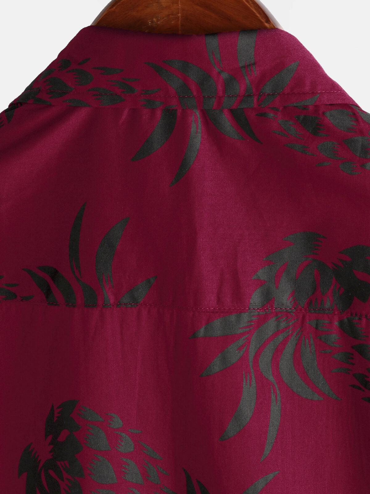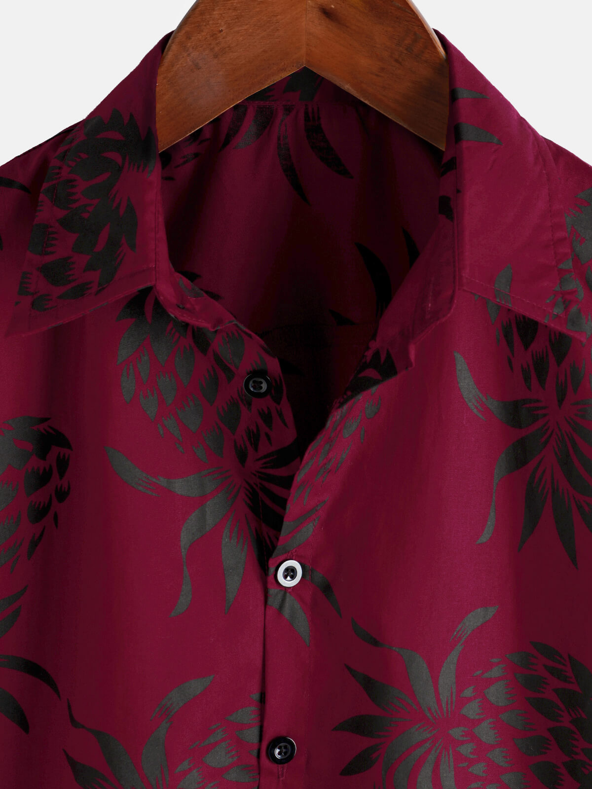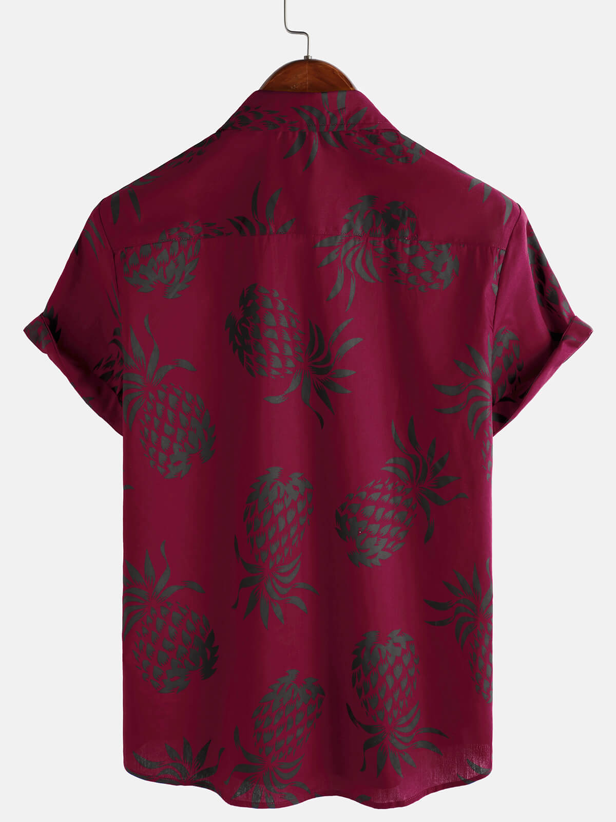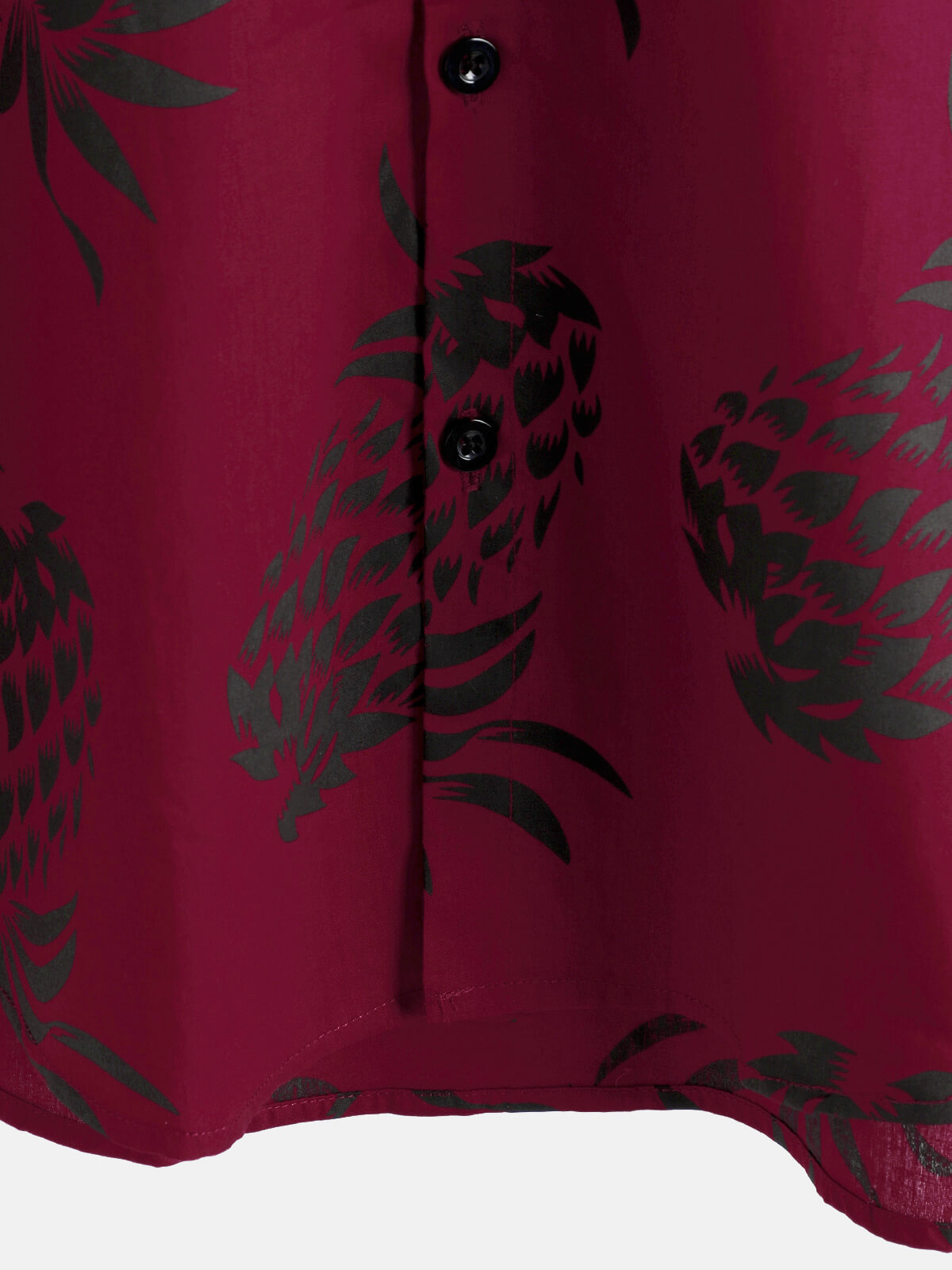 Herren Kurzarmhemd aus Baumwolle mit Ananas-Print Rot