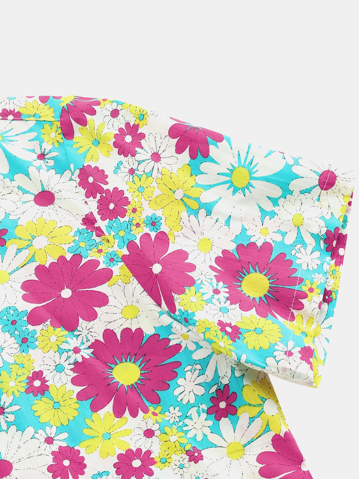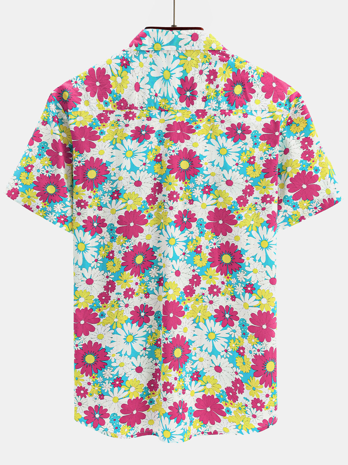 Herren Kurzärmliges Baumwollhemd mit Blumenmuster