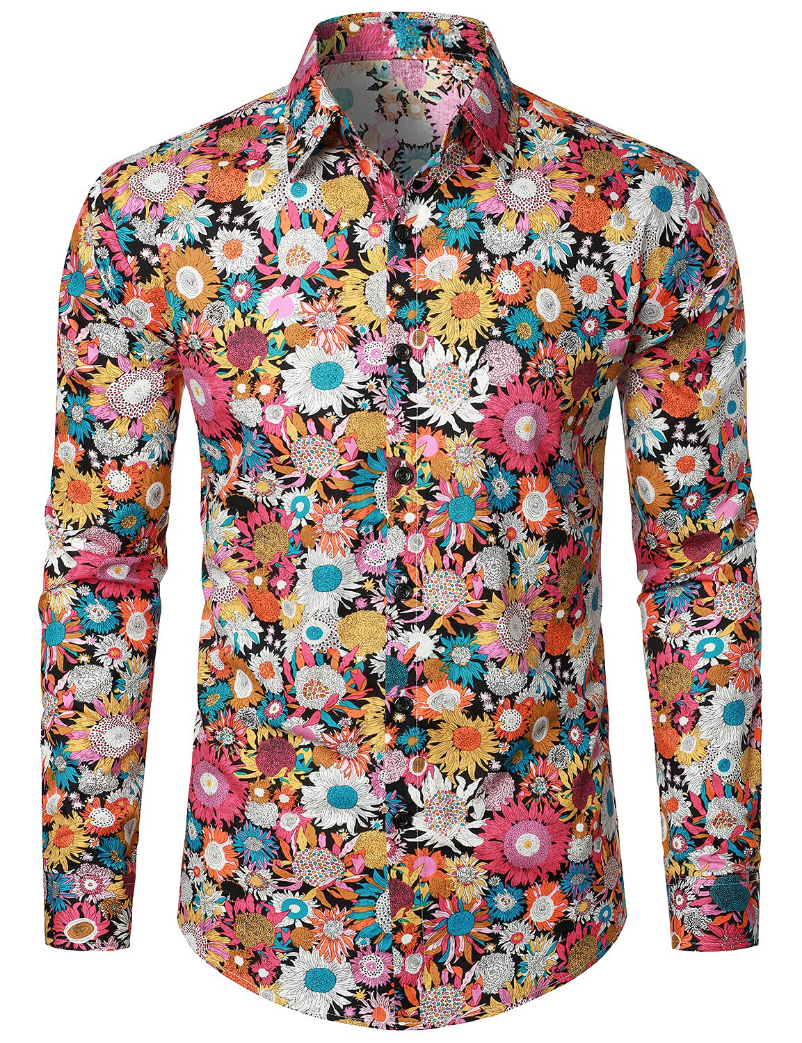 Herren Langarmhemd aus Baumwolle mit Blumenmuster