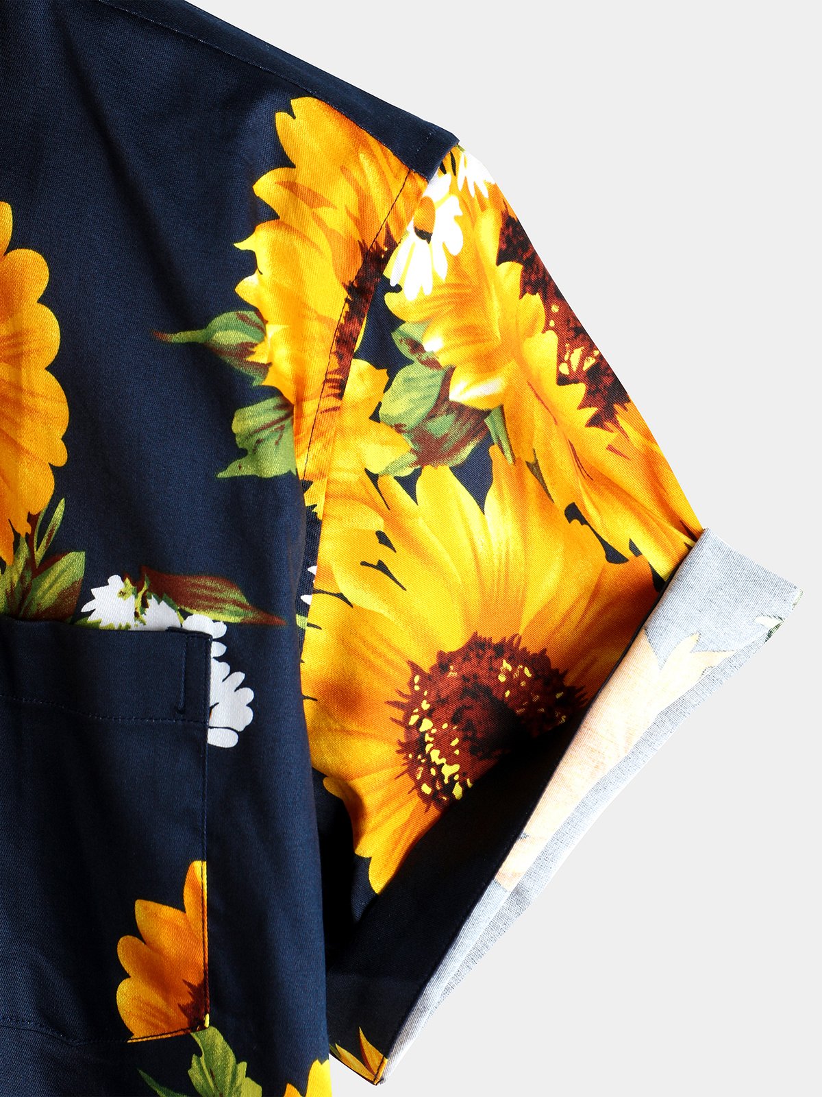 Herren Vintage Sonnenblumen Kurzarmshirt