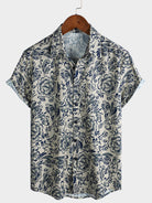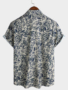Herren Blumenmuster Kurzarm-Freizeithemd aus Baumwolle