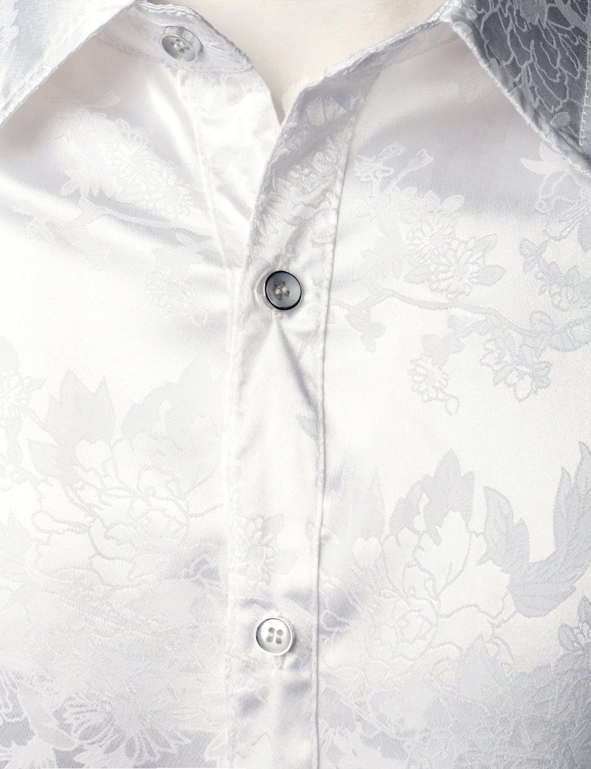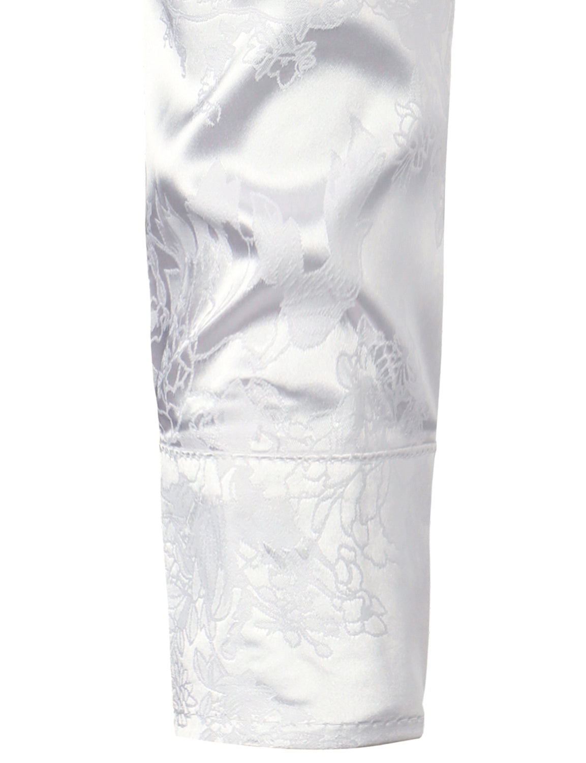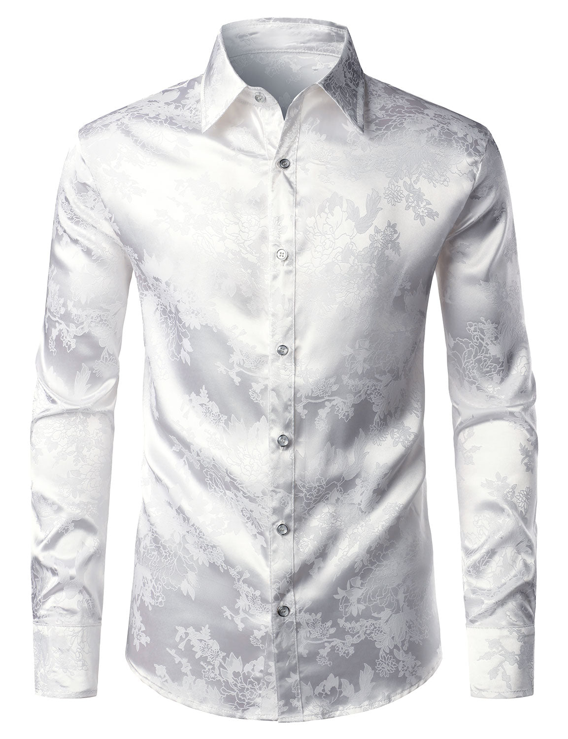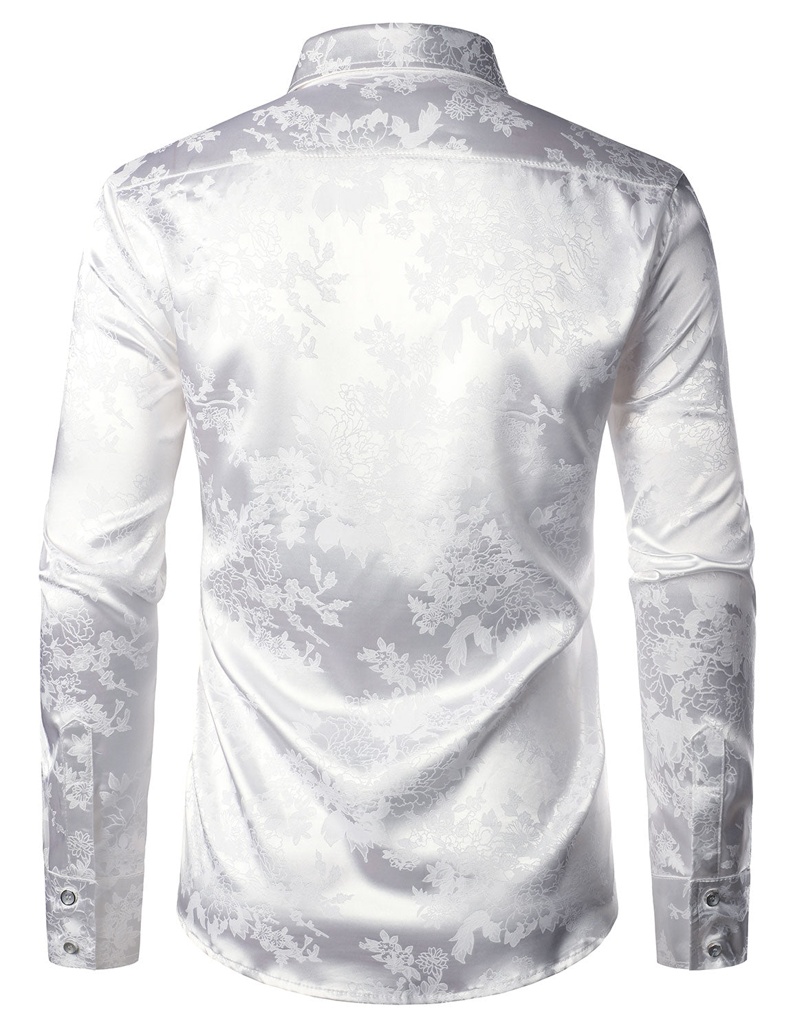 Herren Langärmliges Jacquard Hemd aus glänzendem Satin Weiß