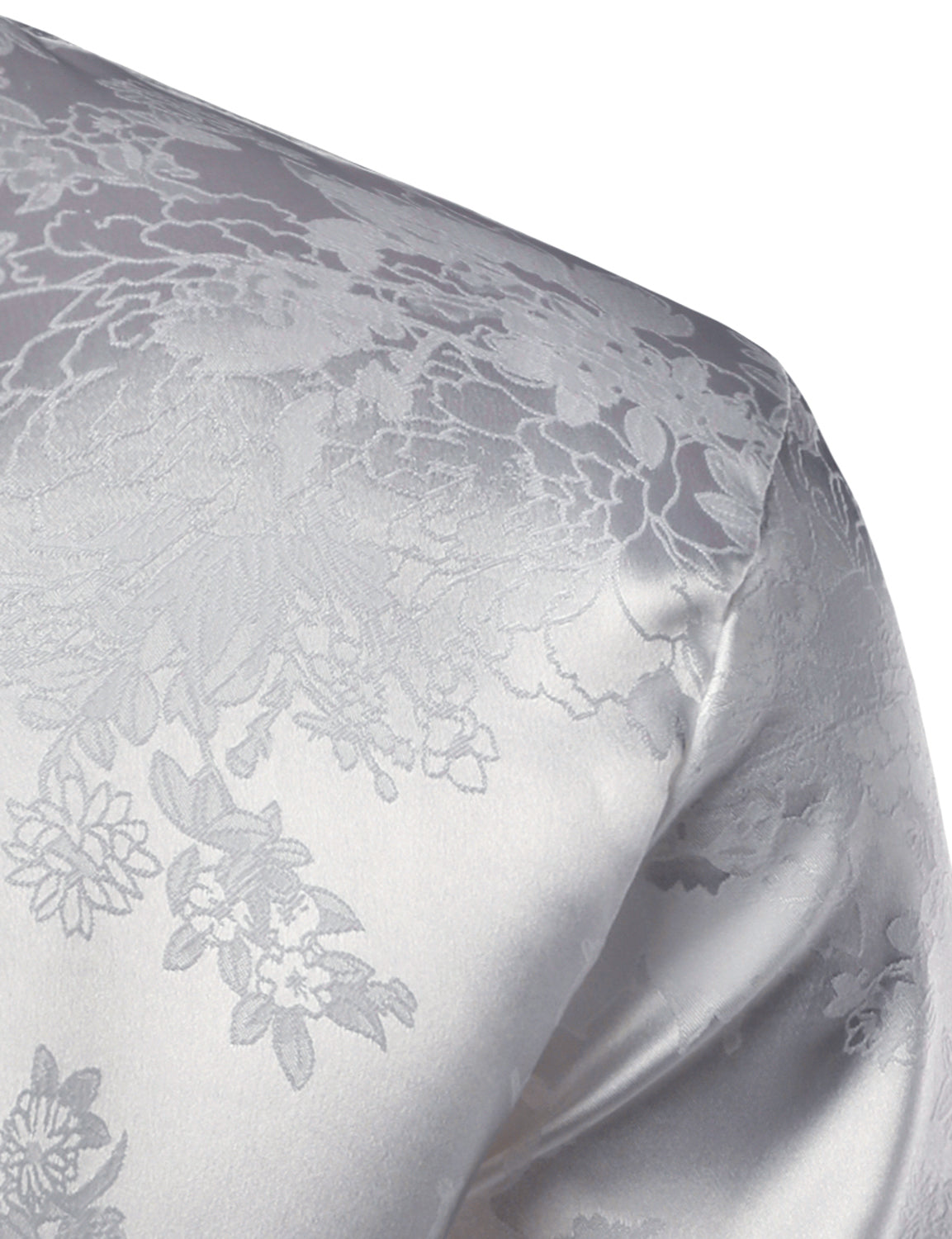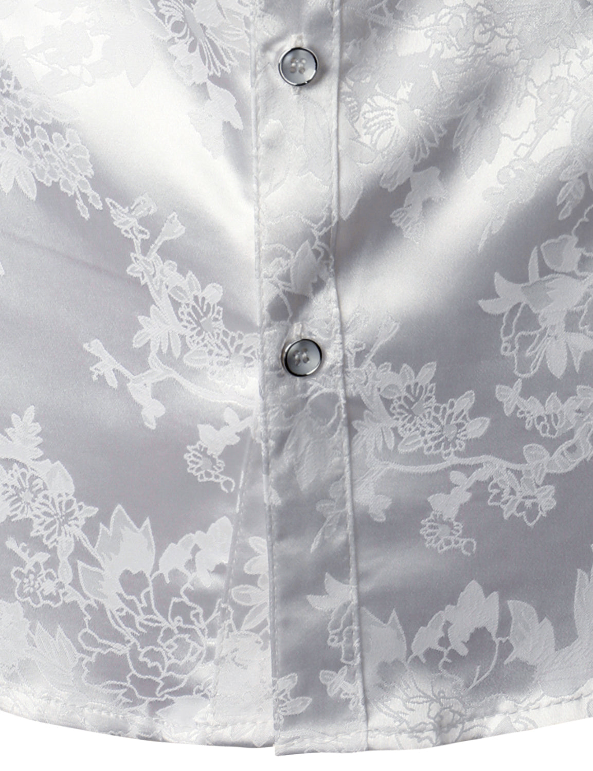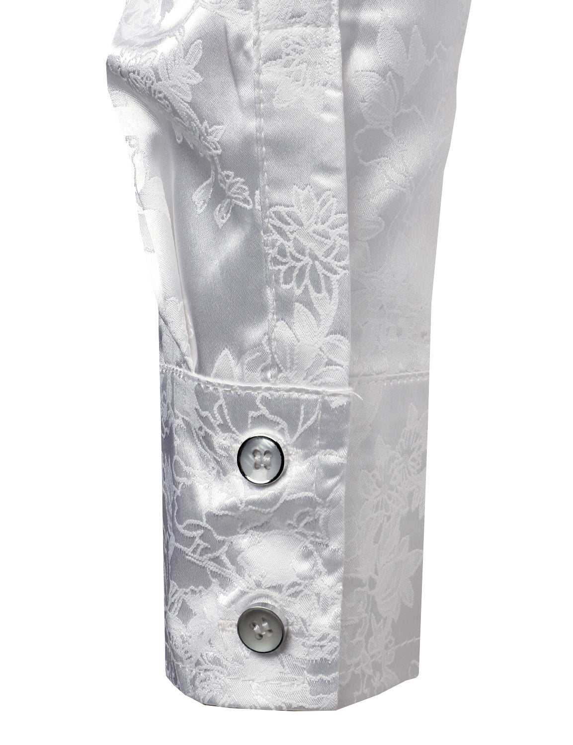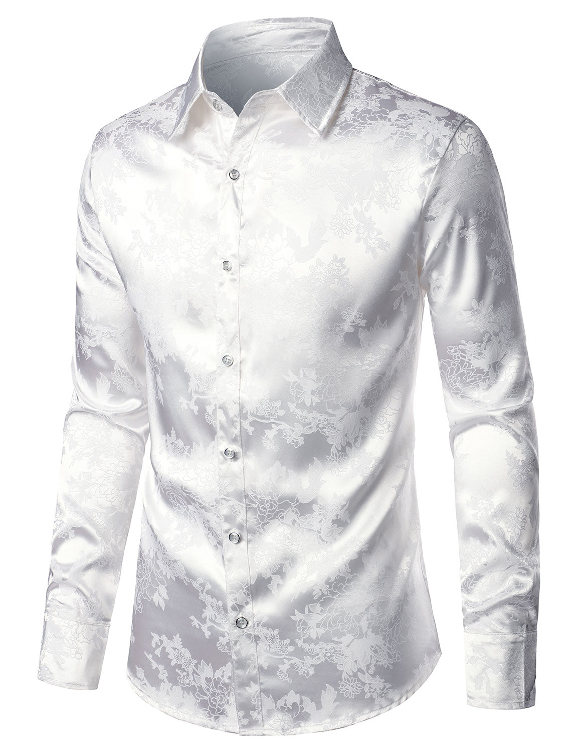 Herren Langärmliges Jacquard Hemd aus glänzendem Satin Weiß