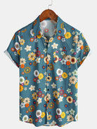 Herren Baumwolle Hawaii-Kurzarmhemd mit Blumenmuster