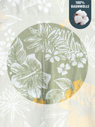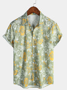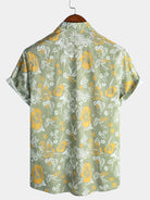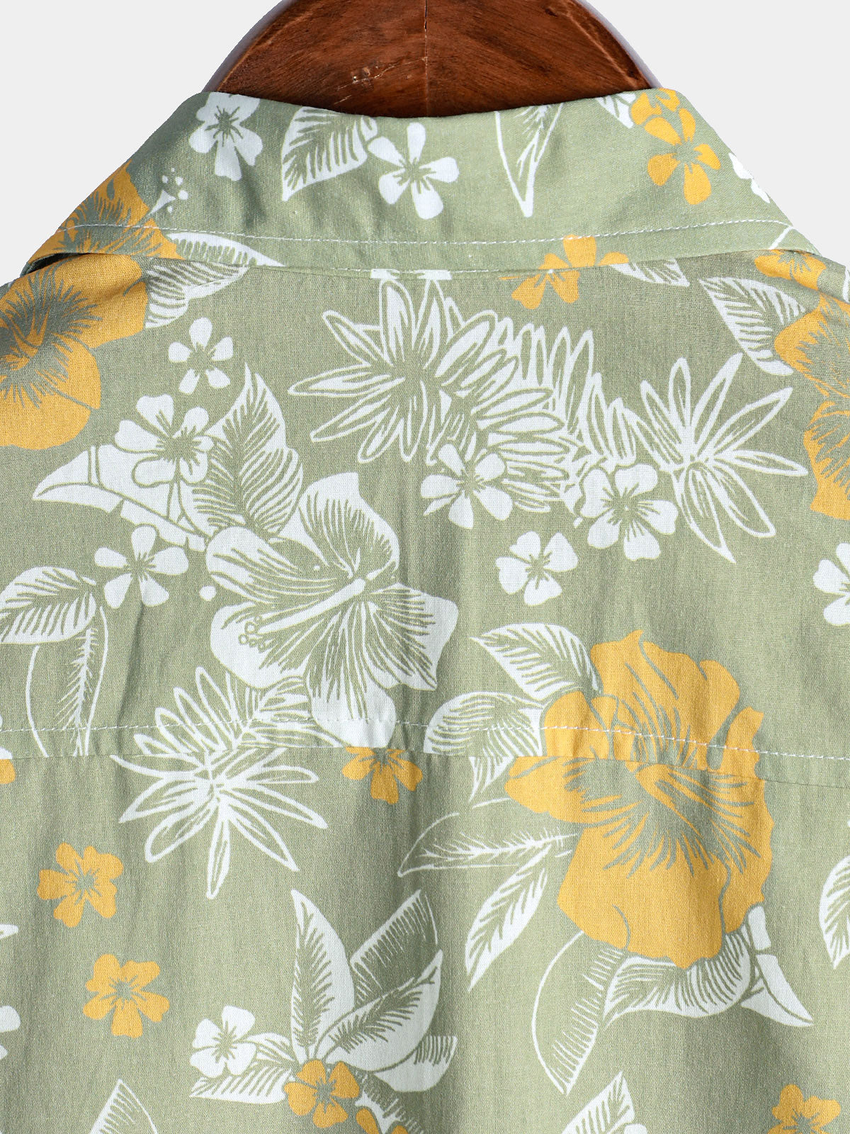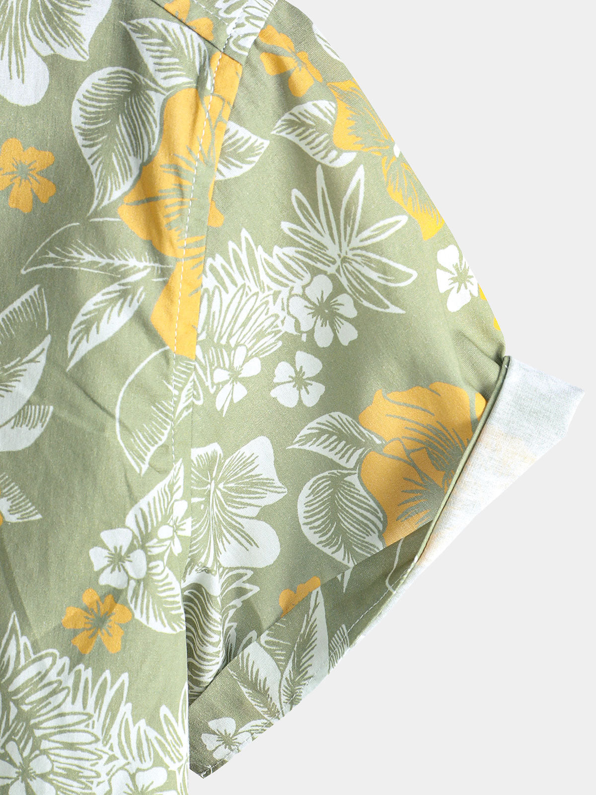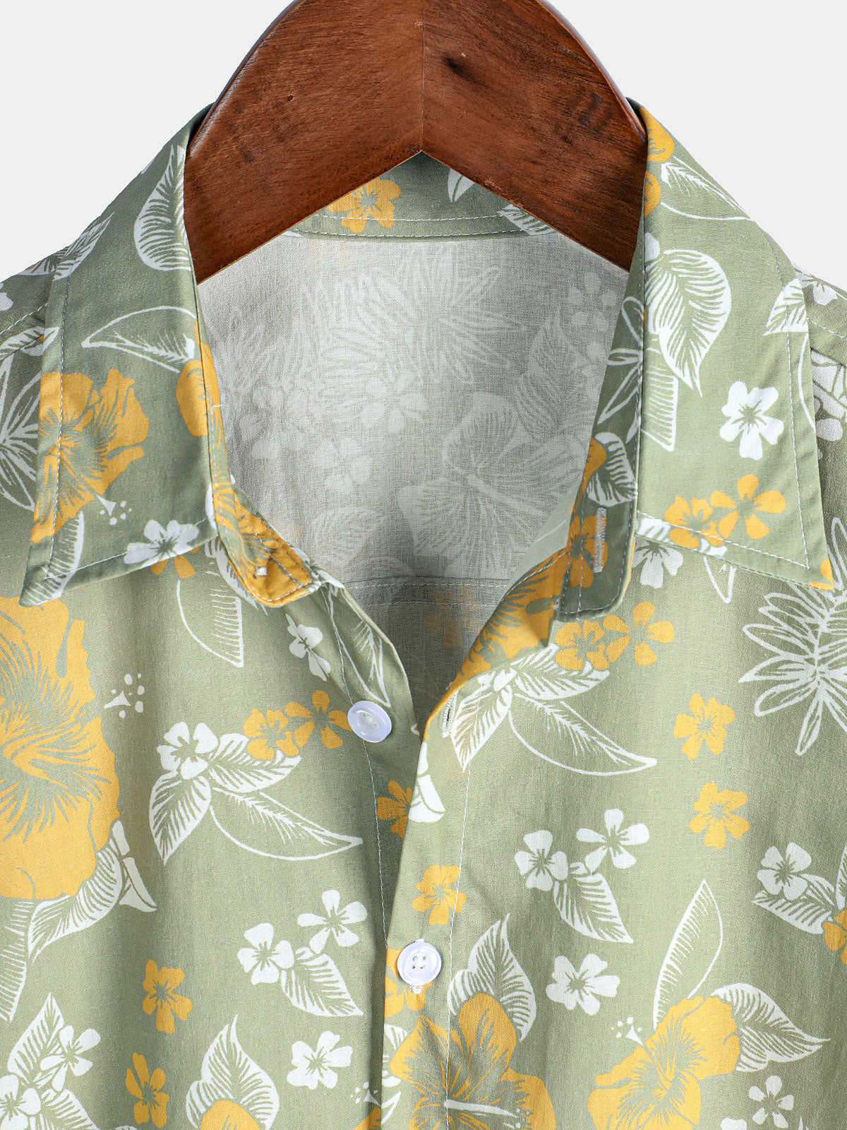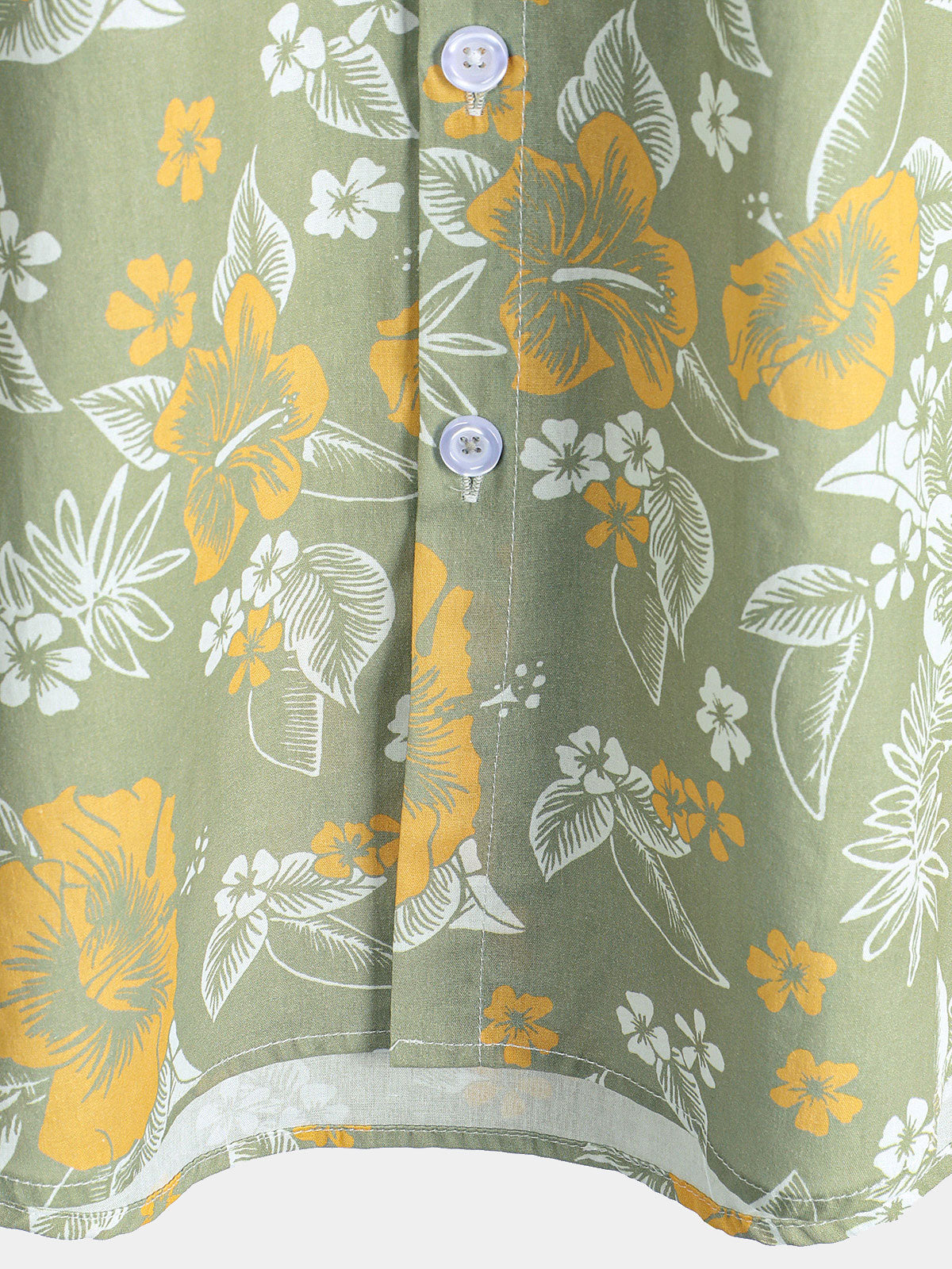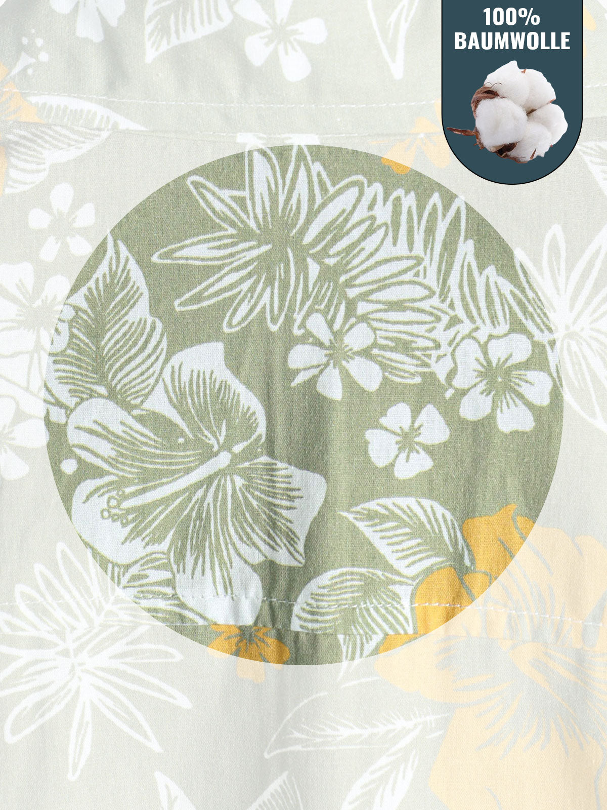 Herren Grünes Baumwolle Blumendruck Hawaii-Kurzarmhemd