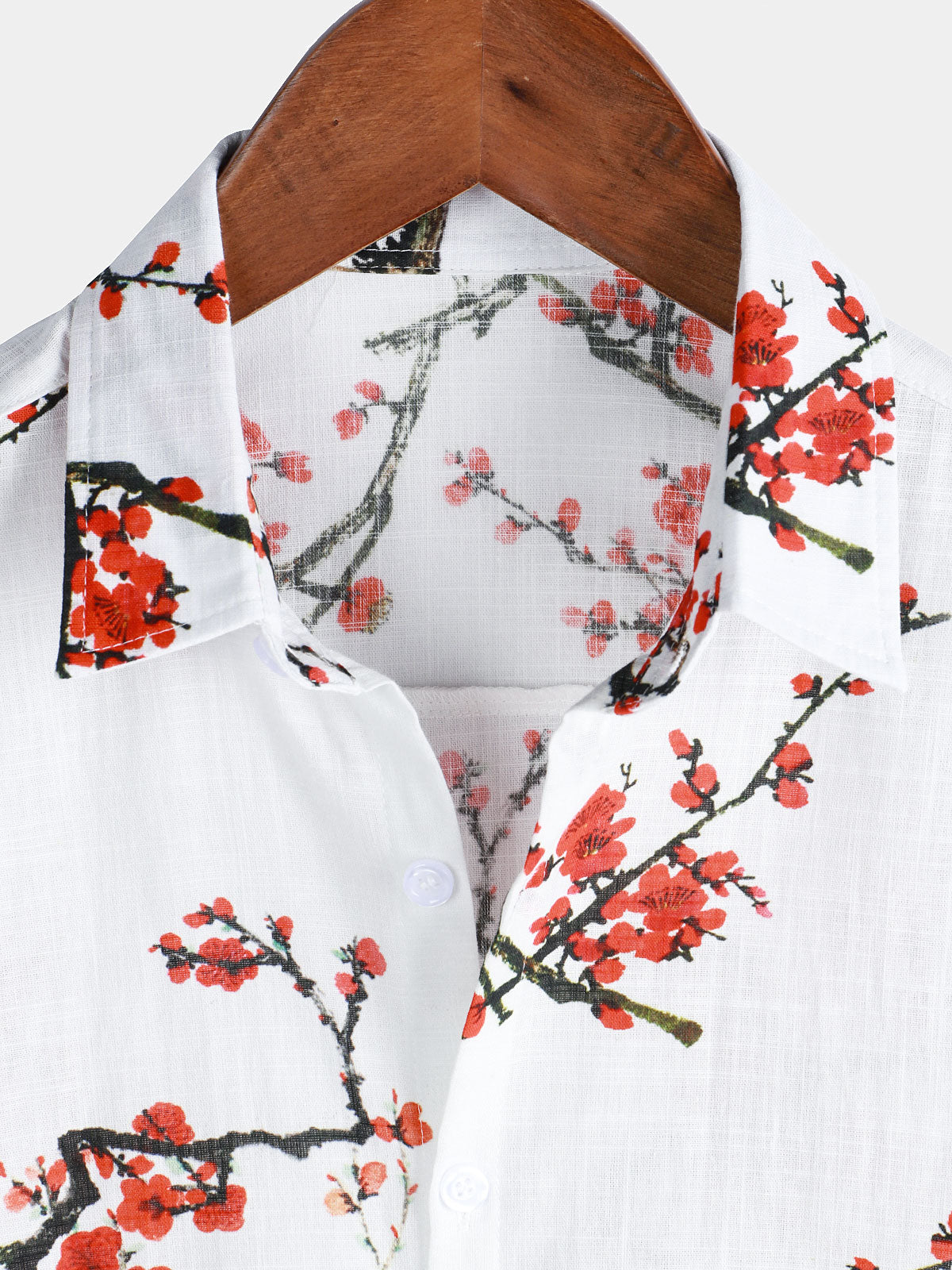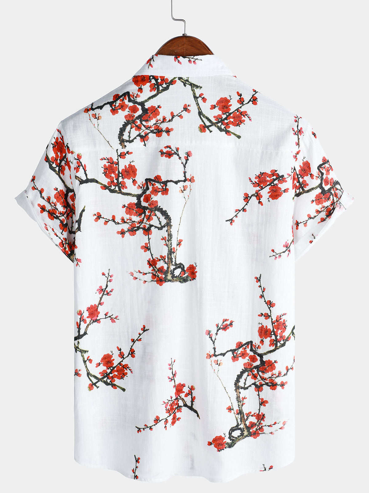 Herren Kurzarm-Sommerhemd aus Baumwolle mit Blumenmuster