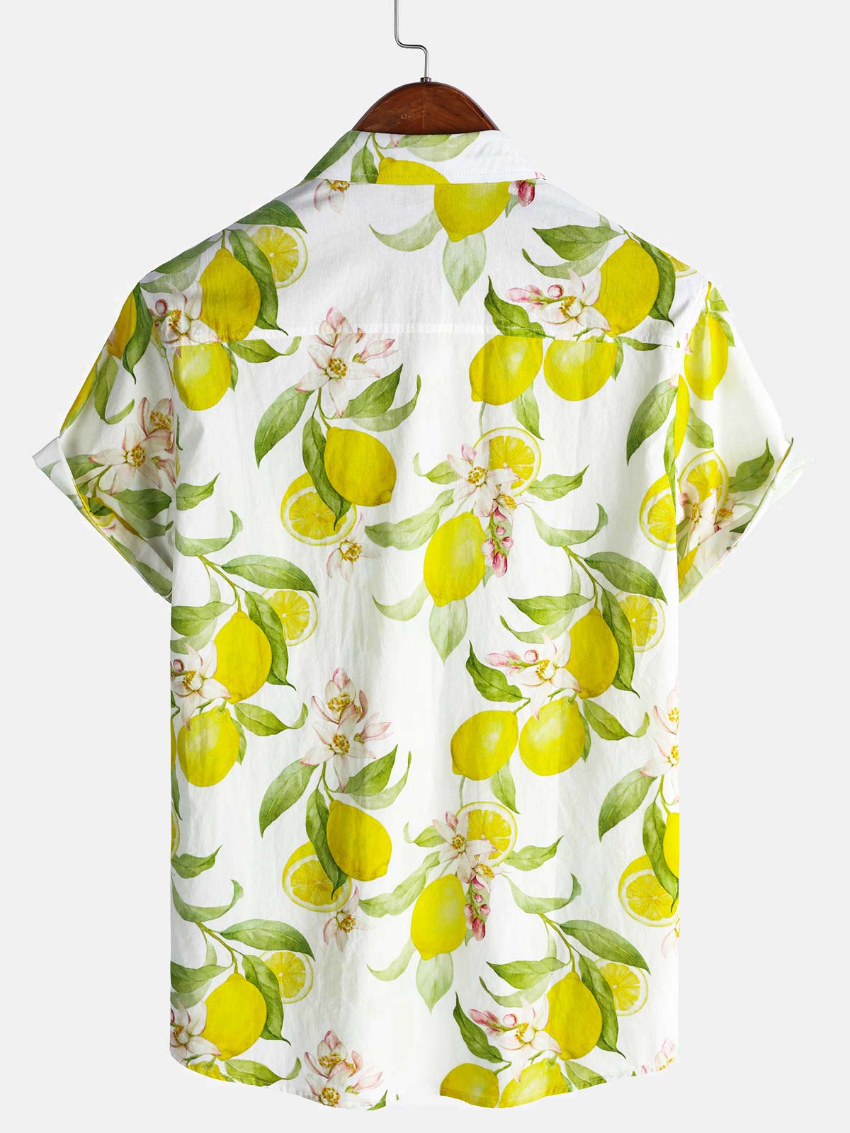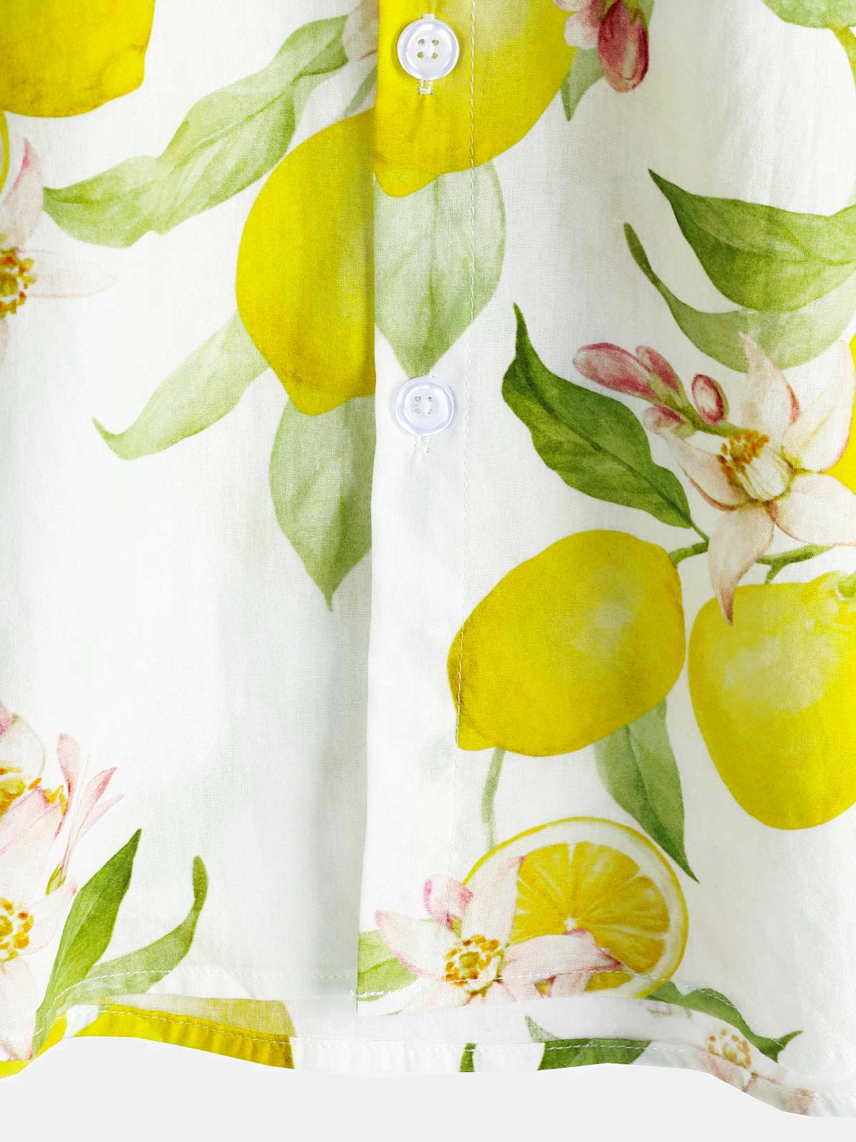 Herren Baumwolle Sommer-Kurzarmhemd mit Zitronen-Print