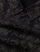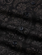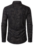 Herren Paisley Geblümt Langarm Hemd Schwarz