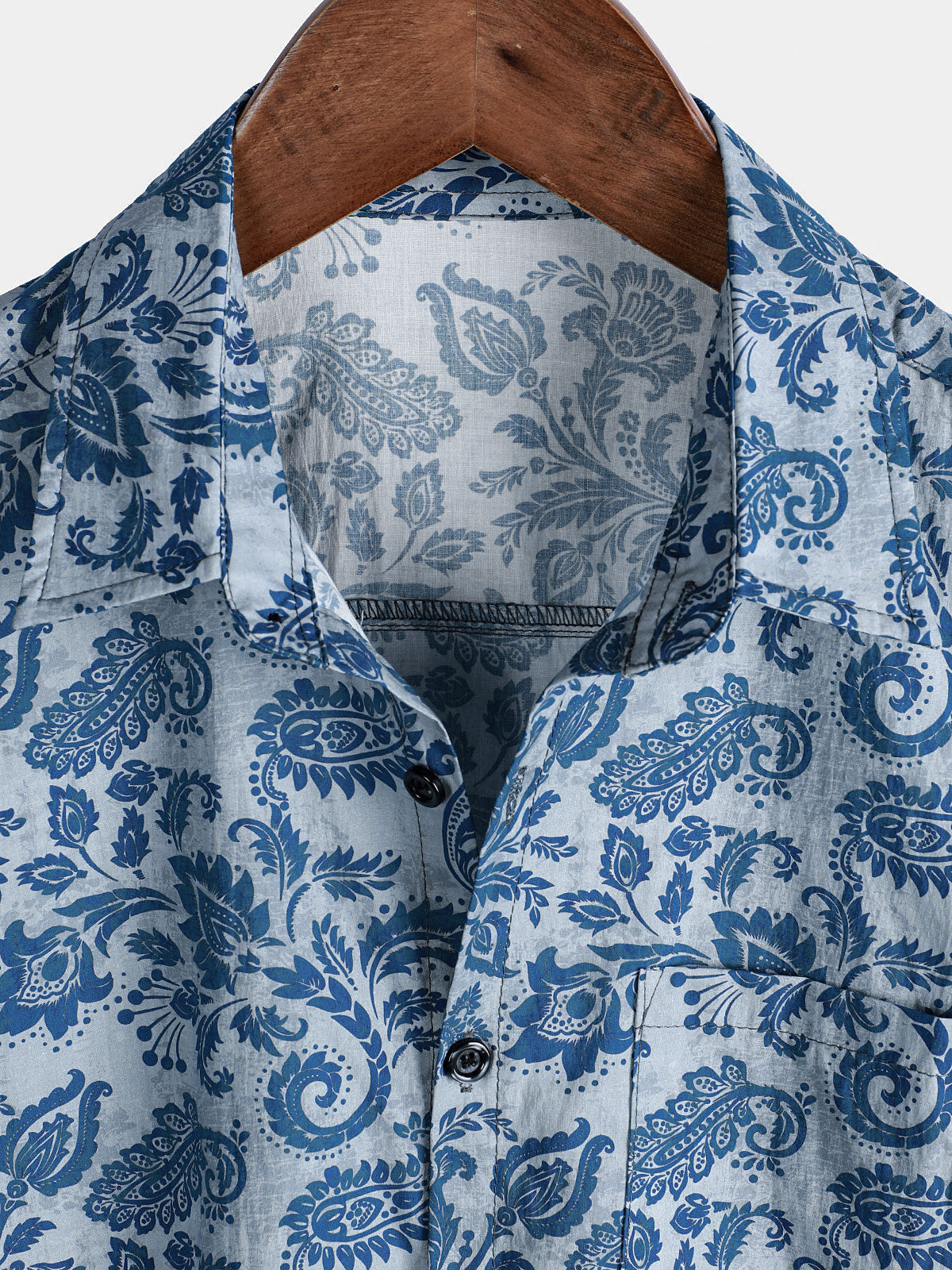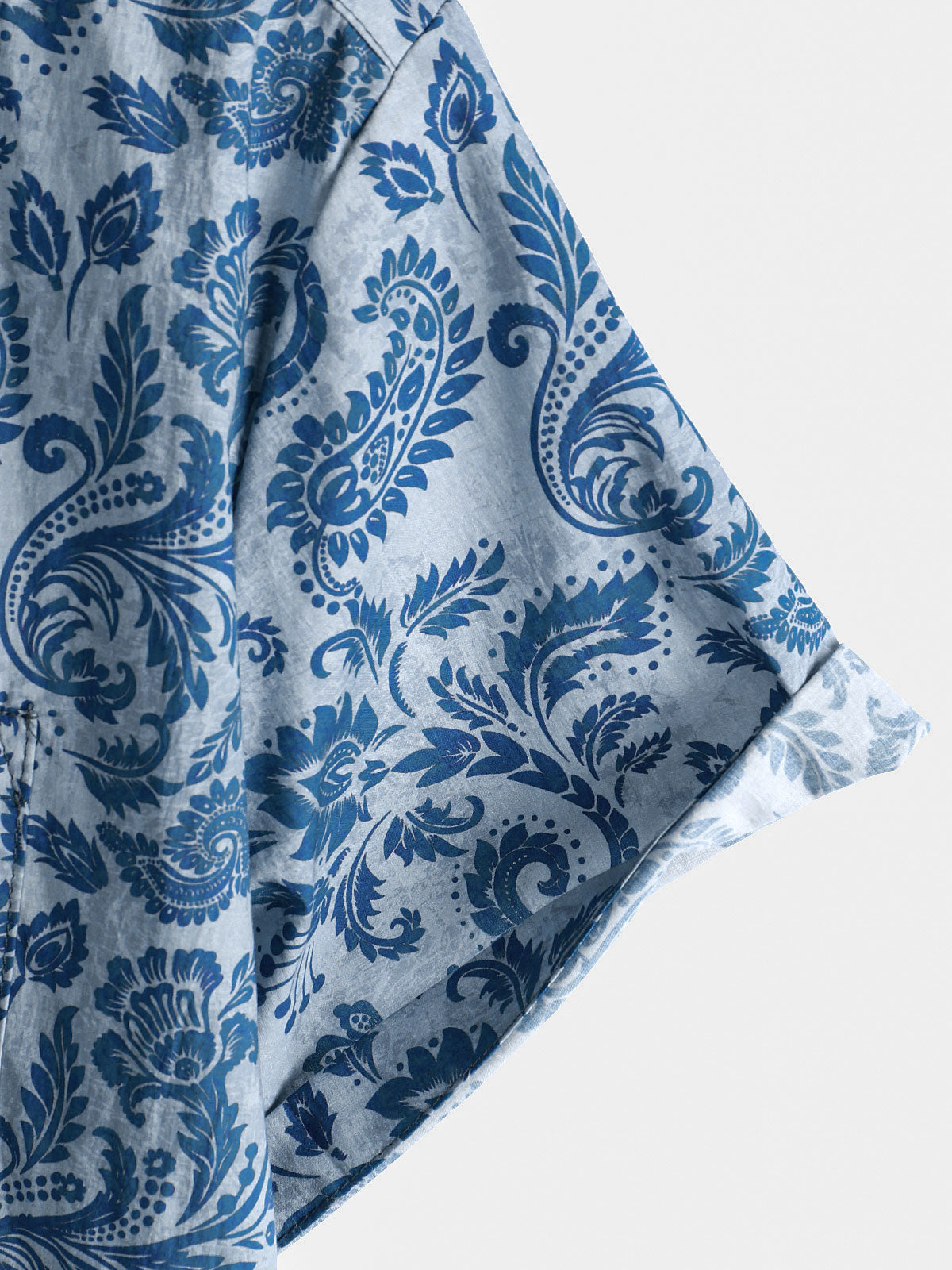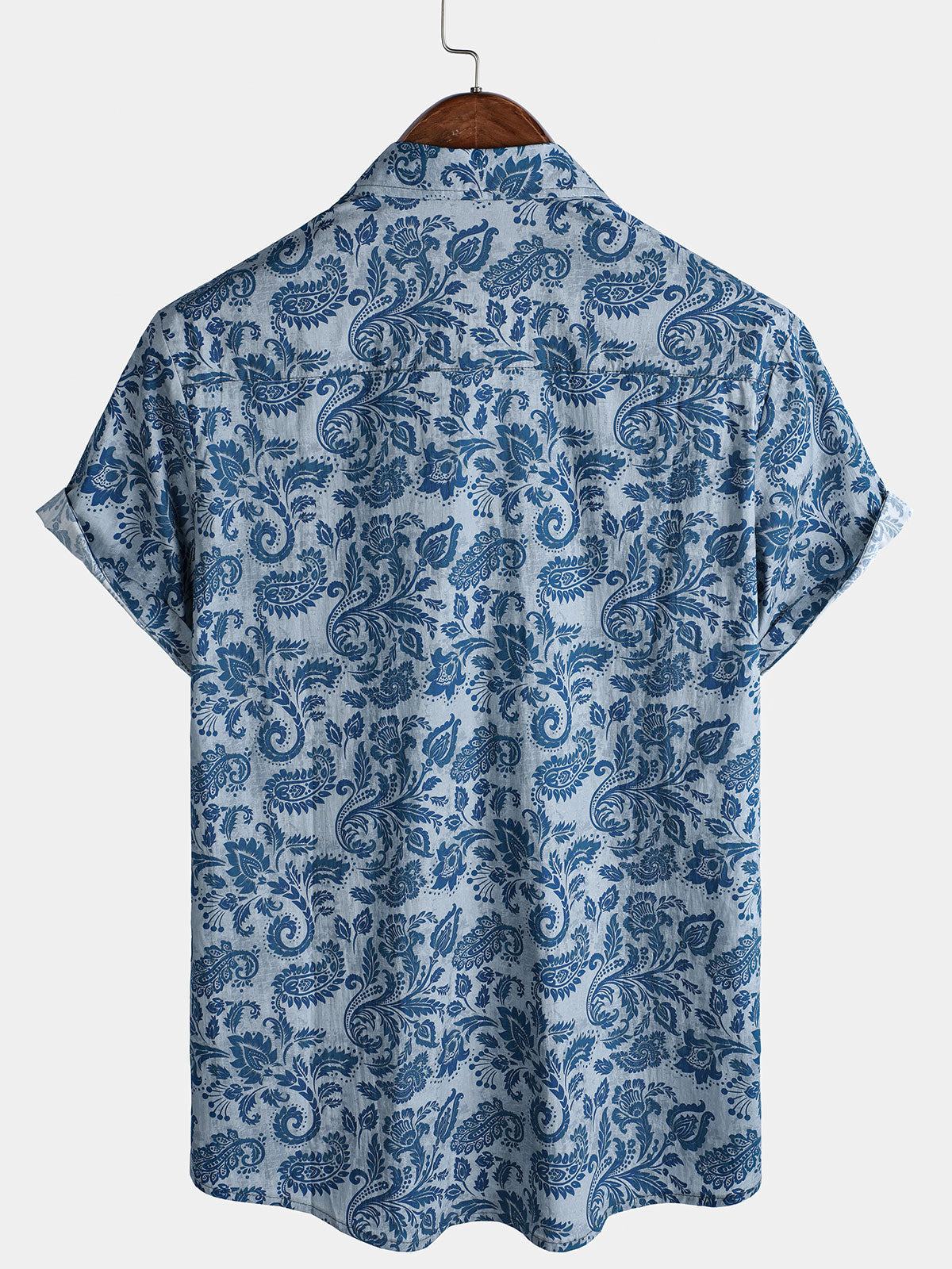Herren Baumwolle Lässiges Kurzarmhemd mit Paisley-Blumenmuster