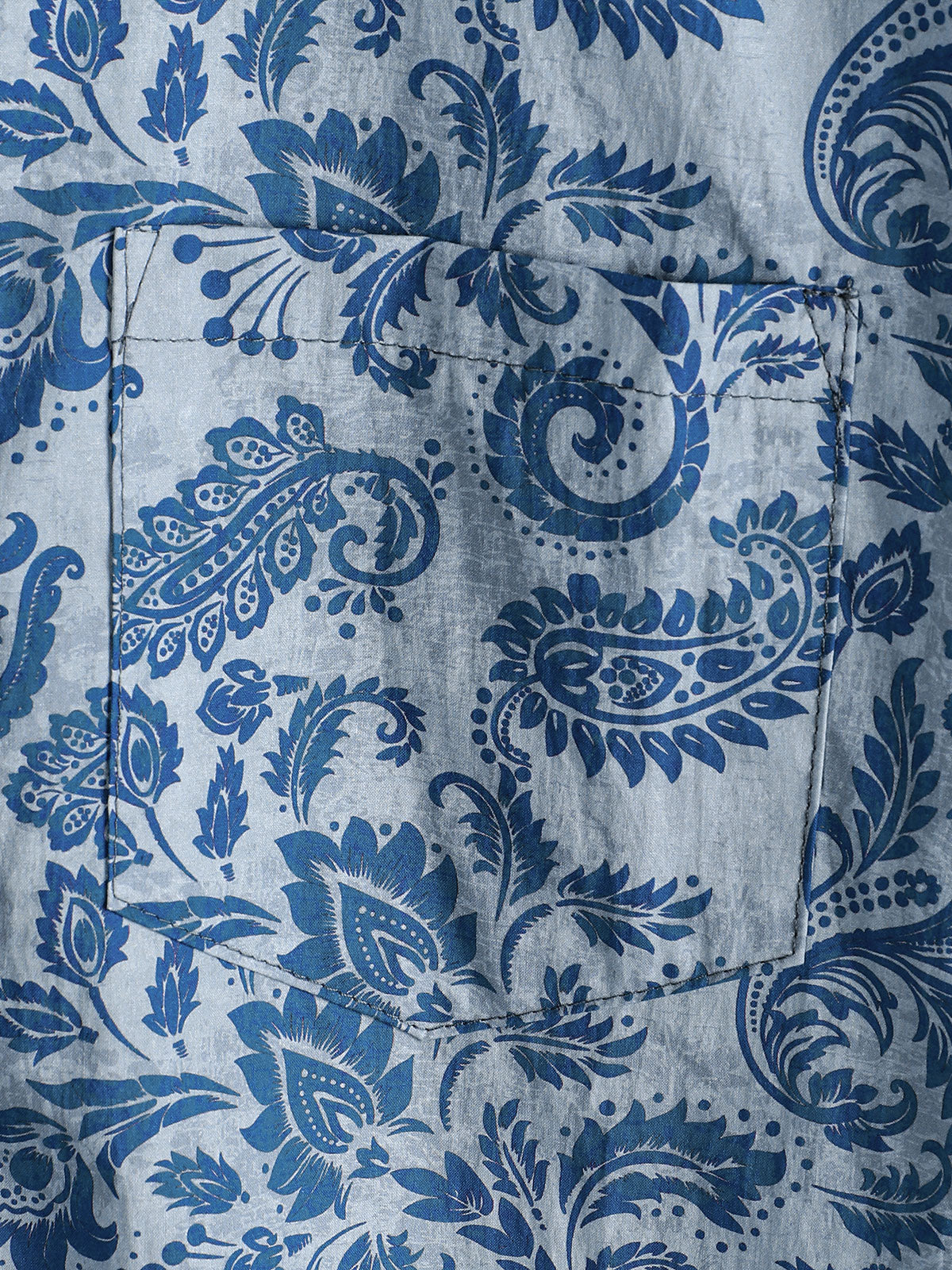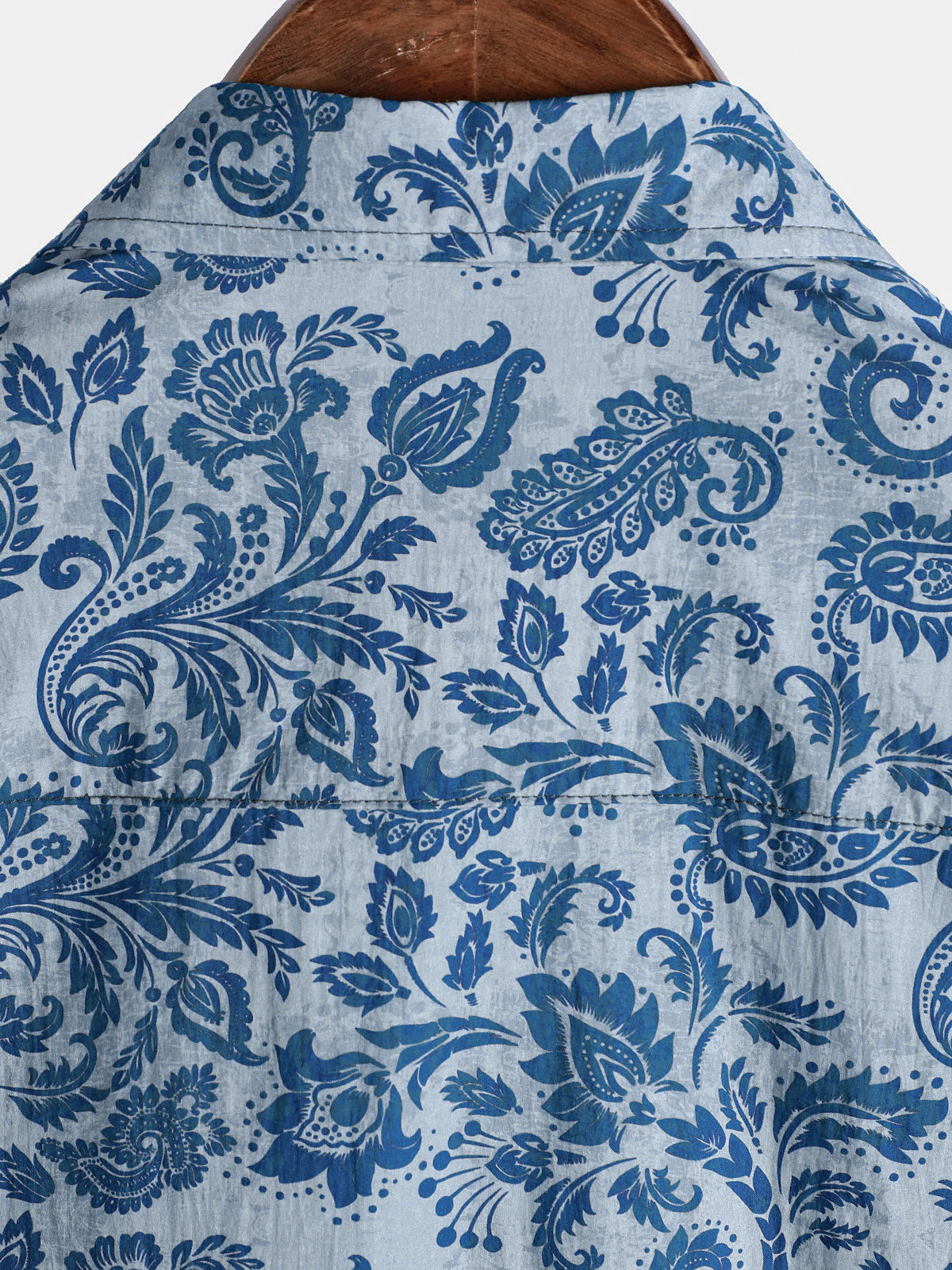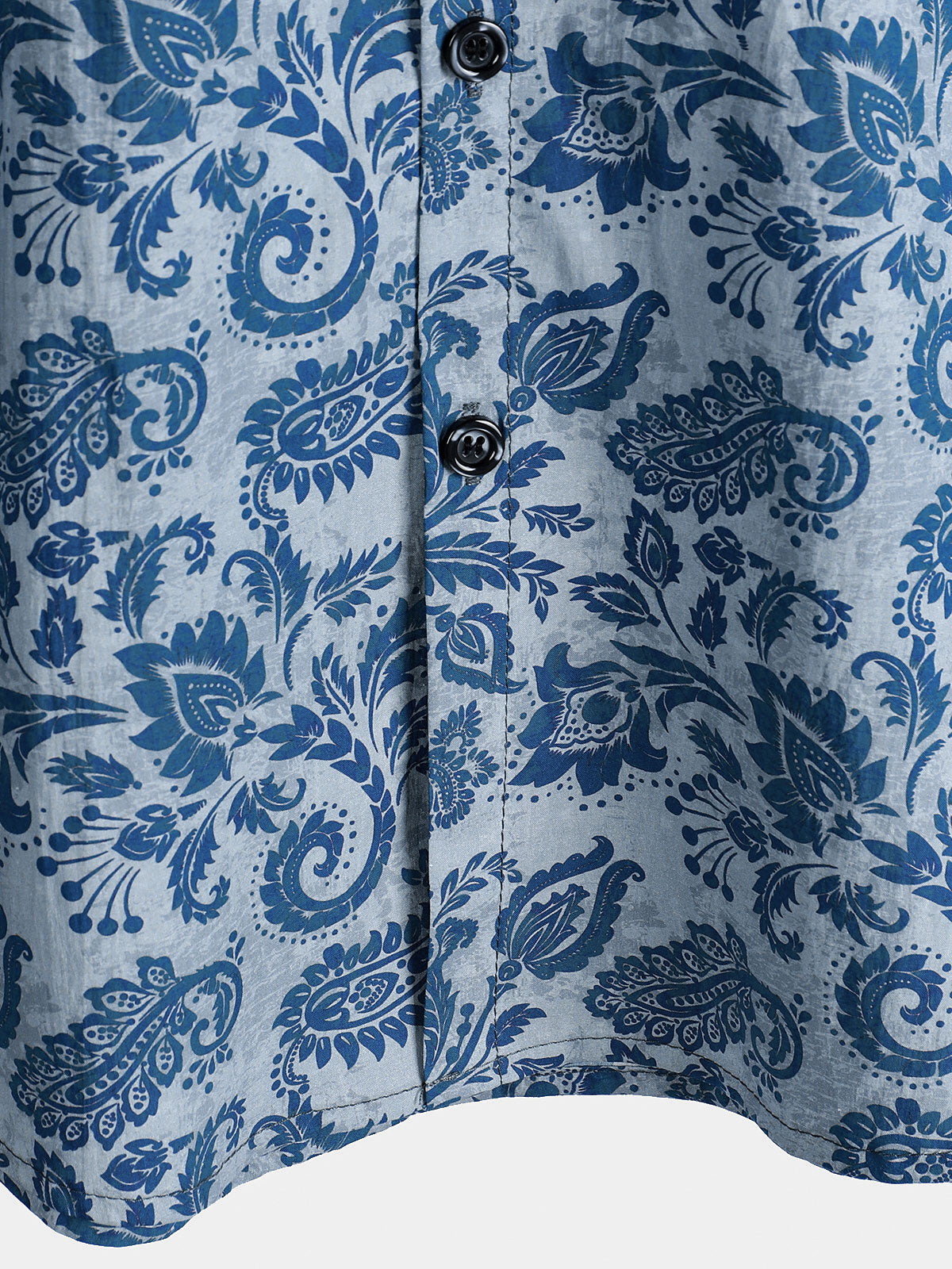 Herren Baumwolle Lässiges Kurzarmhemd mit Paisley-Blumenmuster