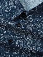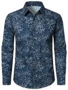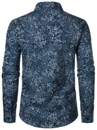 Herren Paisley Geblümt Baumwolle Langarm Hemd Blau