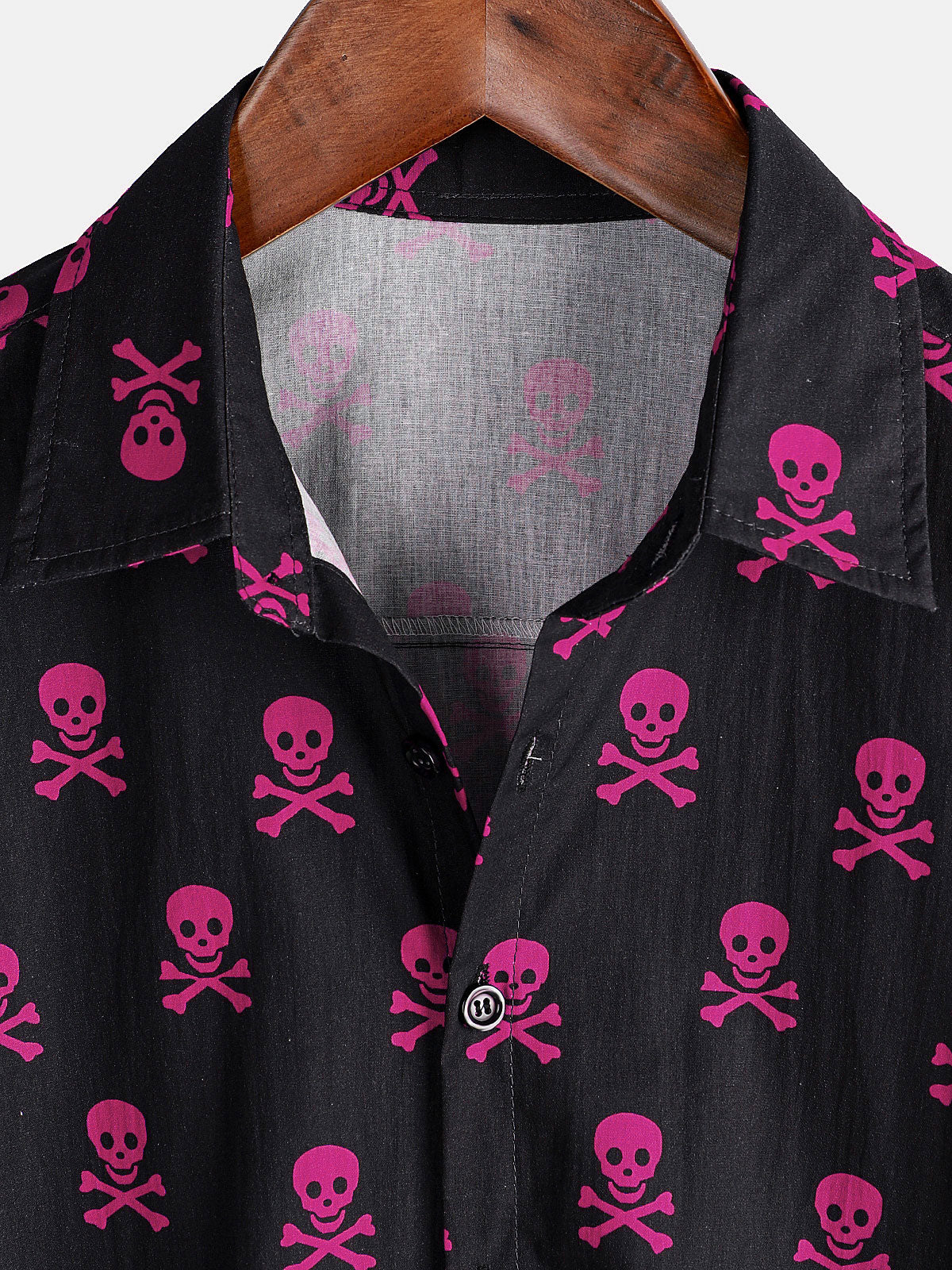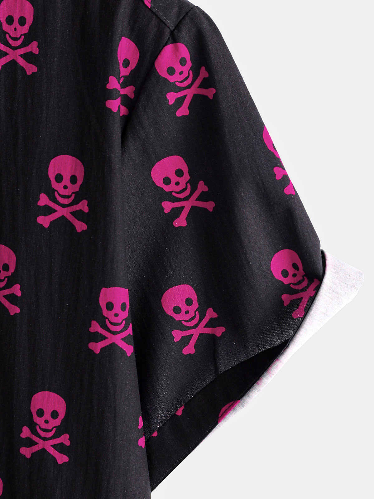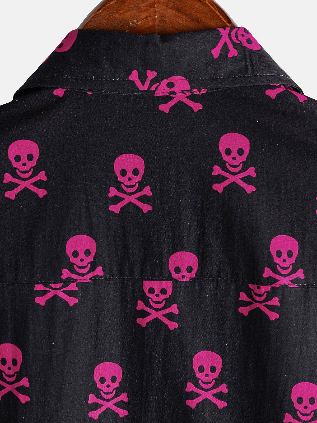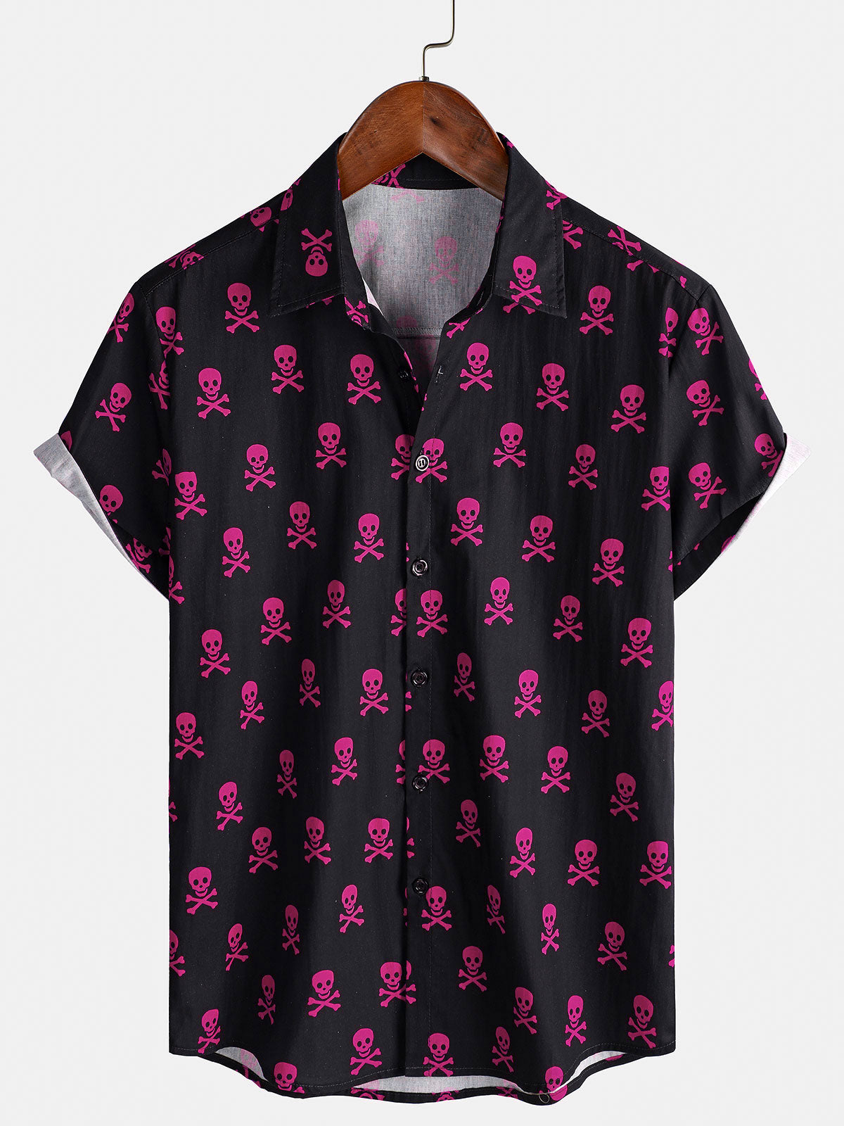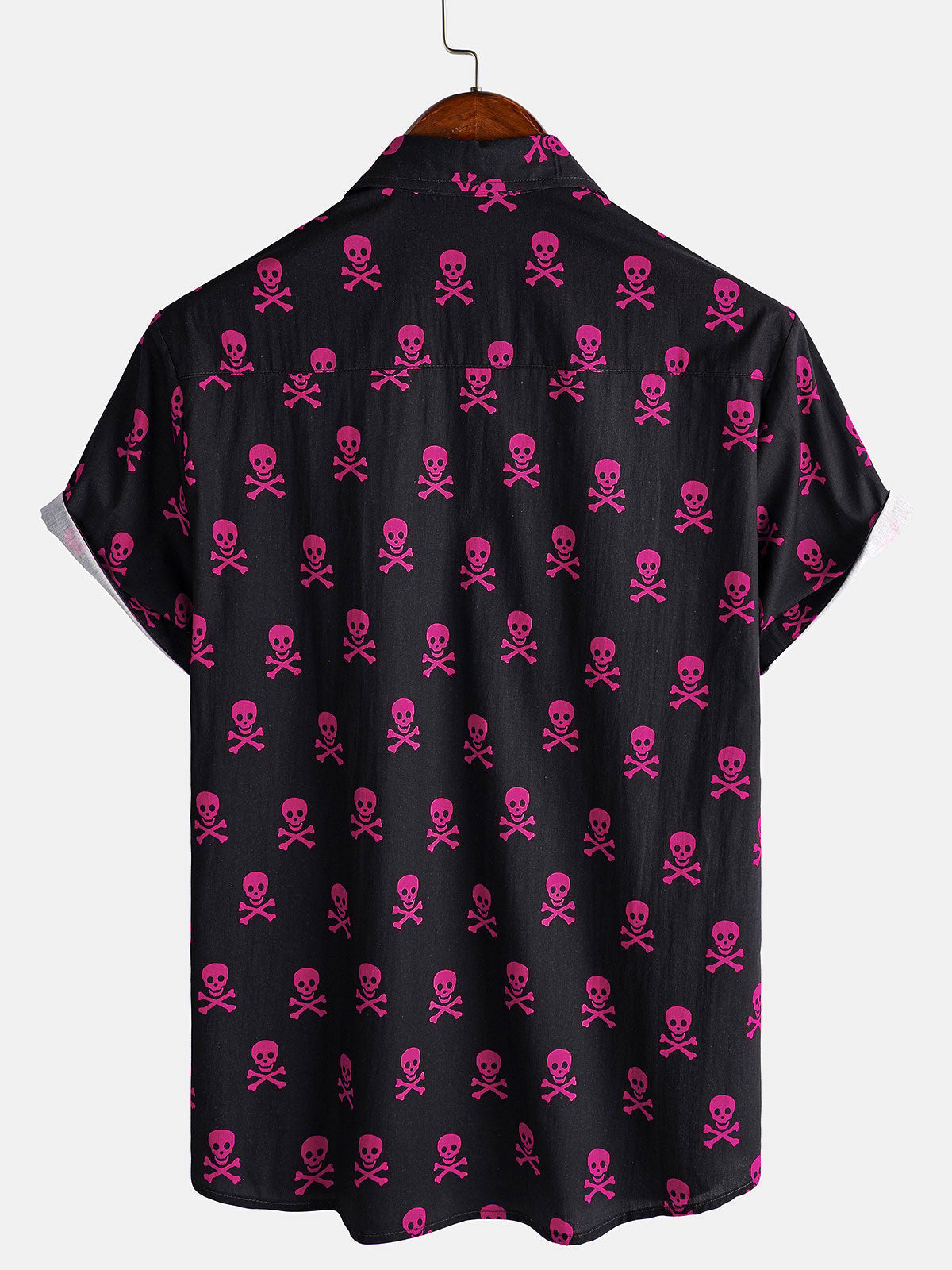 Herren kurzärmliges Baumwolle Totenkopf Hemd