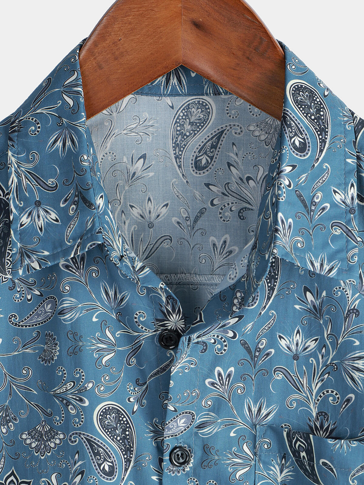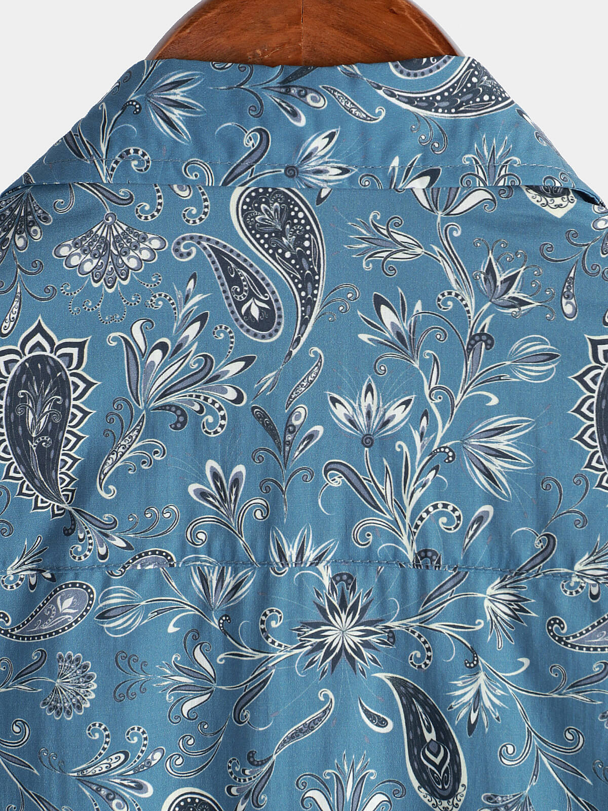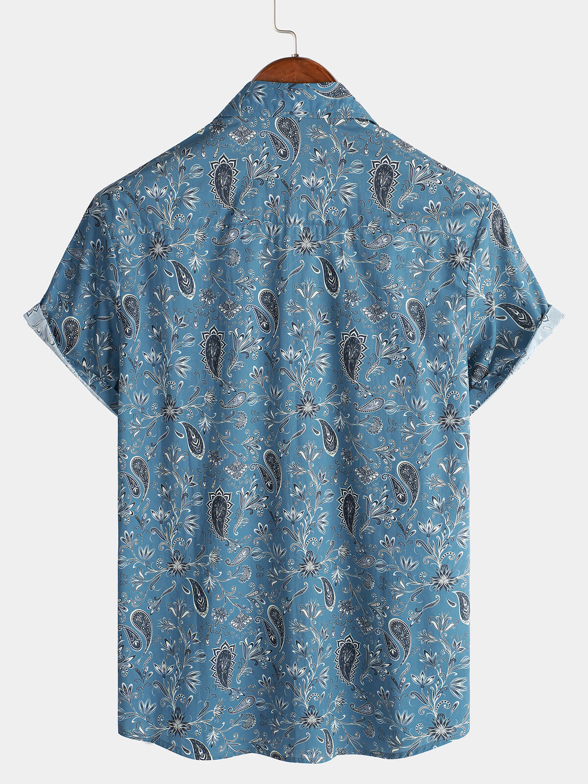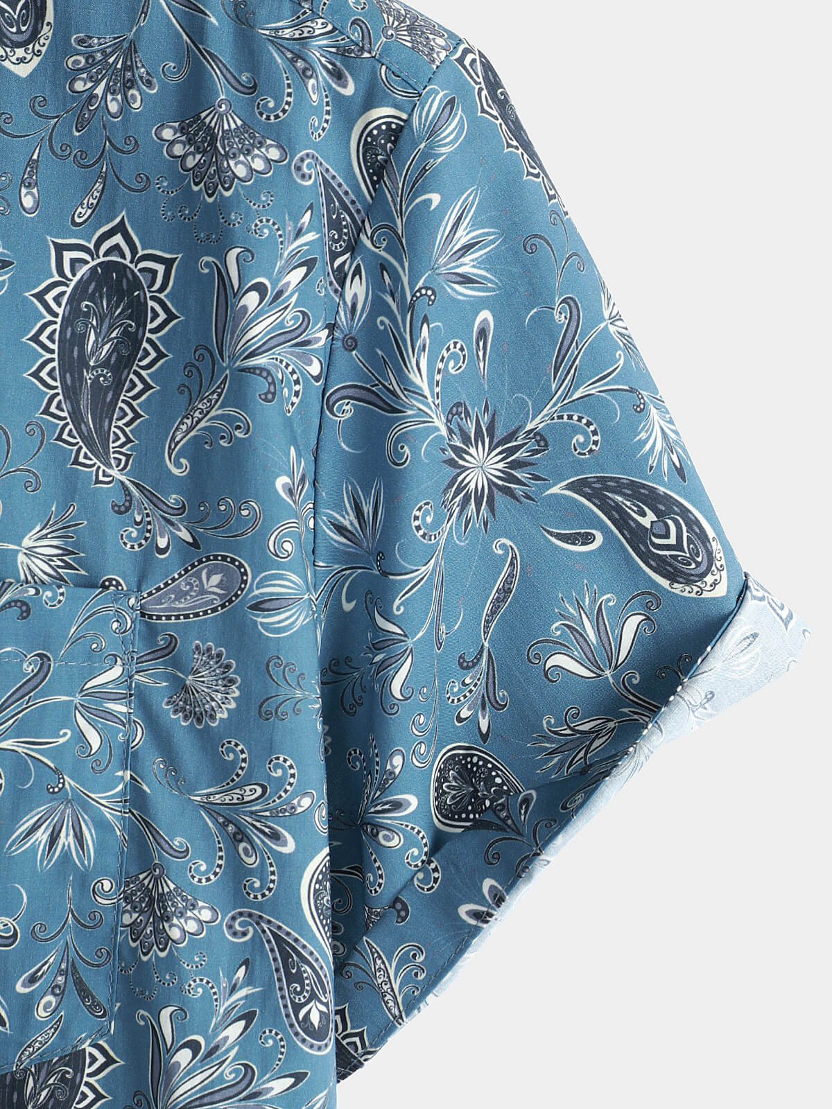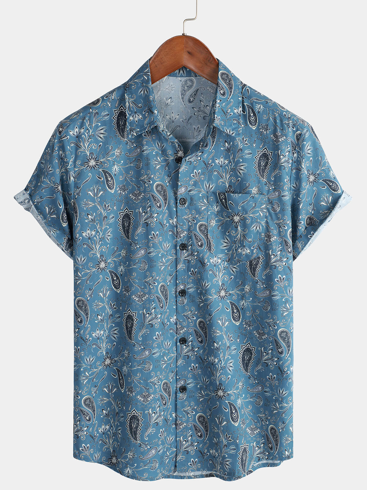 Herren Kurzärmliges Hawaii-Hemd mit Paisley-Blumenmuster
