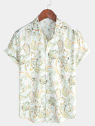 Herrenhemd Kurzärmliges weißes Paisley-Blumenmuster