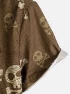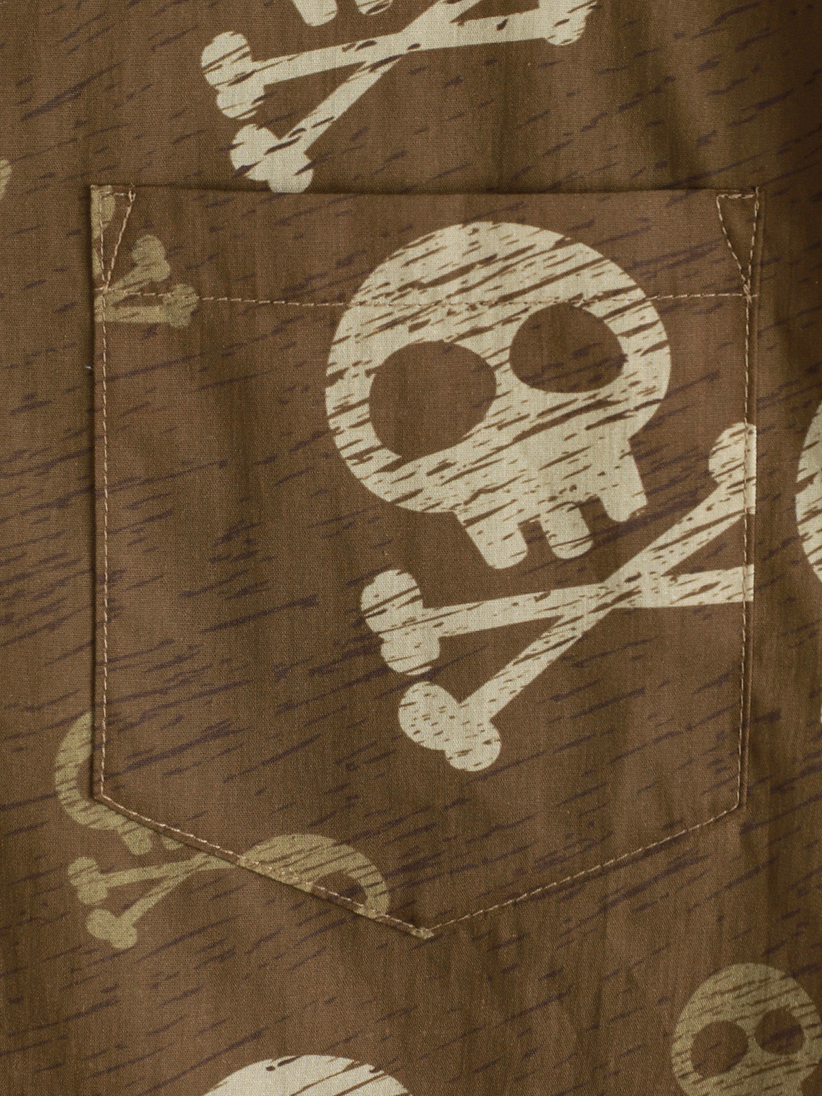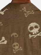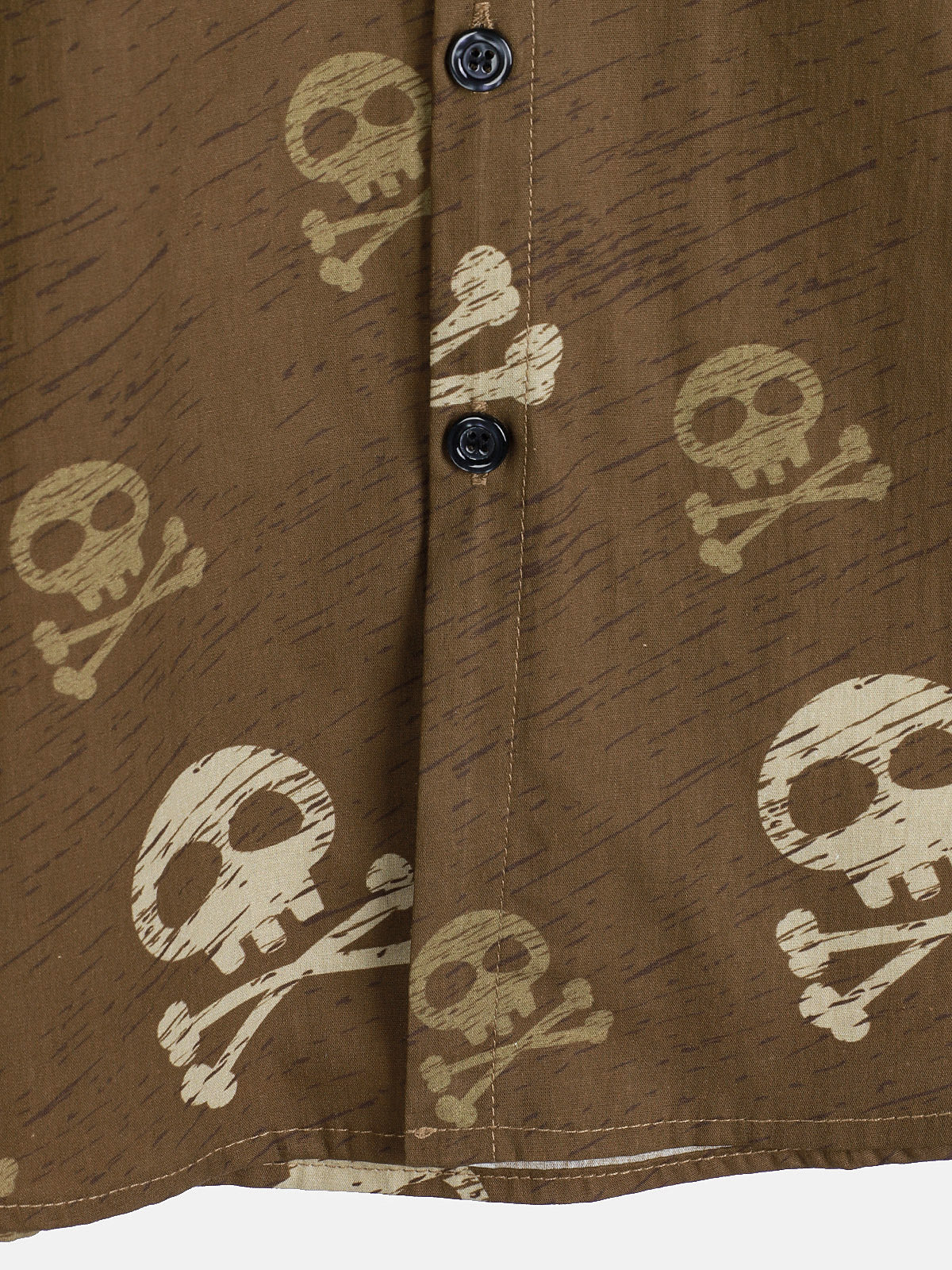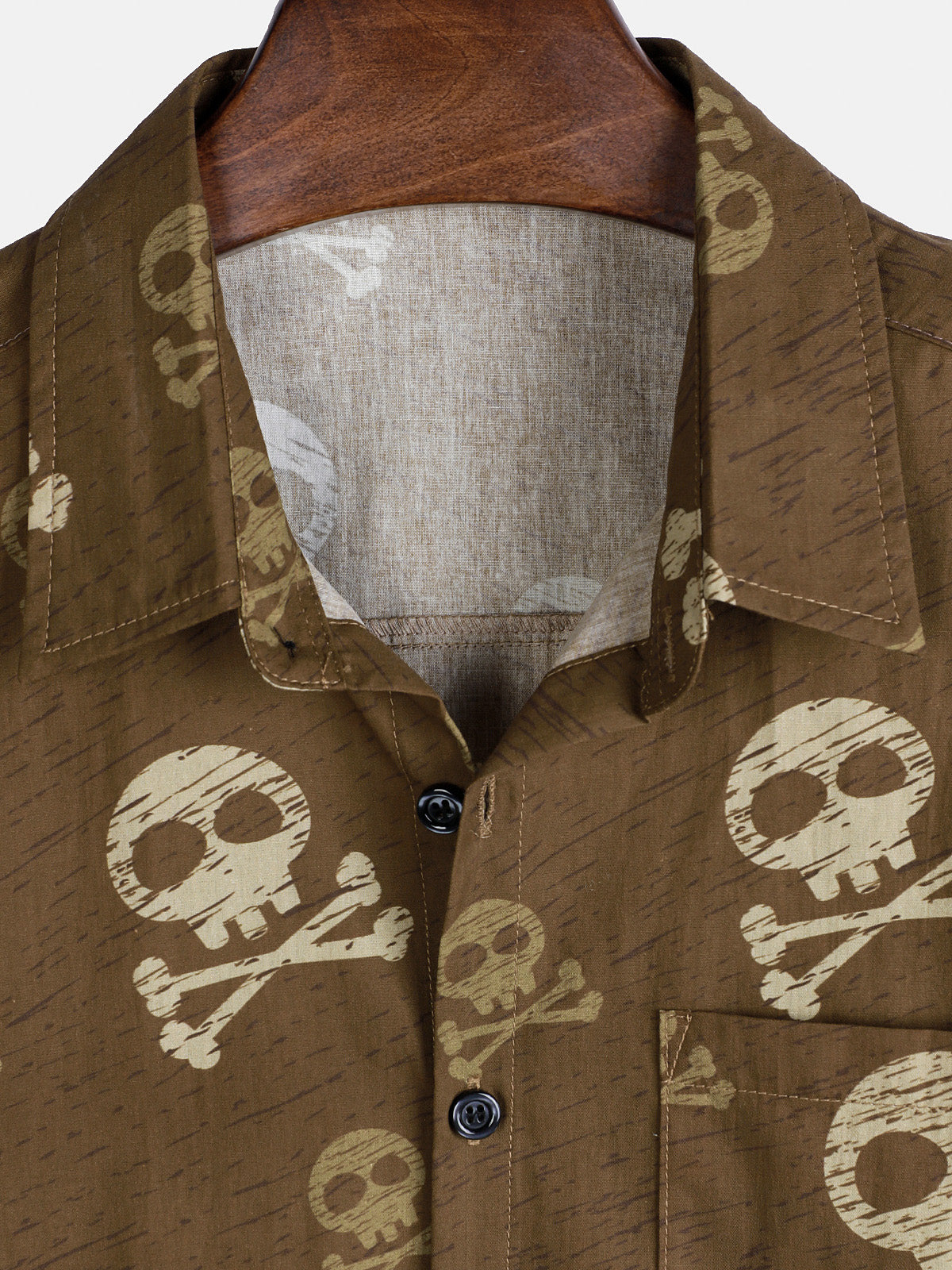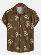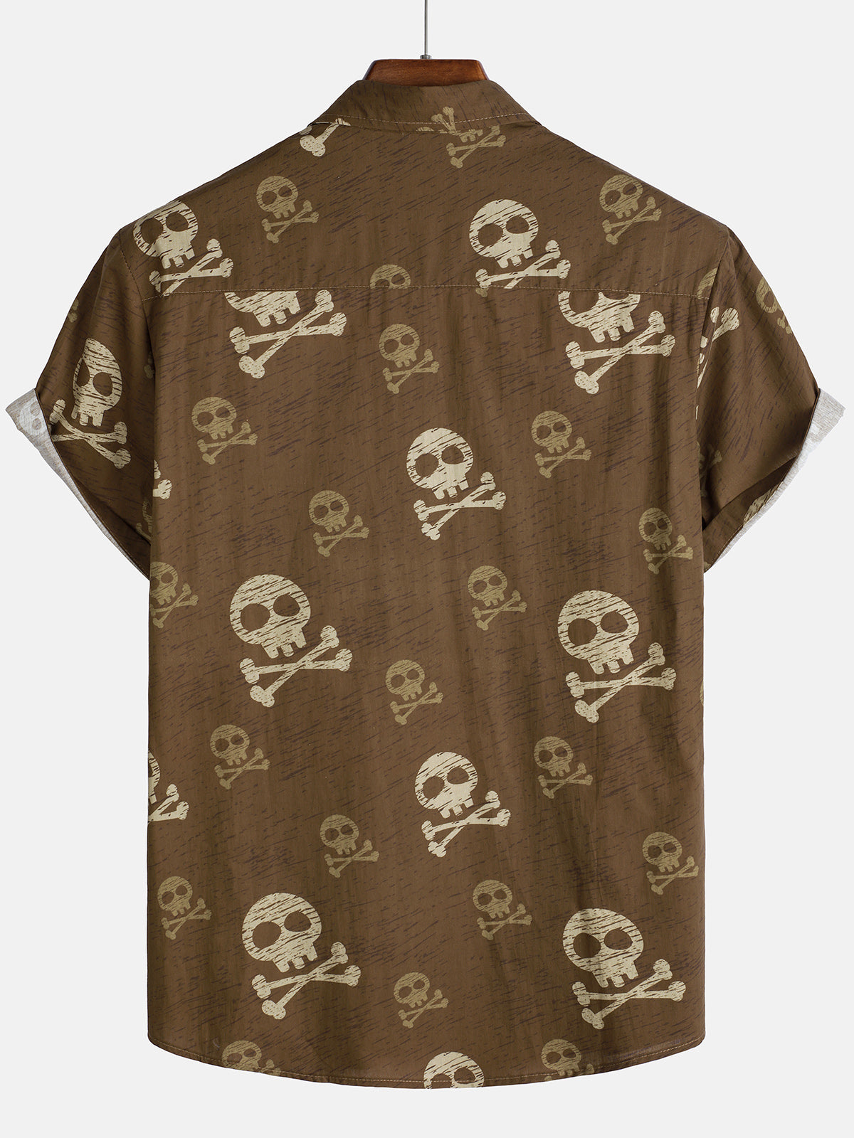 Herren Kurzarm Baumwolle Hemd mit Totenkopf-Print Braun