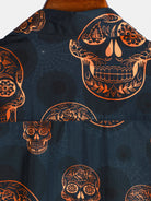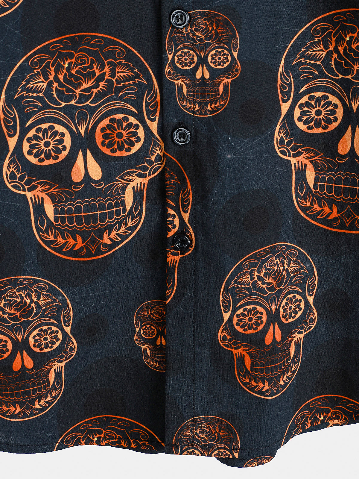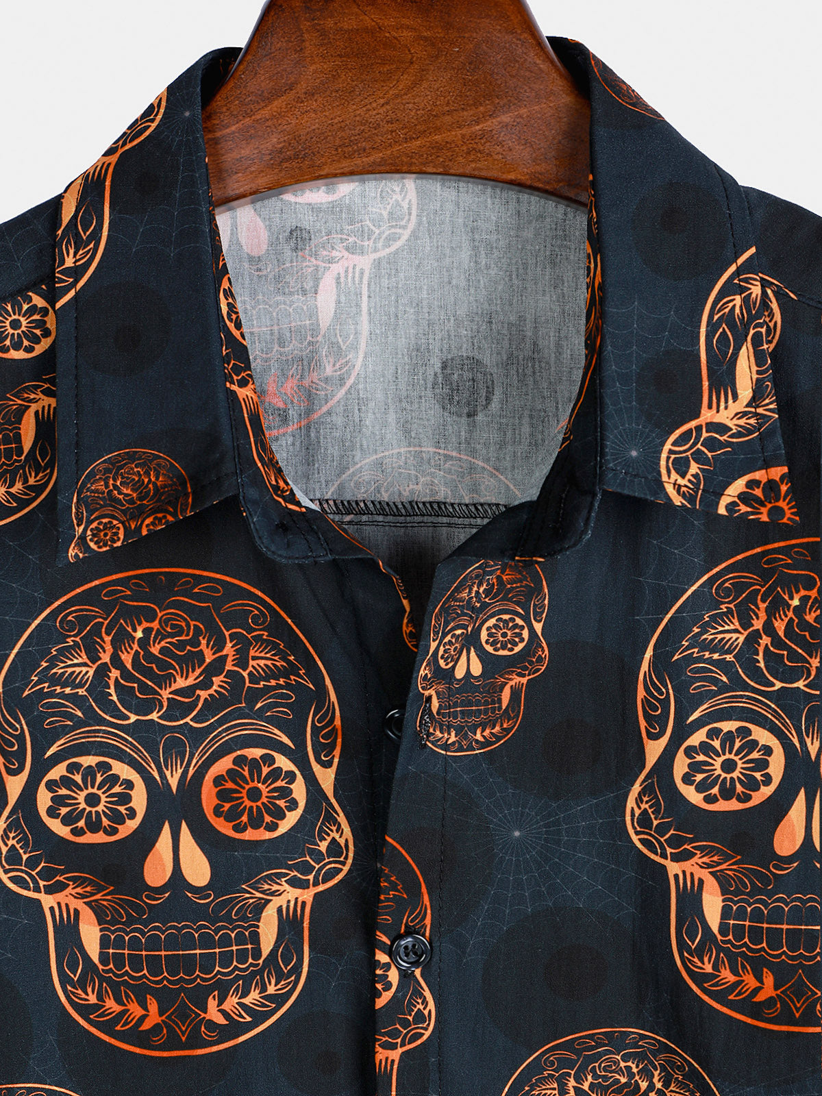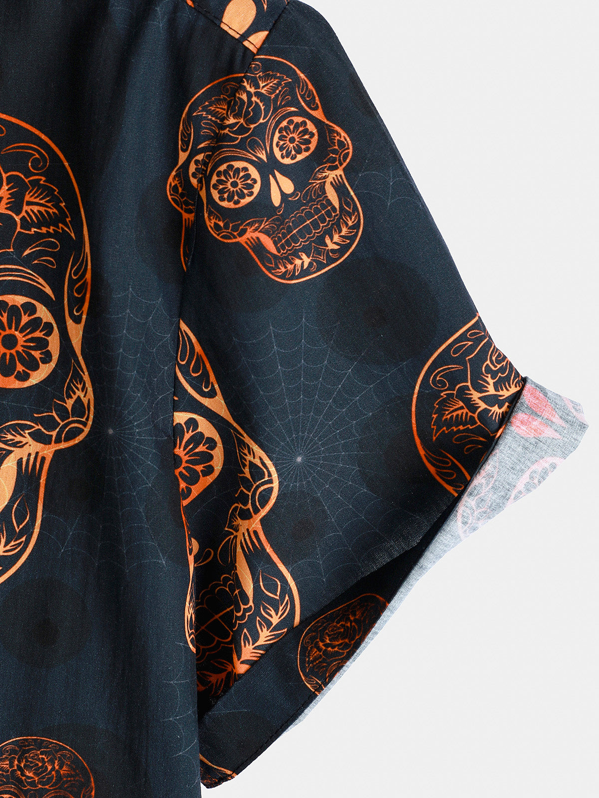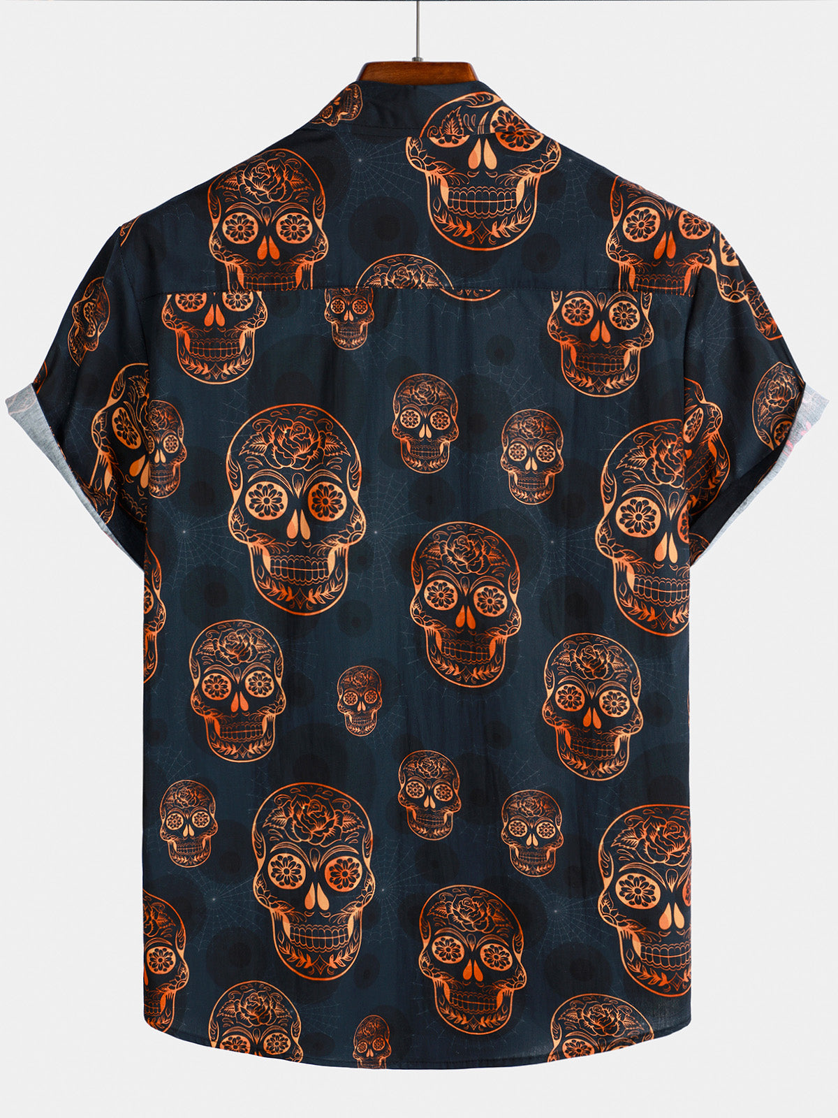 Herren Kurzarm Baumwolle Hemd mit Totenkopf-Print