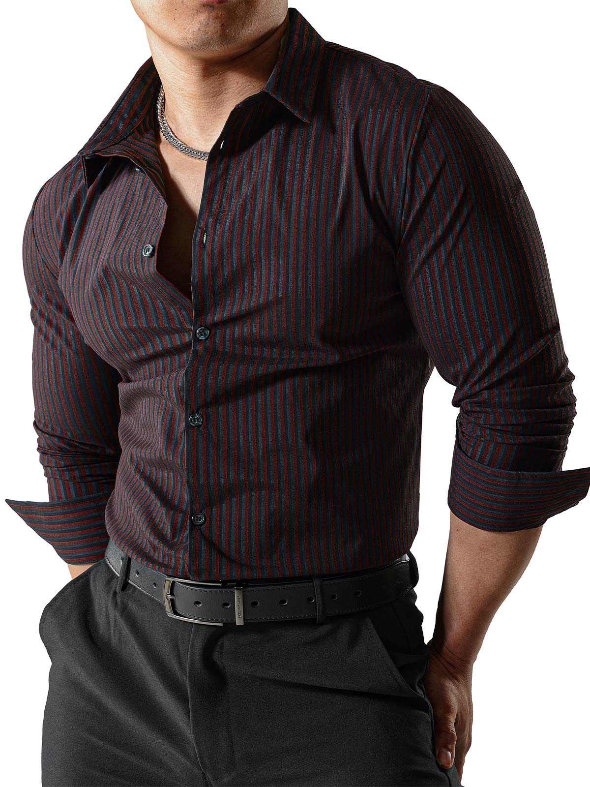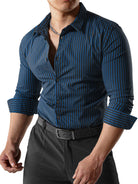 Herren Gestreifte, strukturierte, knitterfreie Langarm Hemden