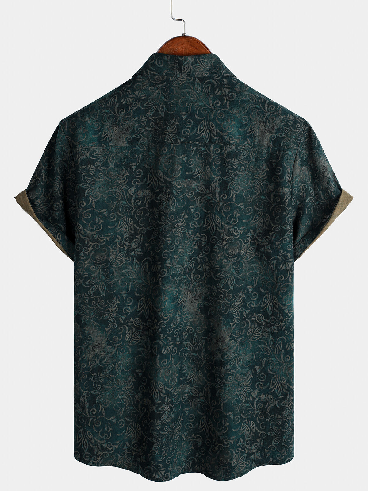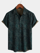 Herren Retro-Blumenmuster Kurzarm-Baumwollhemd