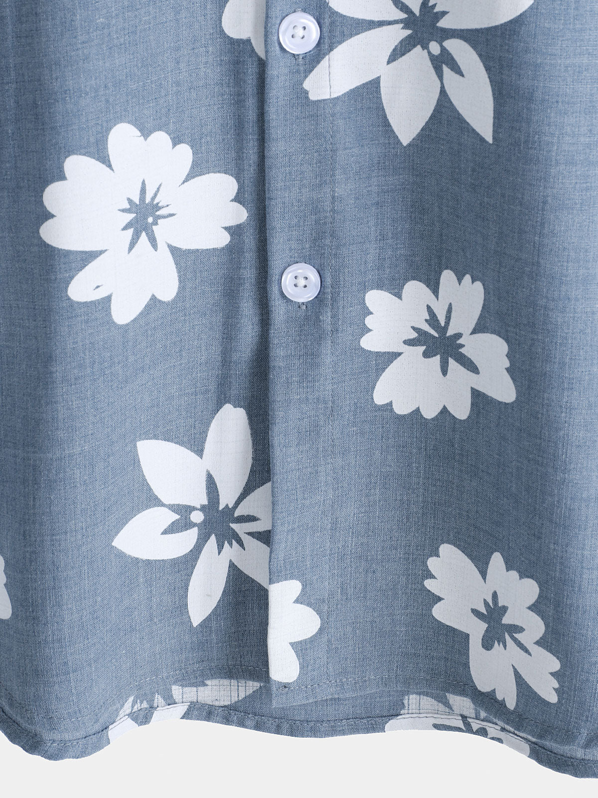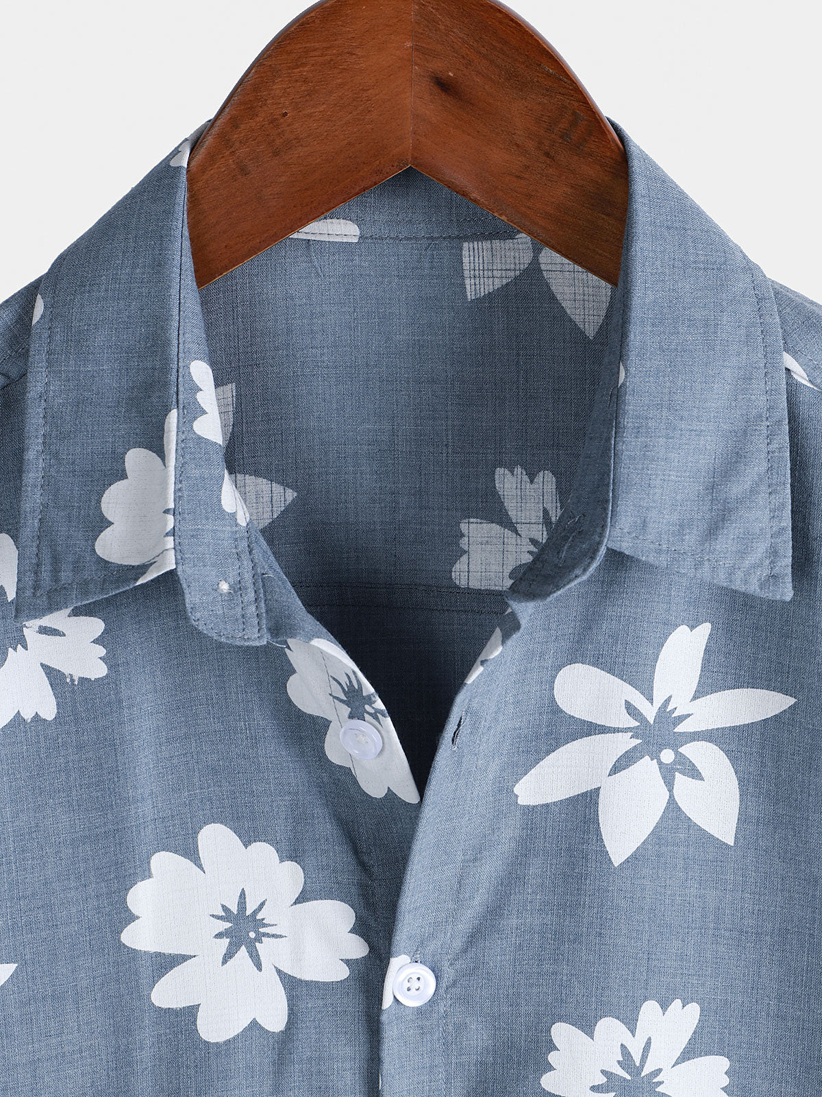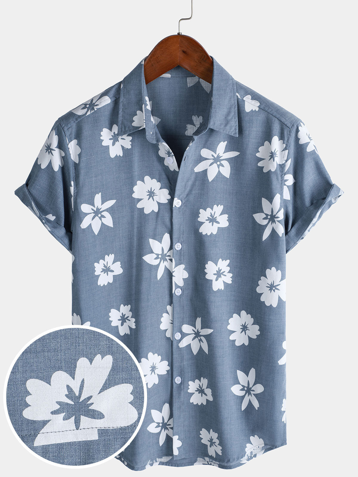 Herren Sommer Blumendruck Urlaub Blume Resort Lässiges Baumwollhemd