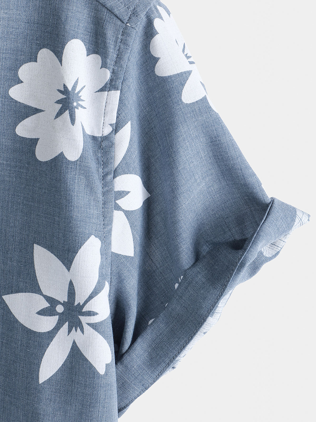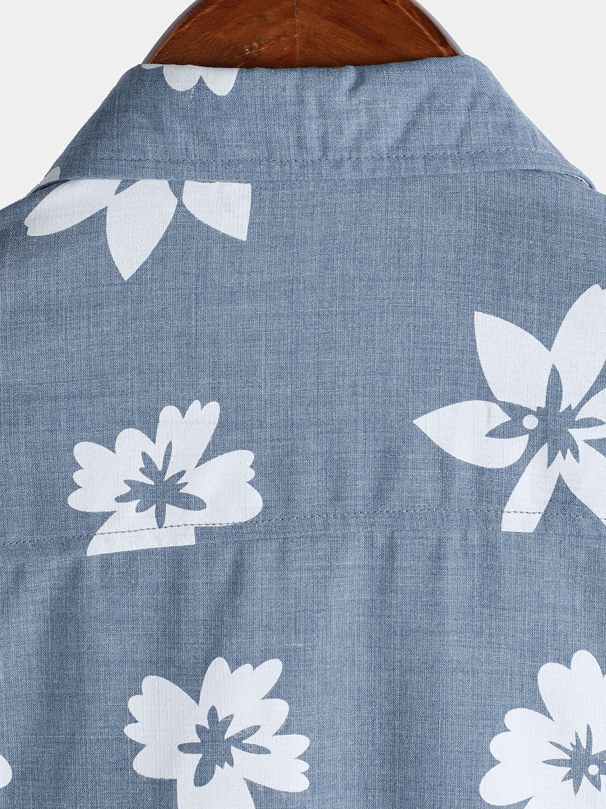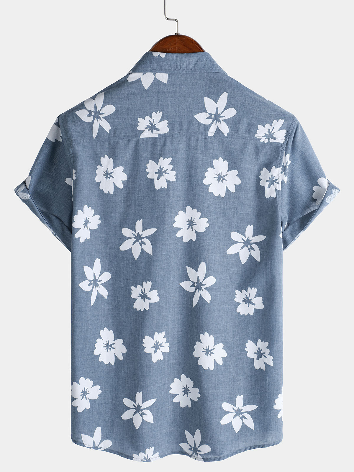 Herren Sommer Blumendruck Urlaub Blume Resort Lässiges Baumwollhemd