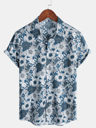 Herren Retro-Kurzarmhemd mit Sonnenblumen-Print