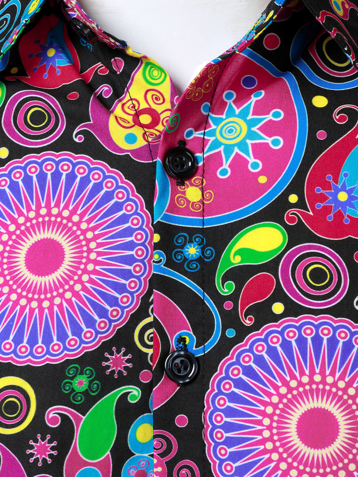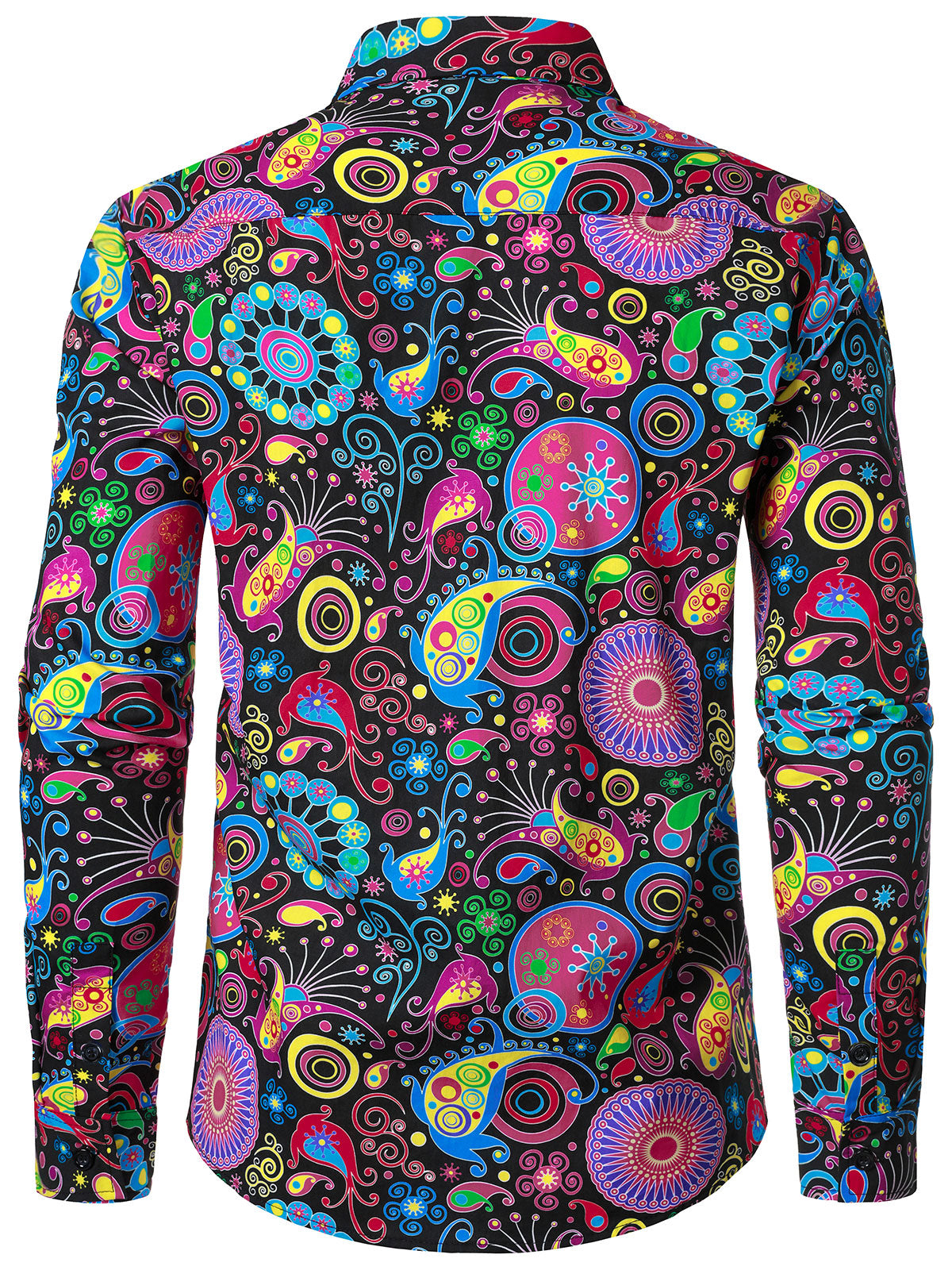 Herren Baumwolle Vintage-Paisley-Print Langarmhemd