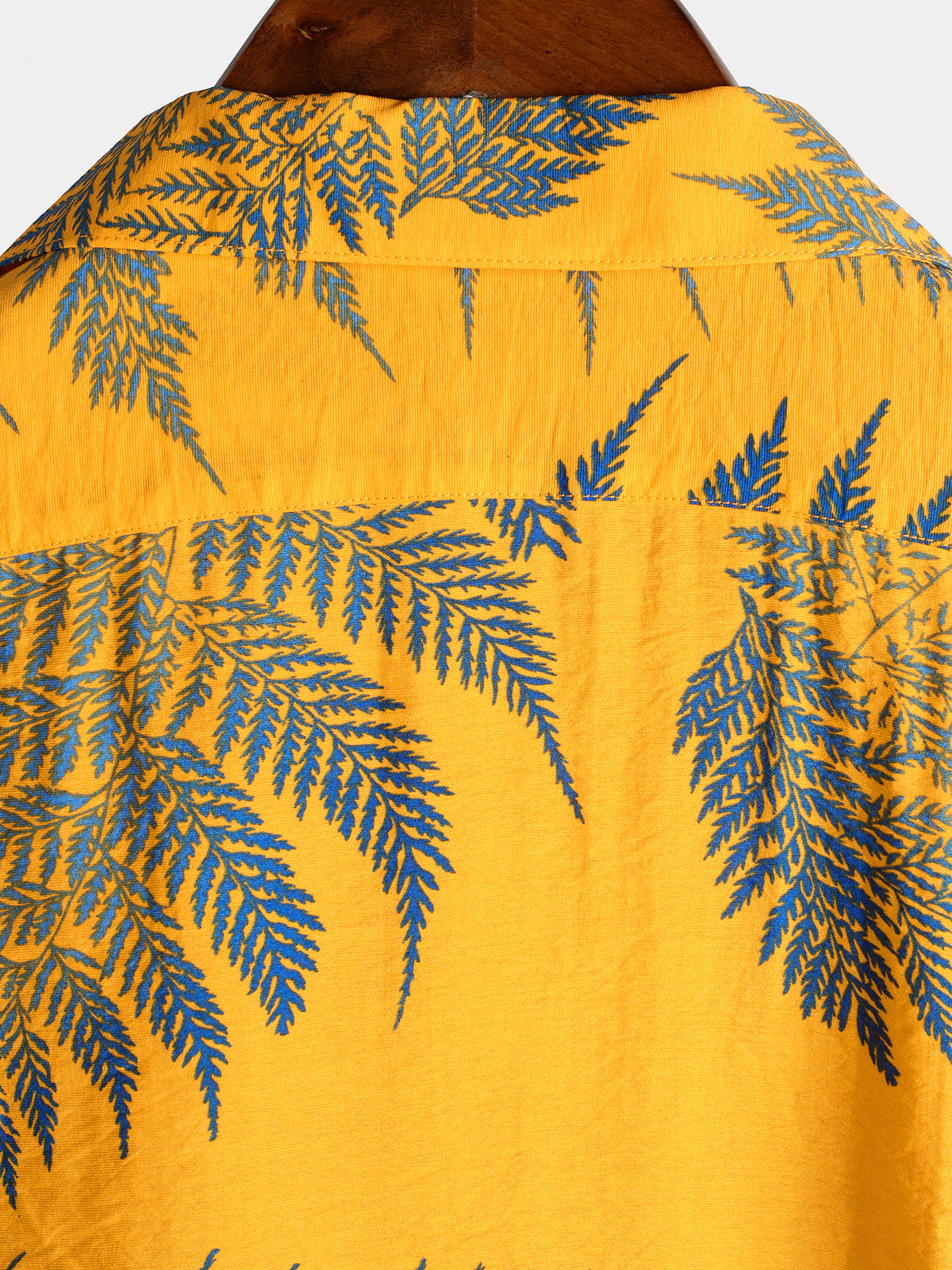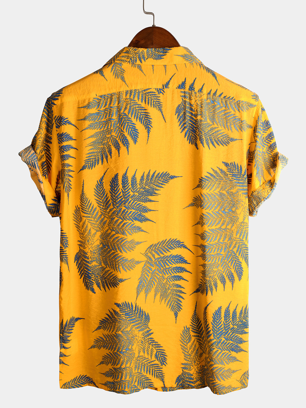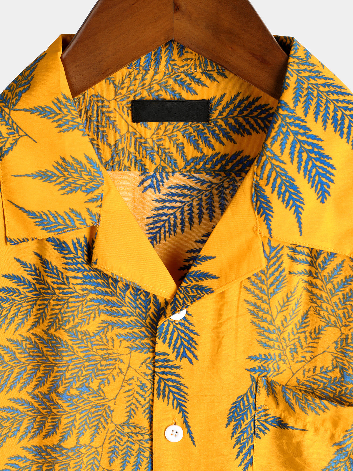 Herren Blumendruck Baumwolle Kurzarmhemd Gelb