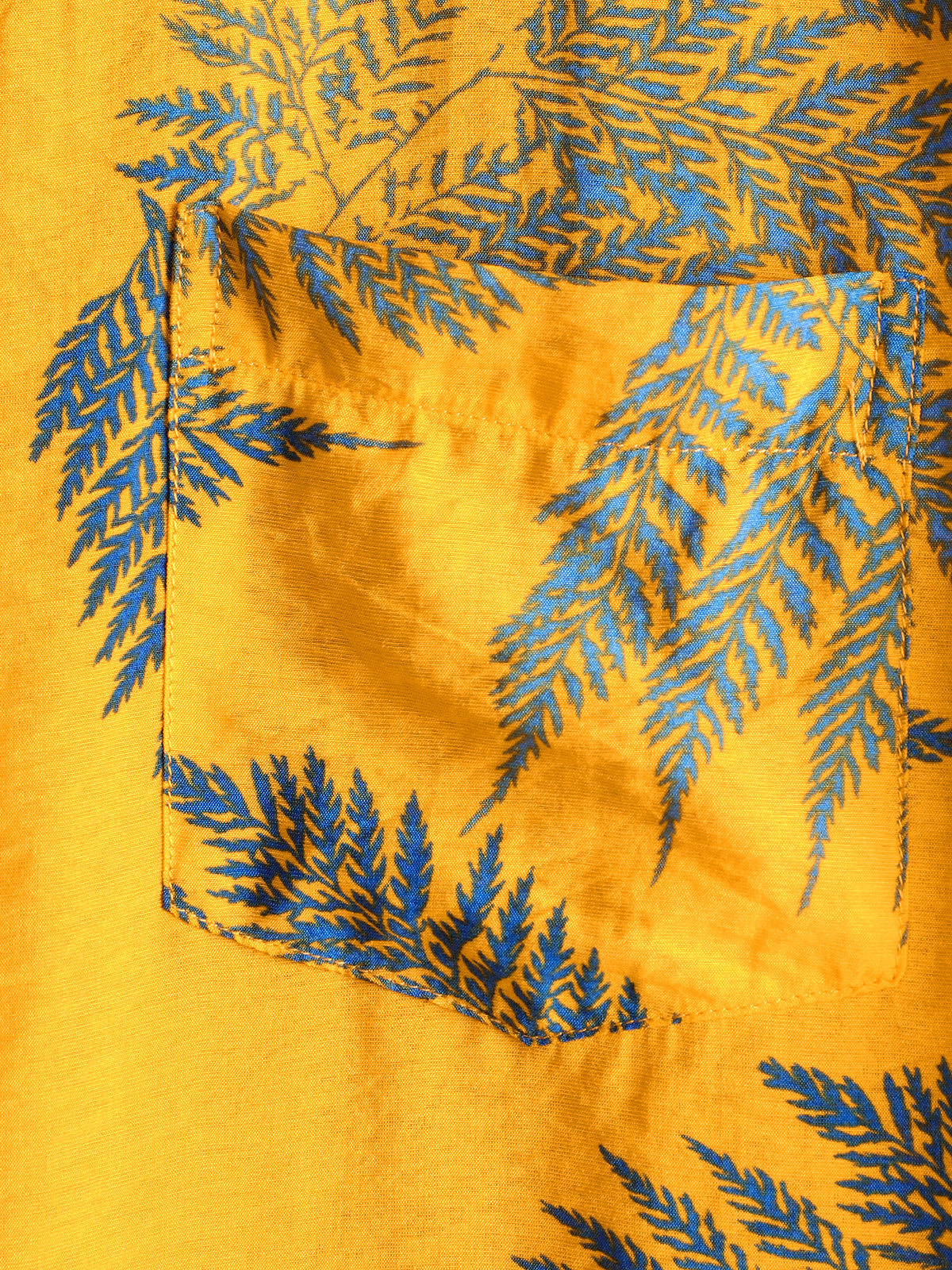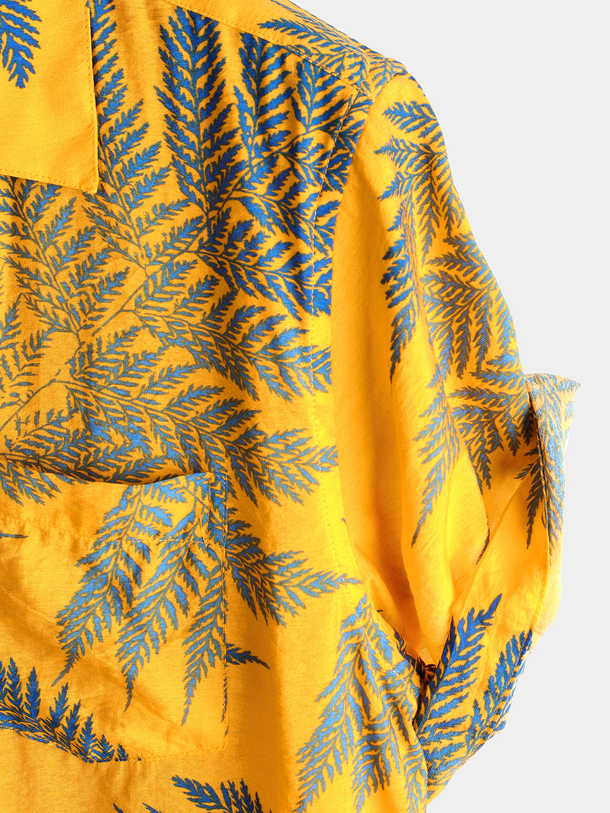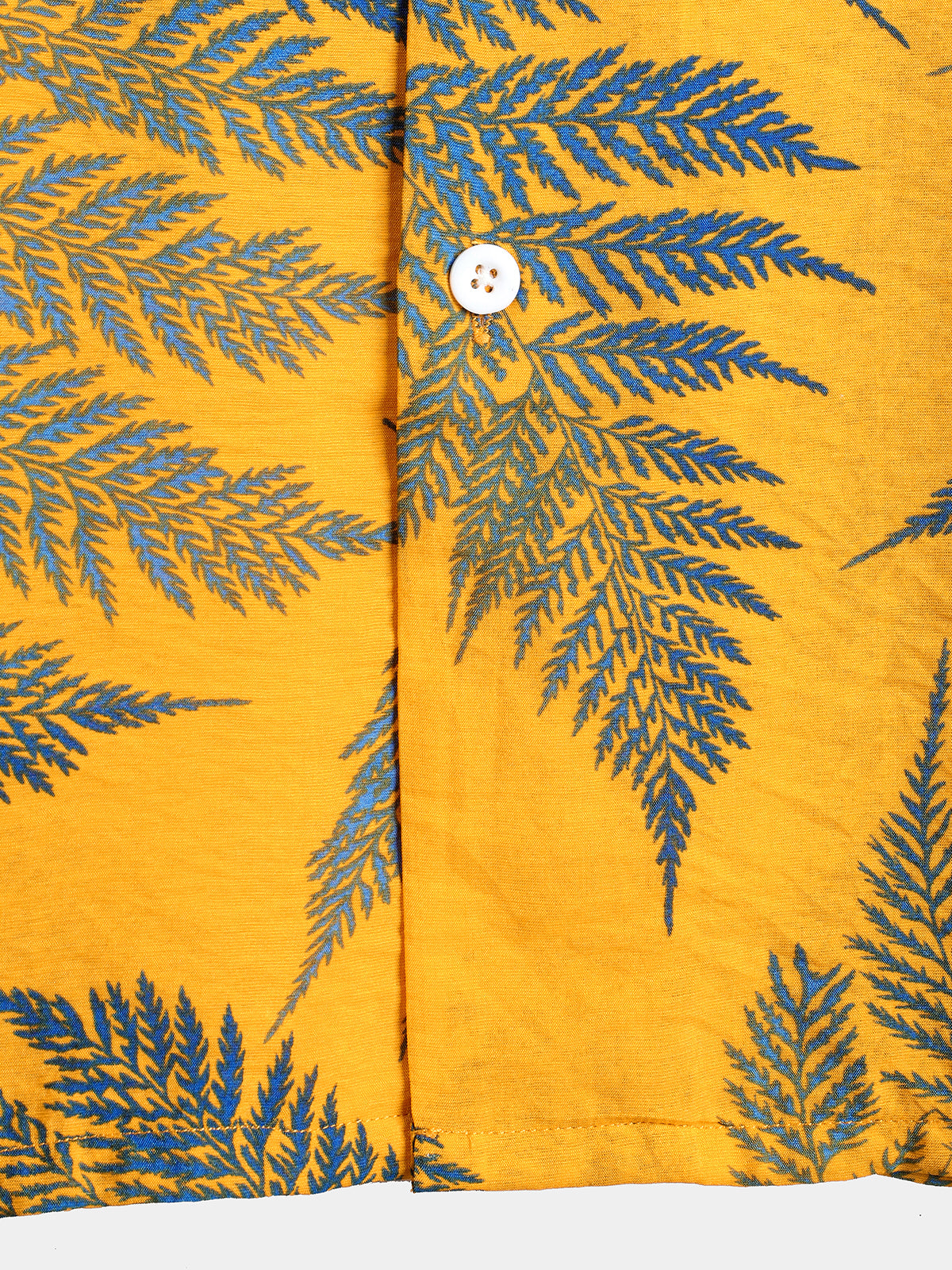 Herren Blumendruck Baumwolle Kurzarmhemd Gelb