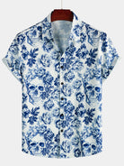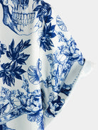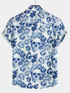 Herren Kurzarmshirt mit Punkrock Kronen Blumenschädel Print