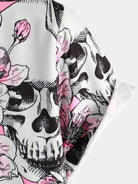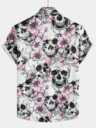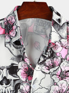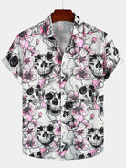 Herren Kurzarmhemden mit Totenkopf Blumen Knöpfen