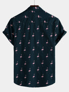 Herren Sommer Flamingo-Print Hemd mit kurzen Ärmeln