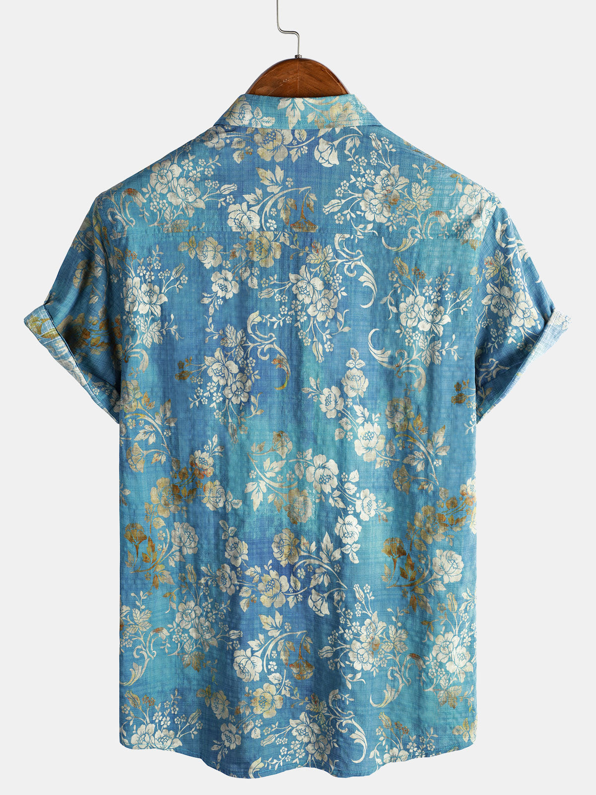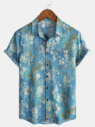 Herren Baumwolle Blaues Kurzarmhemd